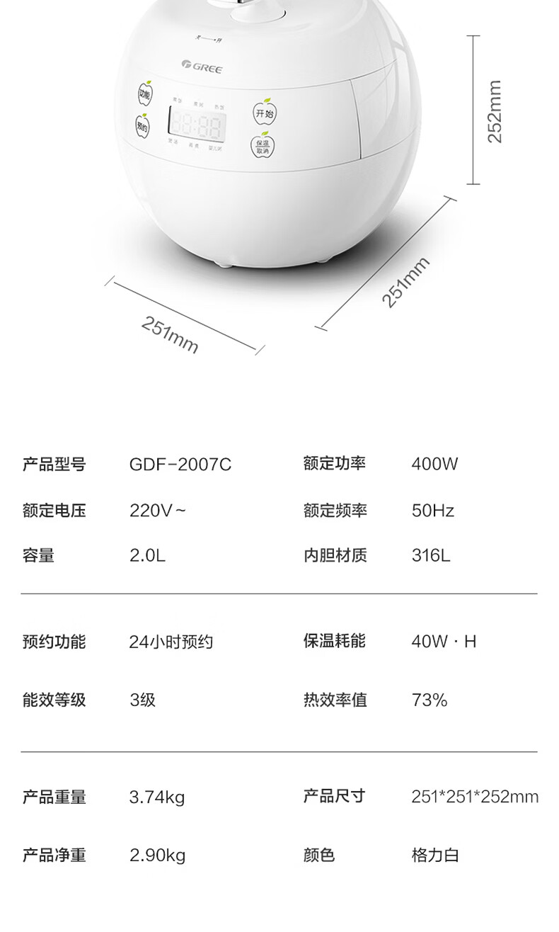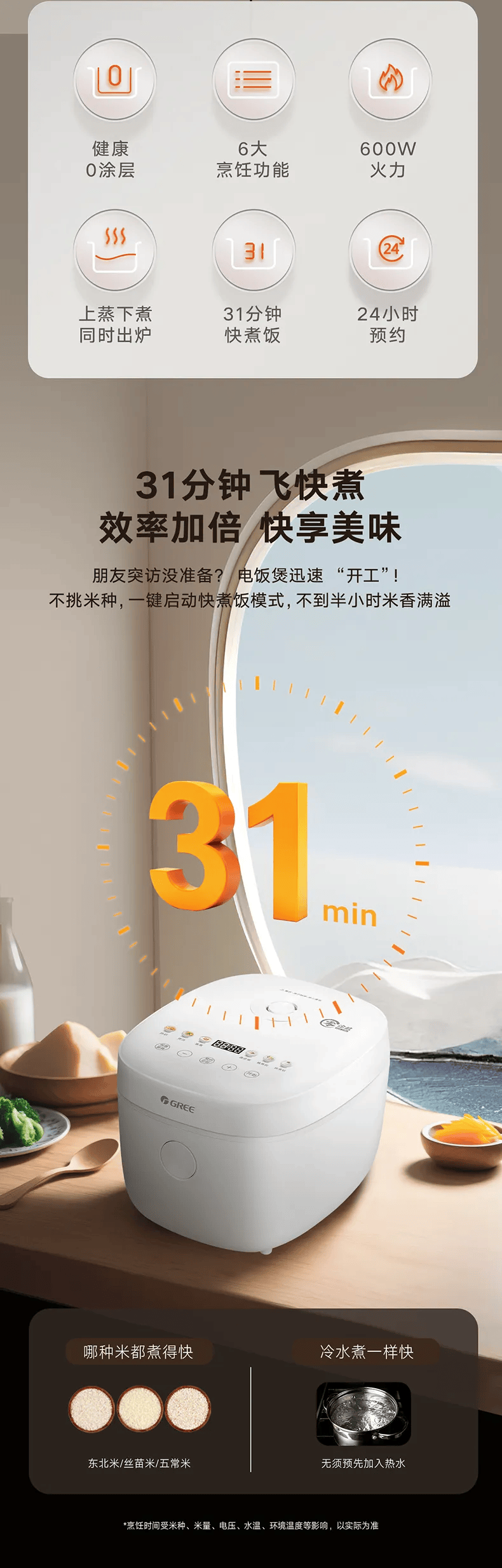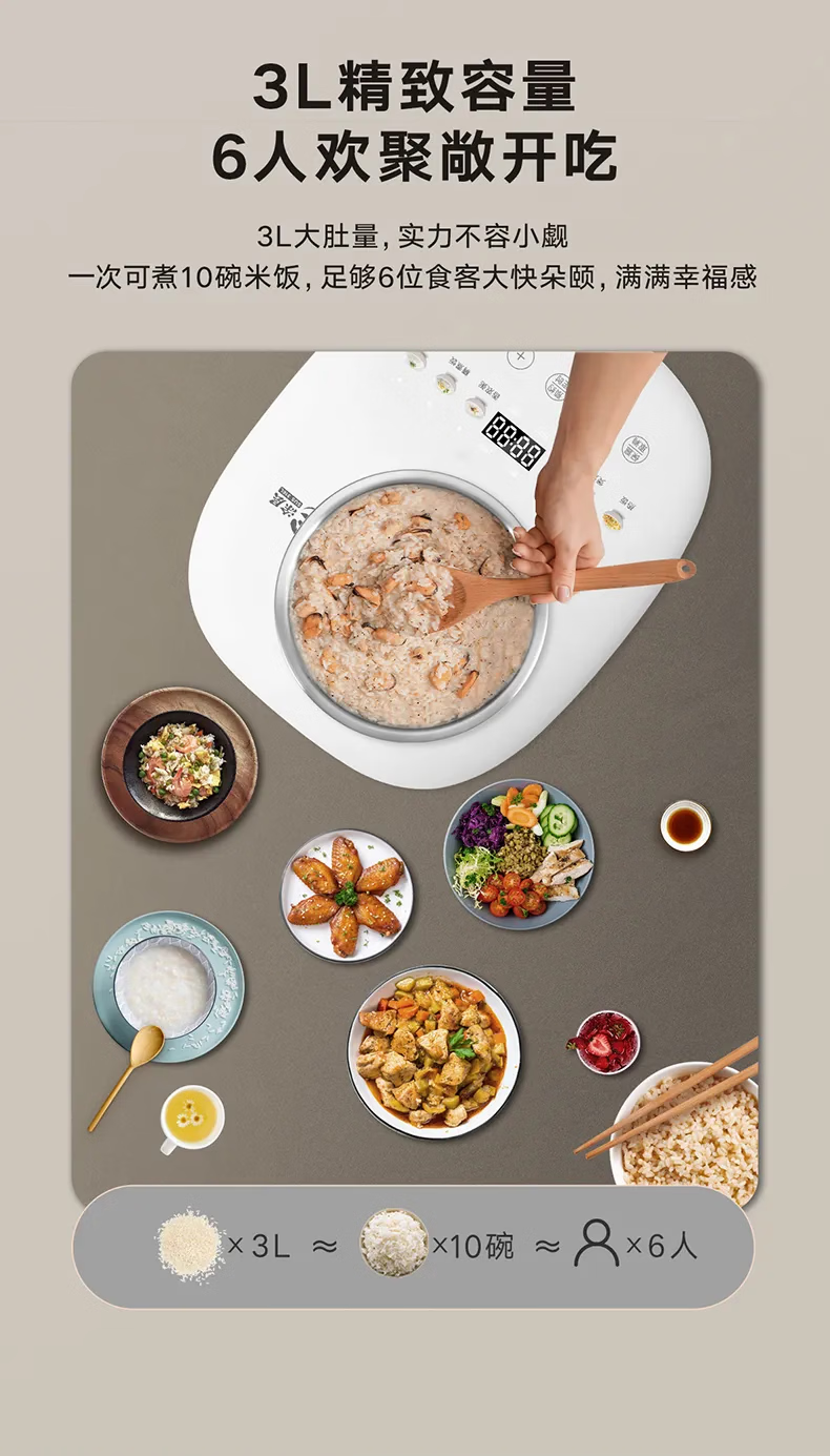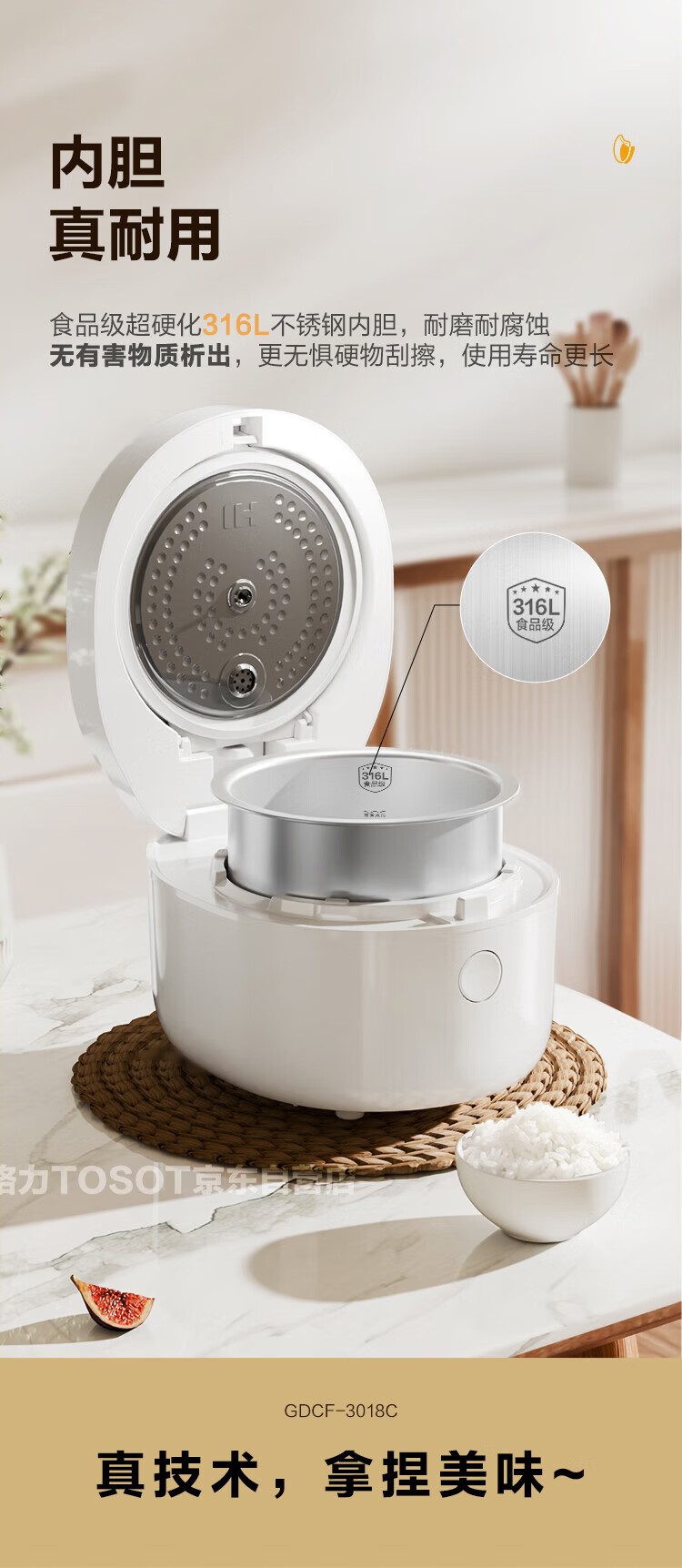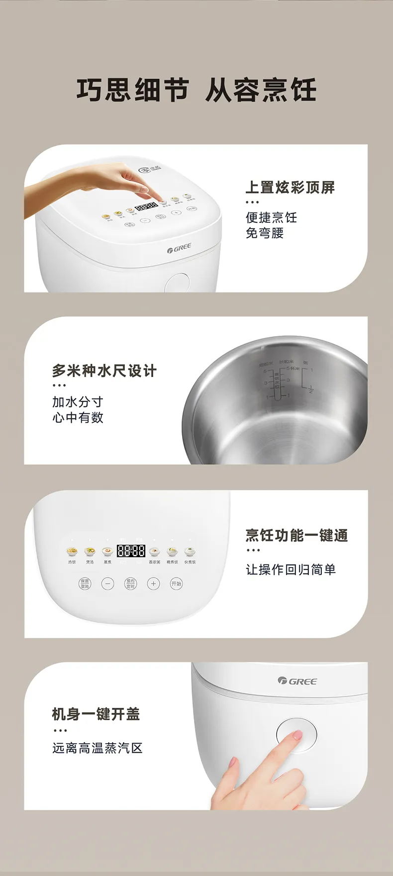 格力【新品】格力电饭煲 3L 健康0涂层316L不锈钢内胆 多功能定时预约4-6人智能无涂层电饭锅 3L 无涂层 316L不锈钢内胆【主推3030】