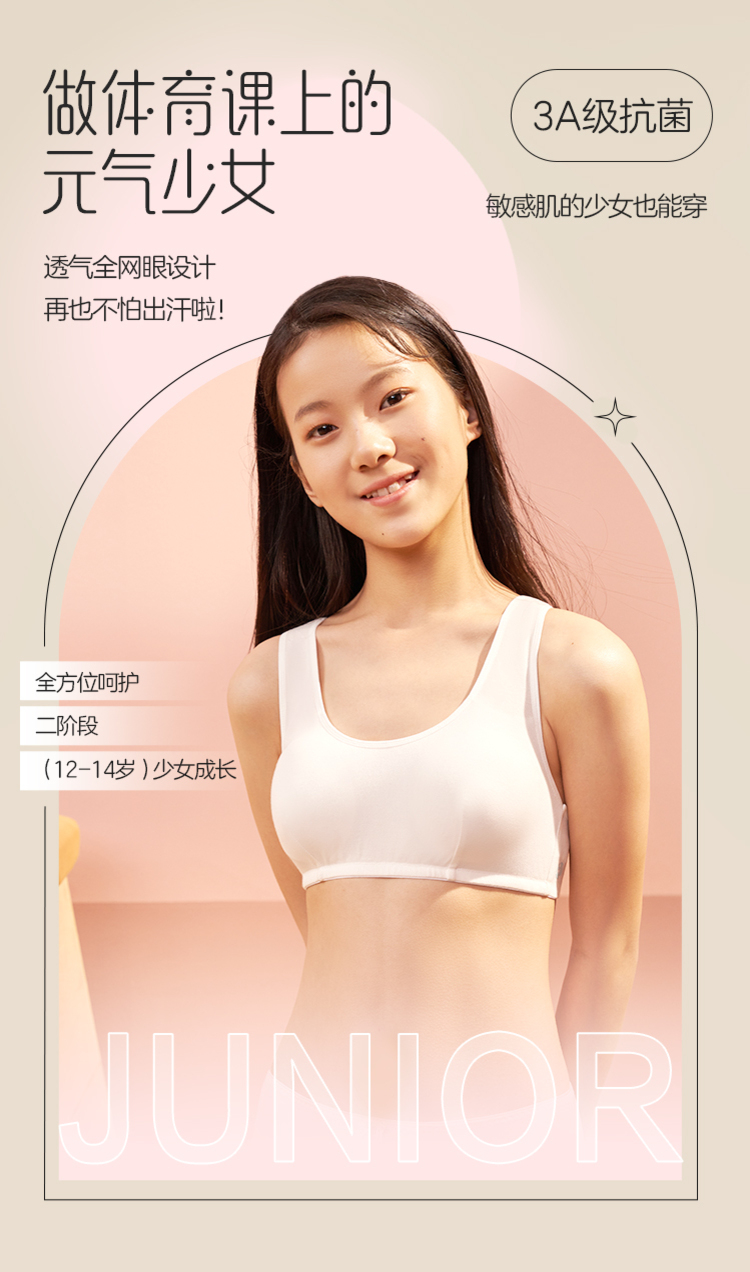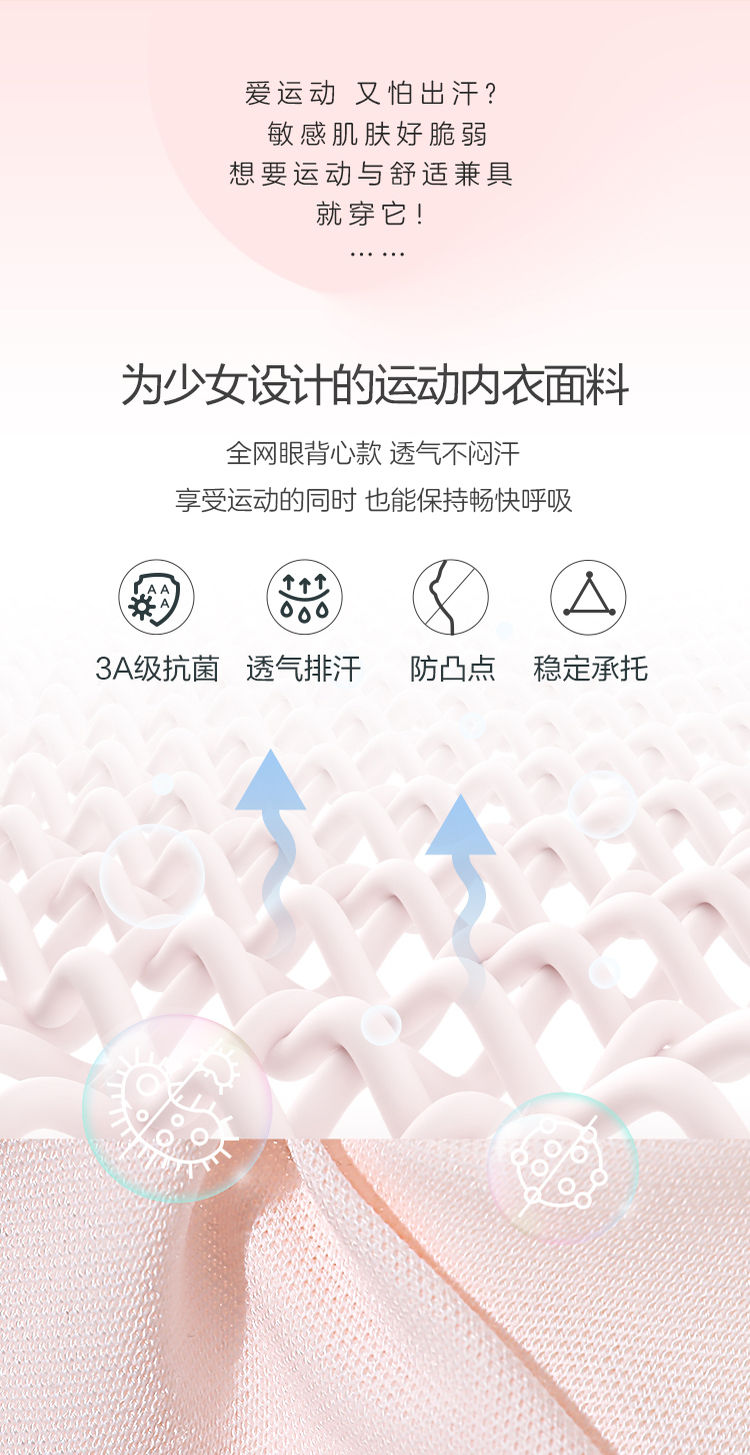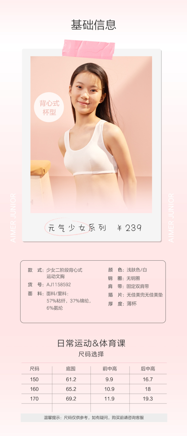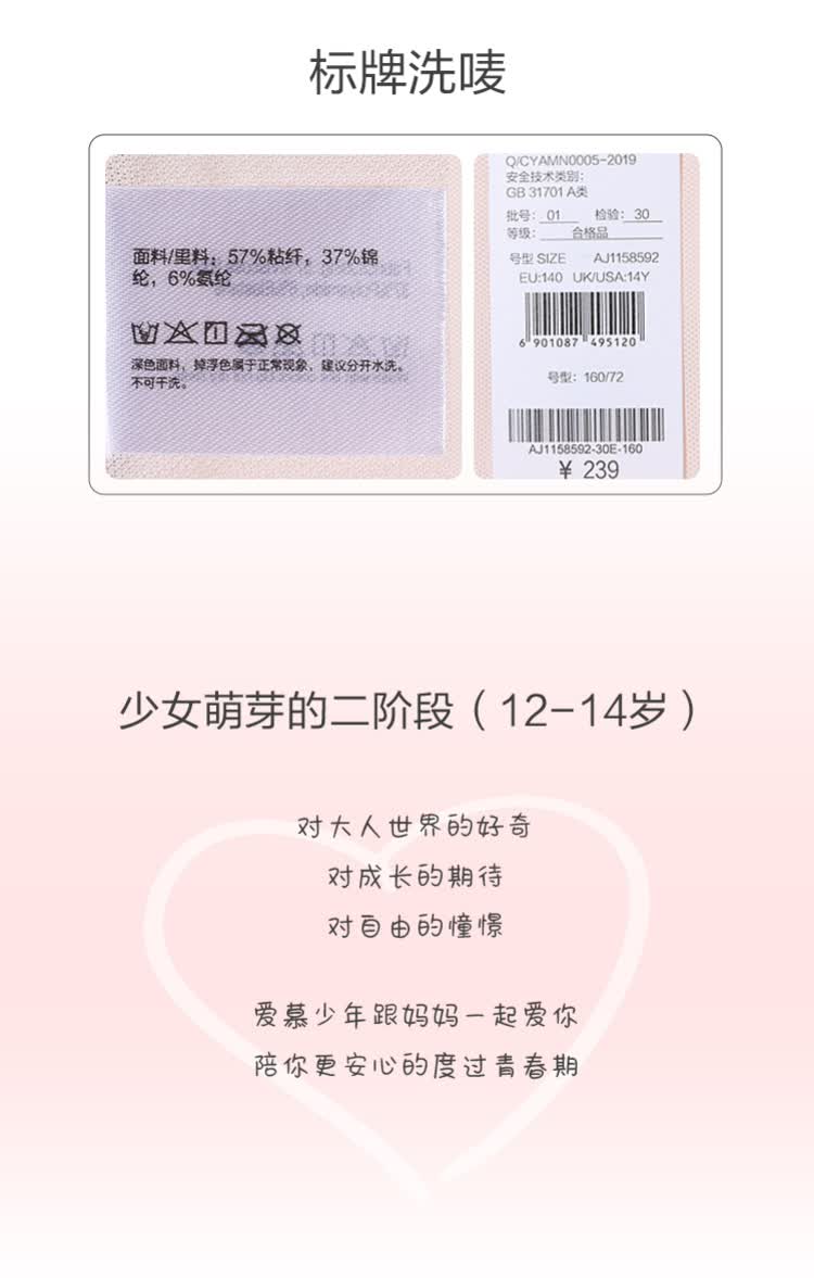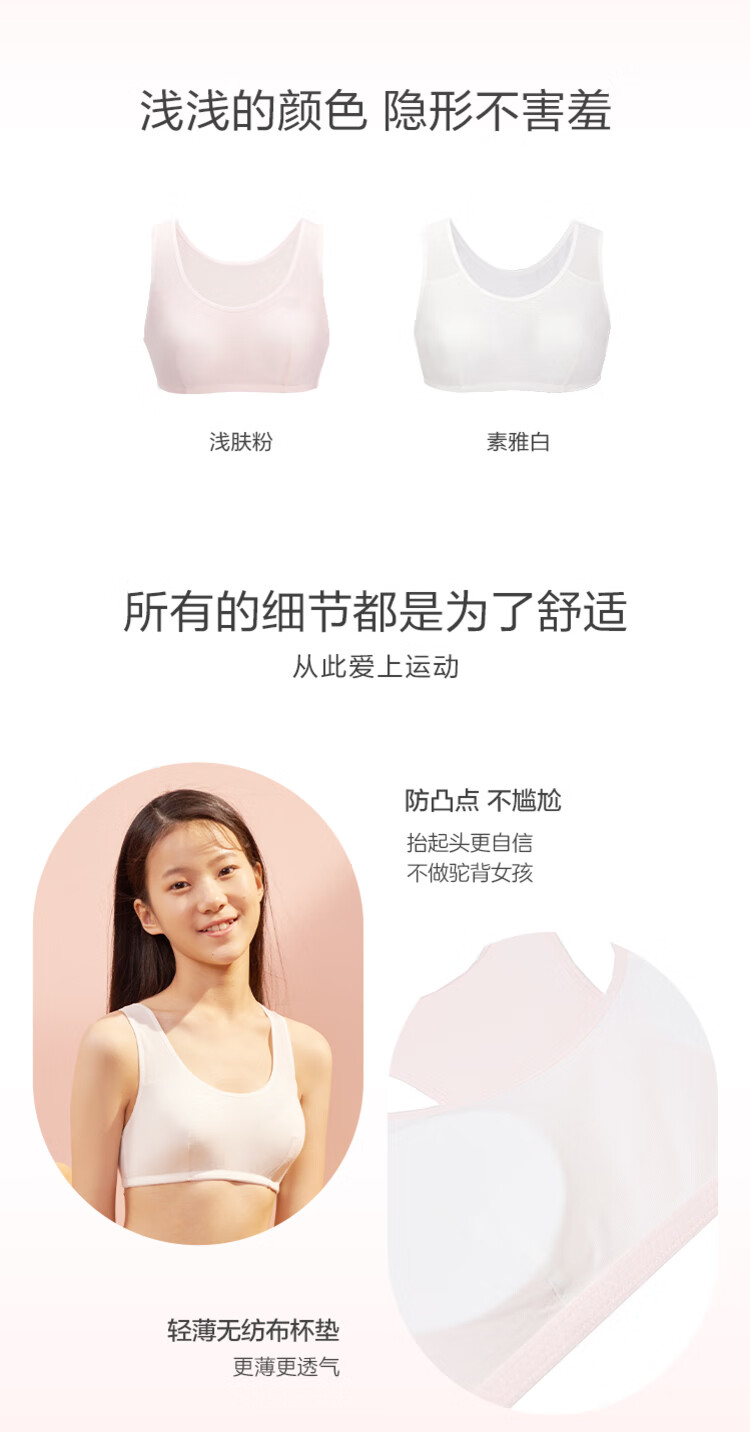 爱慕少女文胸二阶段背心式运动文胸少女发育背心网眼面料AJ1158592白160