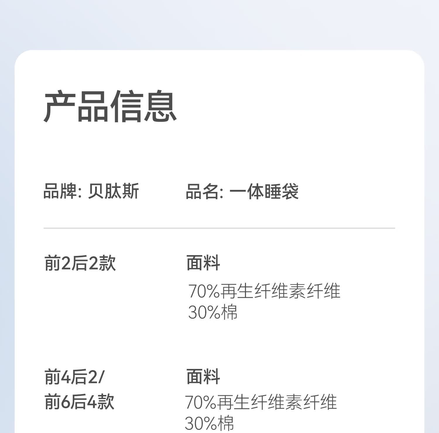 贝肽斯婴儿睡袋春夏胎脂皮儿童一体睡袋婴幼儿防踢被睡衣前6后4 林声S