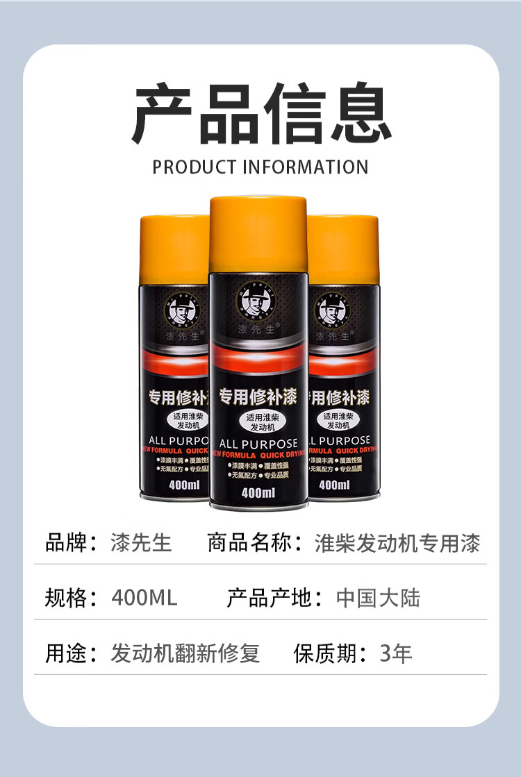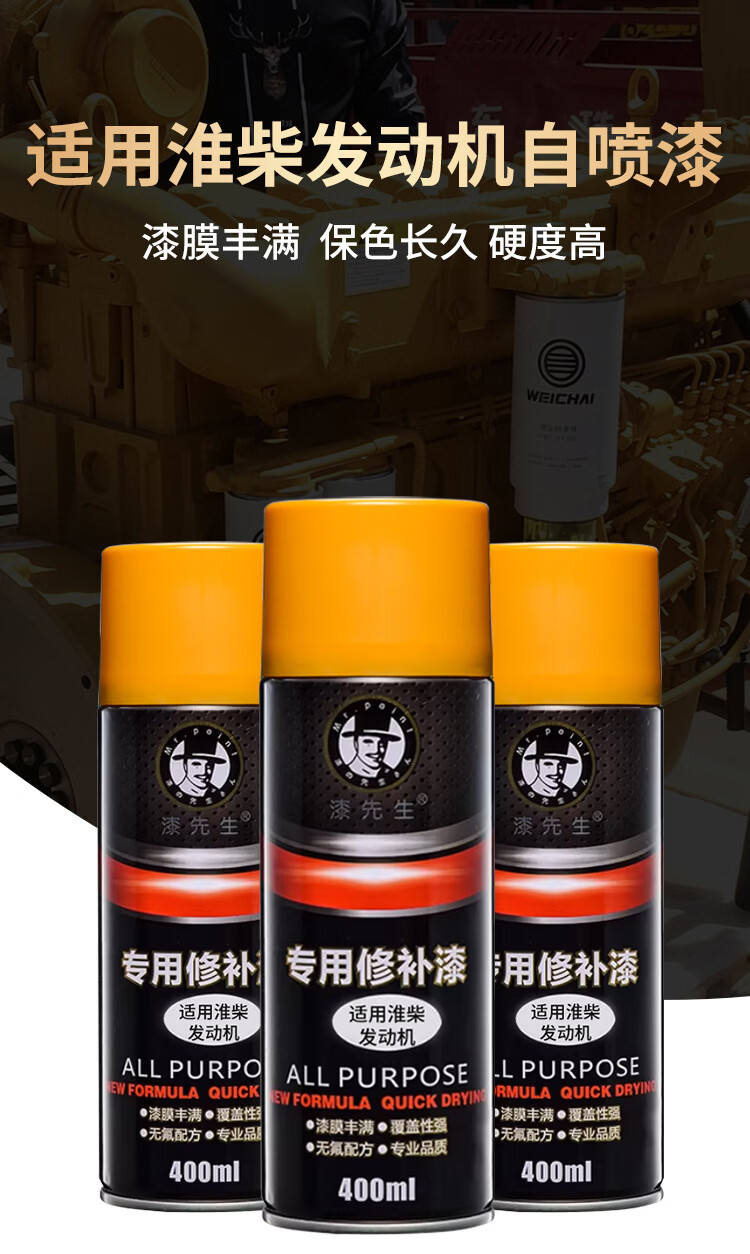 漆先生适用发动机黄色自喷漆专用手喷漆原厂划痕修复修补漆防锈耐腐漆金属油漆翻新改色发动机油漆自动喷漆 潍柴发动机黄色 400ml