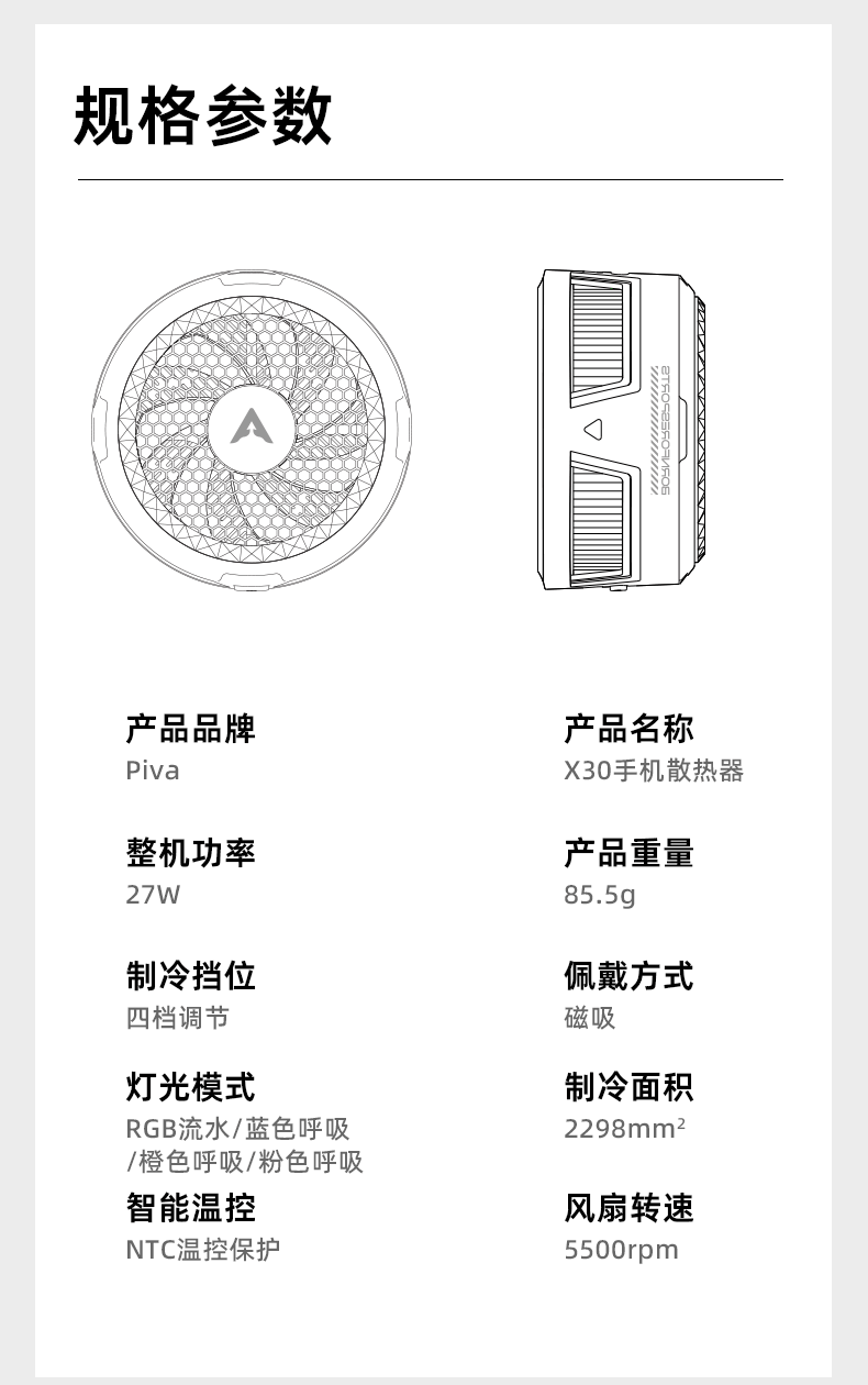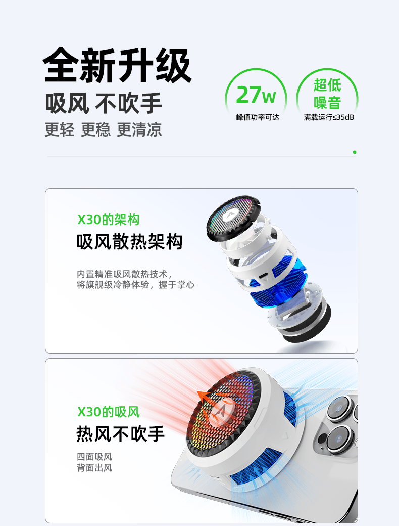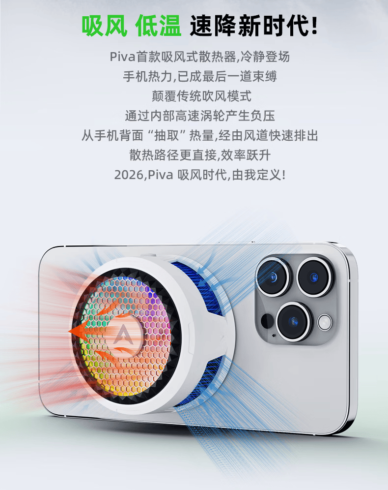 Piva 派威冰刃X30磁吸手机散热器 吸风散热半导体制冷降温神器 平板游戏吃鸡直播适用苹果ipad小米 【26年度新款】X30玫红色 吸风款 请使用40W及以上PD/QC/PPS协议充电器