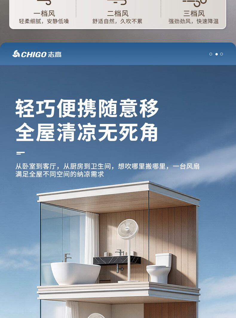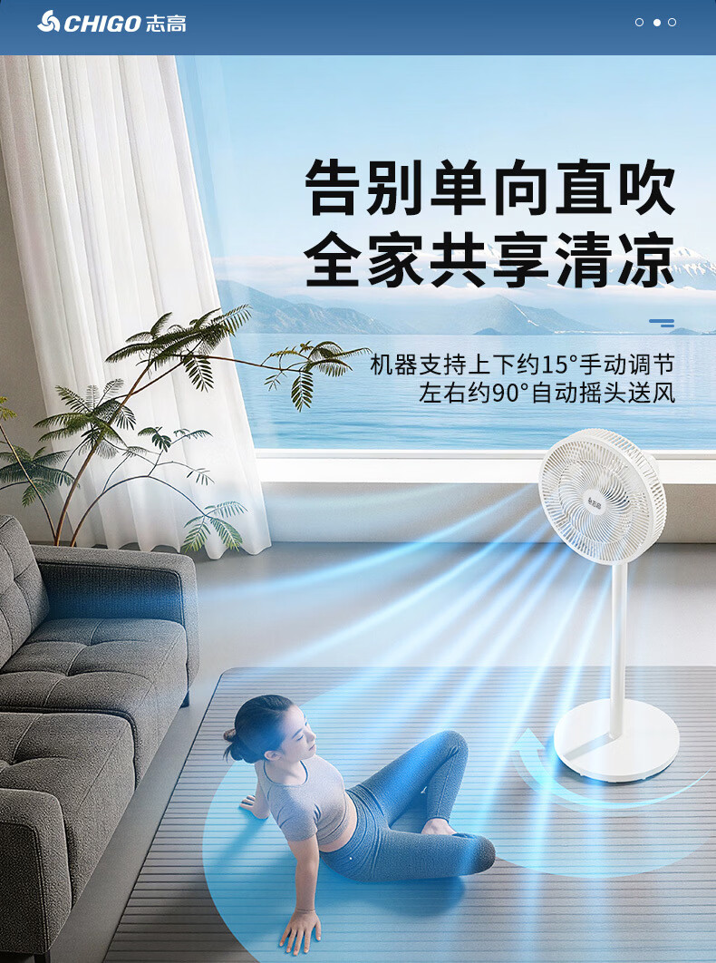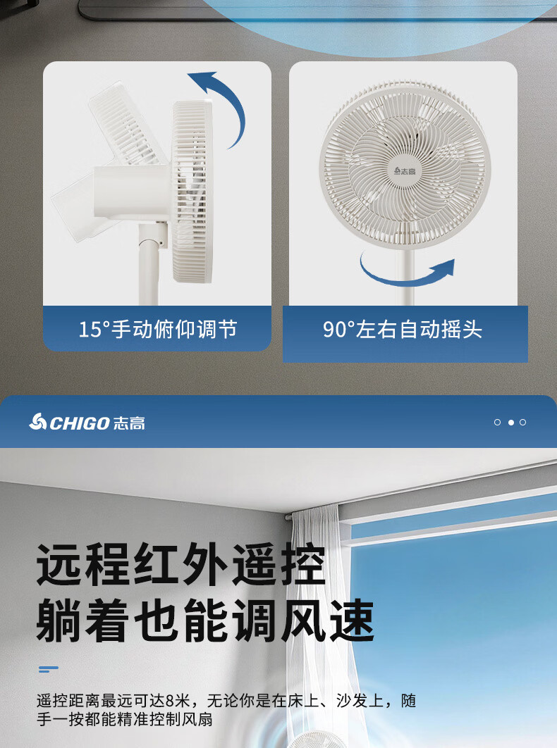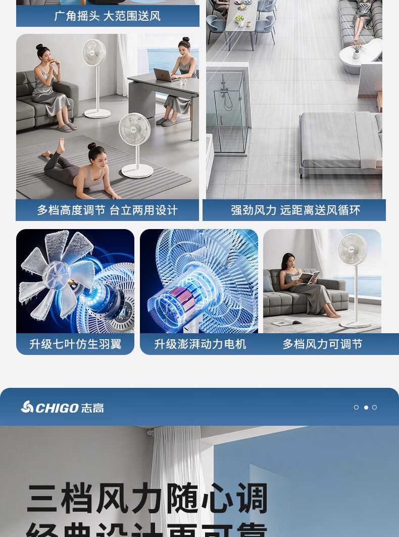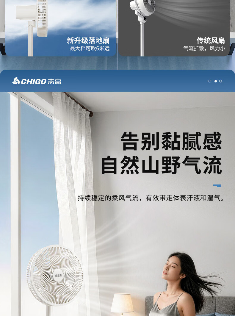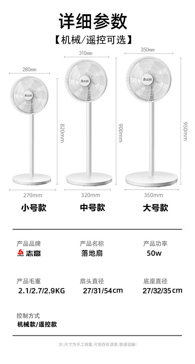 志高(CHIGO)电风扇落地扇家用立式机械电扇台扇摇头电扇空气循环风扇ZFS-3016 热卖推荐+7叶基础机械款 1