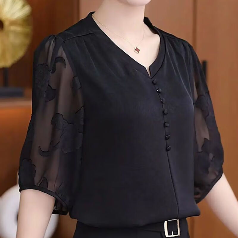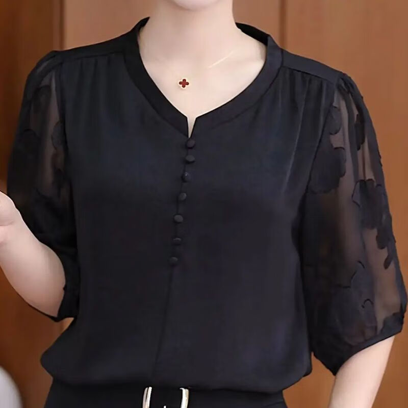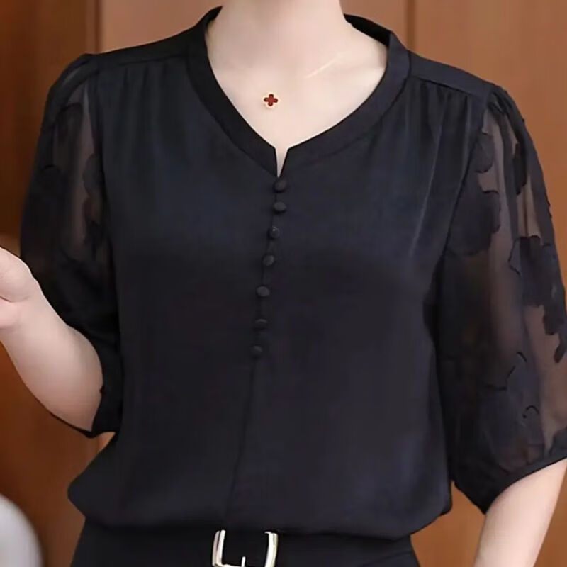 邦菲尔夏季2025新款洋气小衫时尚衬衣气质显瘦遮肚减龄衬衫宽松上衣 黑色 M (80-95斤)