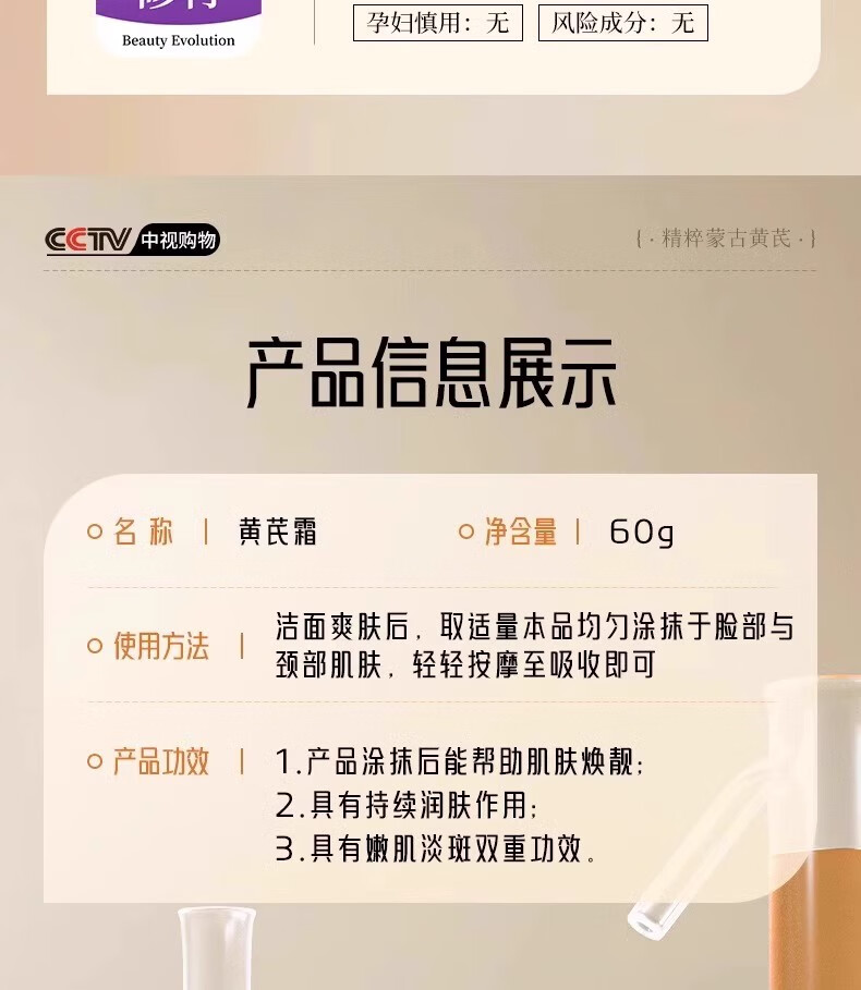 黄芪霜国货天花板黄芪霜改善暗沉肤色暗黄紧致嫩白滋润保湿国货老牌正品 单盒装【体验装】