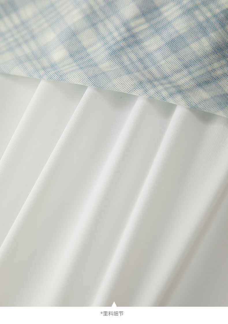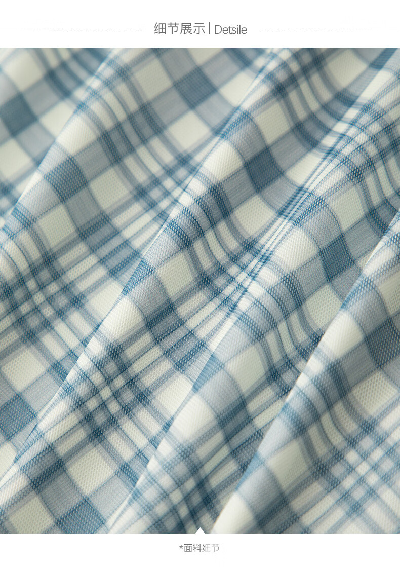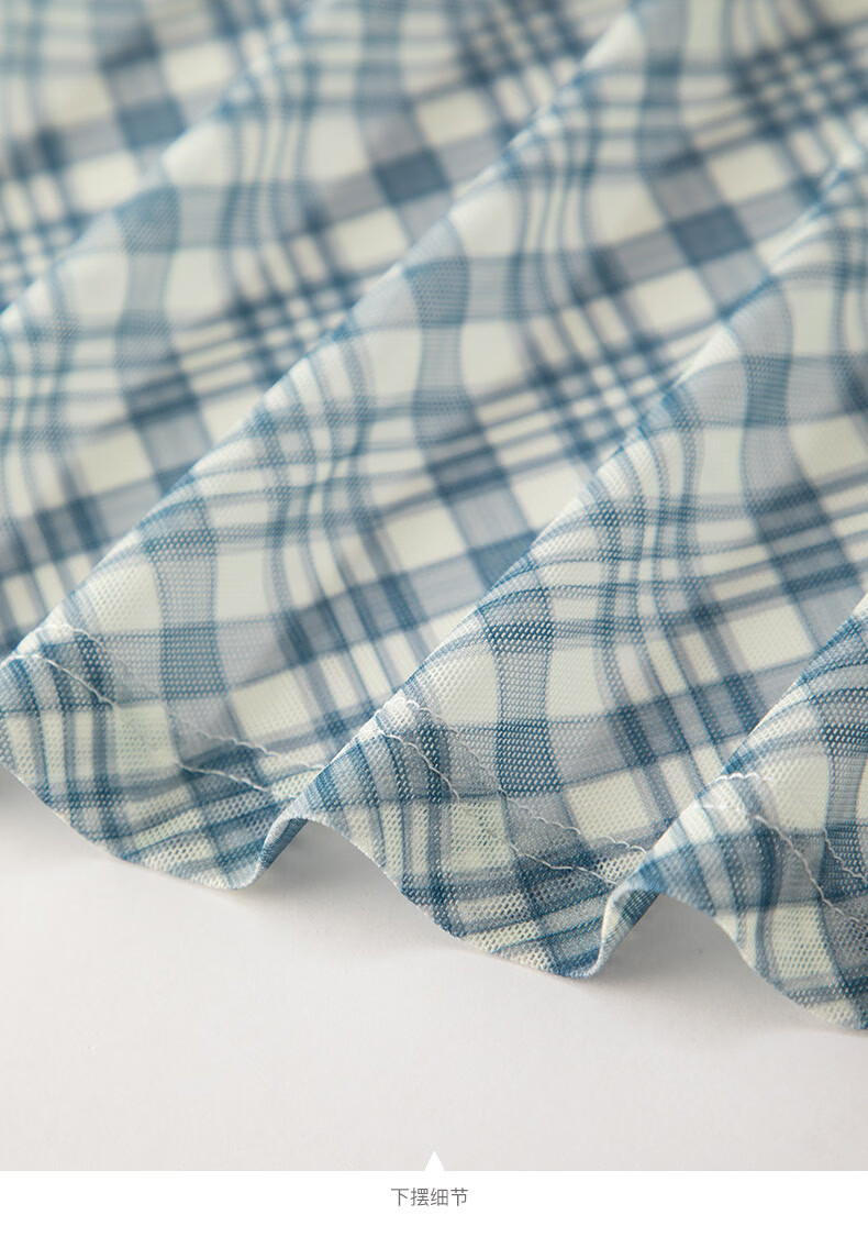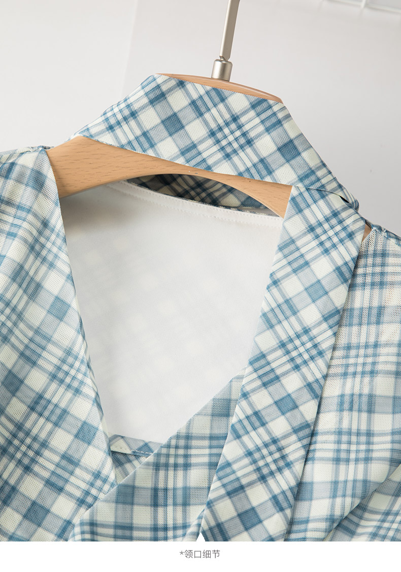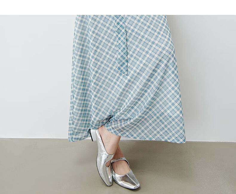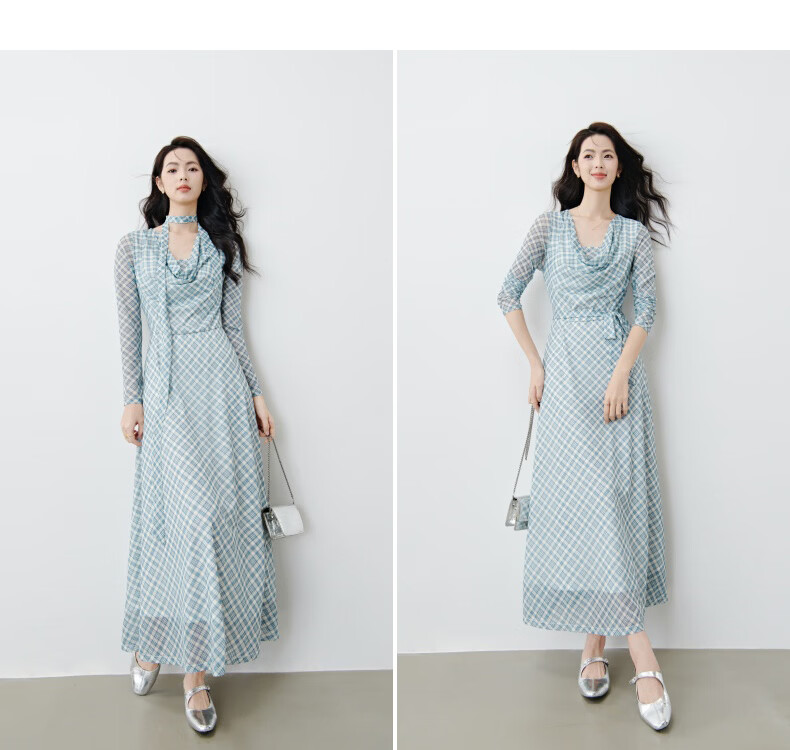 晚白2026年春款法式复古格纹度假风荡领裙子高弹垂感免烫氛围感连衣裙 深蓝色 L