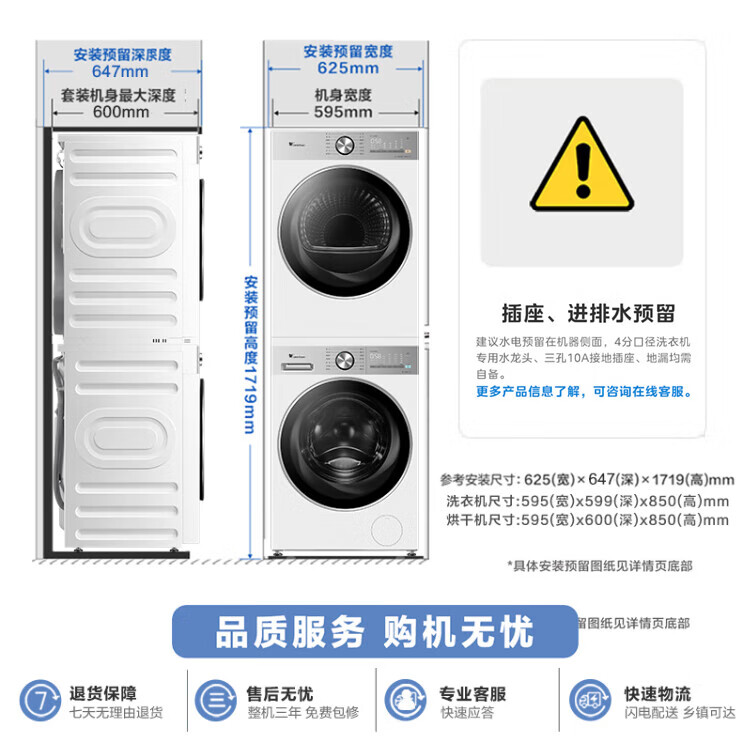 小天鹅(LittleSwan)小乌梅3.0洗烘套装10KG全自动滚筒洗衣机+10KG变频热泵烘干机 纯平全嵌一级能效 TG10VE40+TH10VE40
