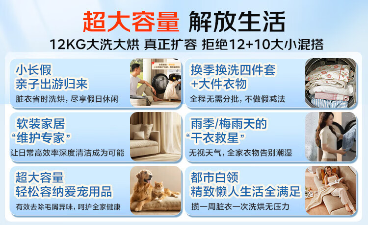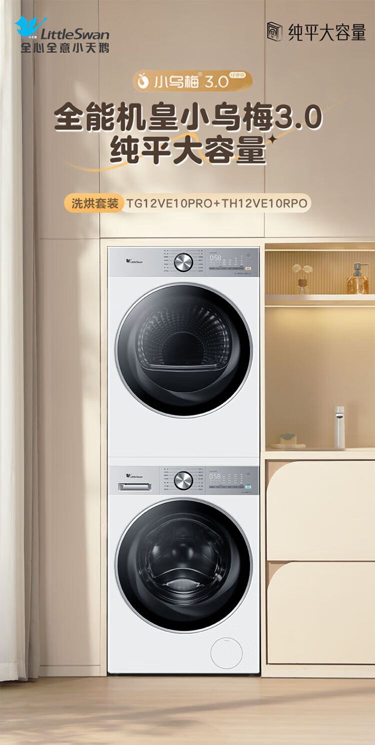 小天鹅(LittleSwan)洗烘套装 12KG滚筒洗衣机全自动+12KG变频热泵烘干机家用【小乌梅3.0轻享】VE10PRO+10PRO 小乌梅3.0轻享|白色款12KG套装