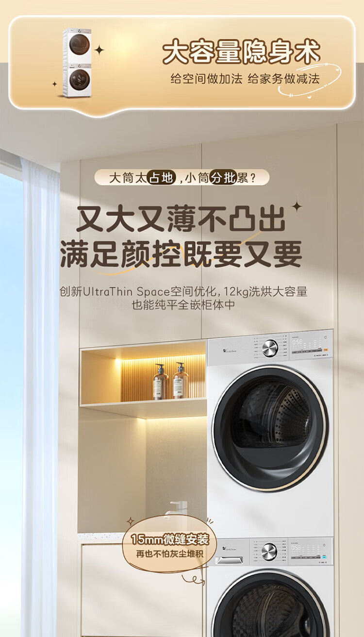 小天鹅(LittleSwan)洗烘套装 12KG滚筒洗衣机全自动+12KG变频热泵烘干机家用【小乌梅3.0高奢】VE40PRO+40PRO家电补贴 【TG12VE40PRO+TH12VE40PRO】