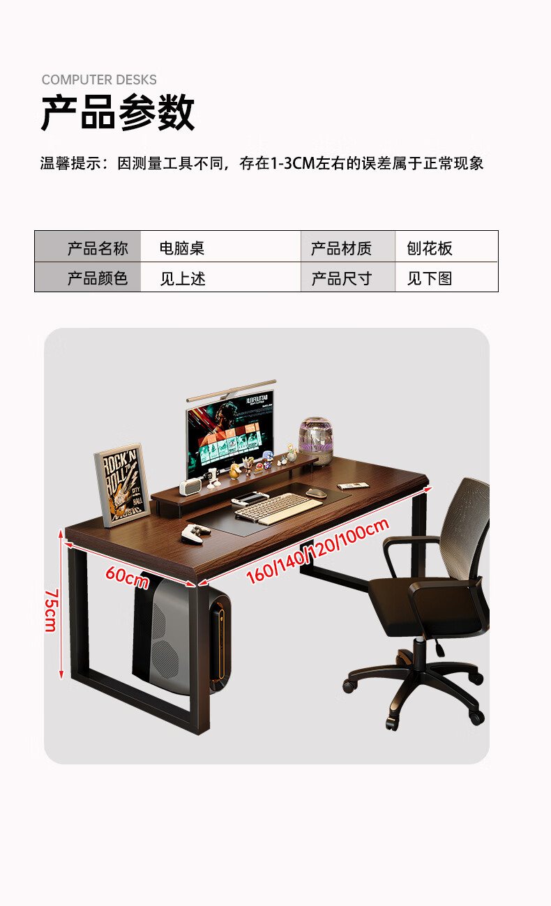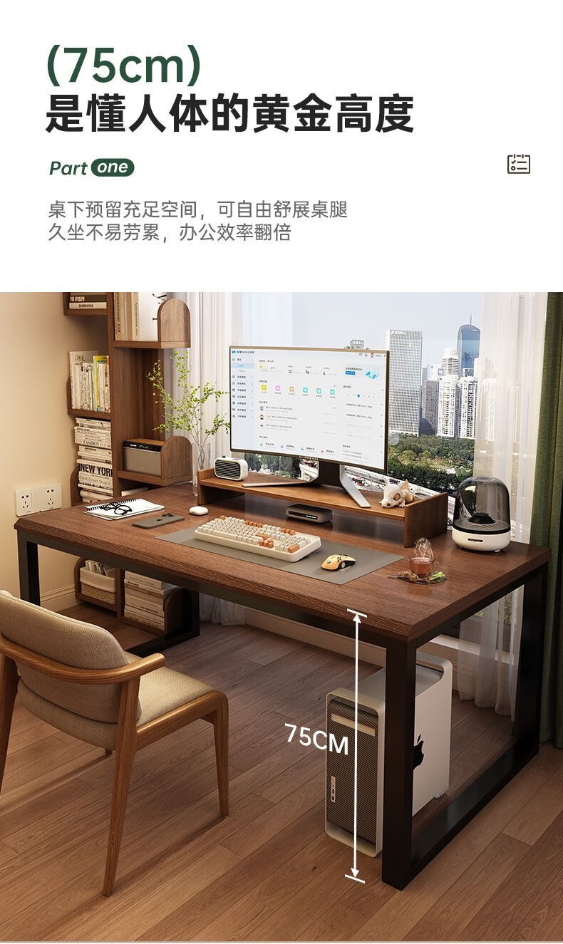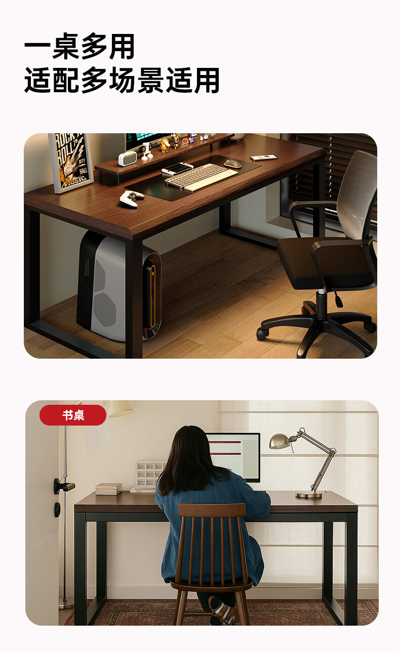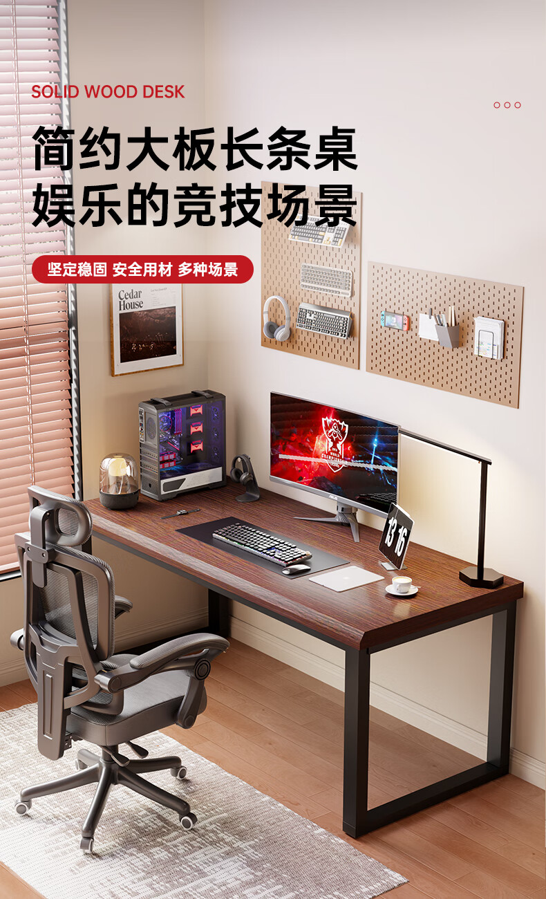 顾家家居电脑桌台式家用电竞桌简约书房学习书桌双人办公桌子小户型工作台 【斜边加厚25MM桌面】胡桃色120CM 【送货上门包安装】