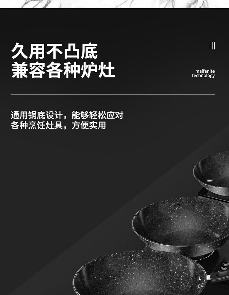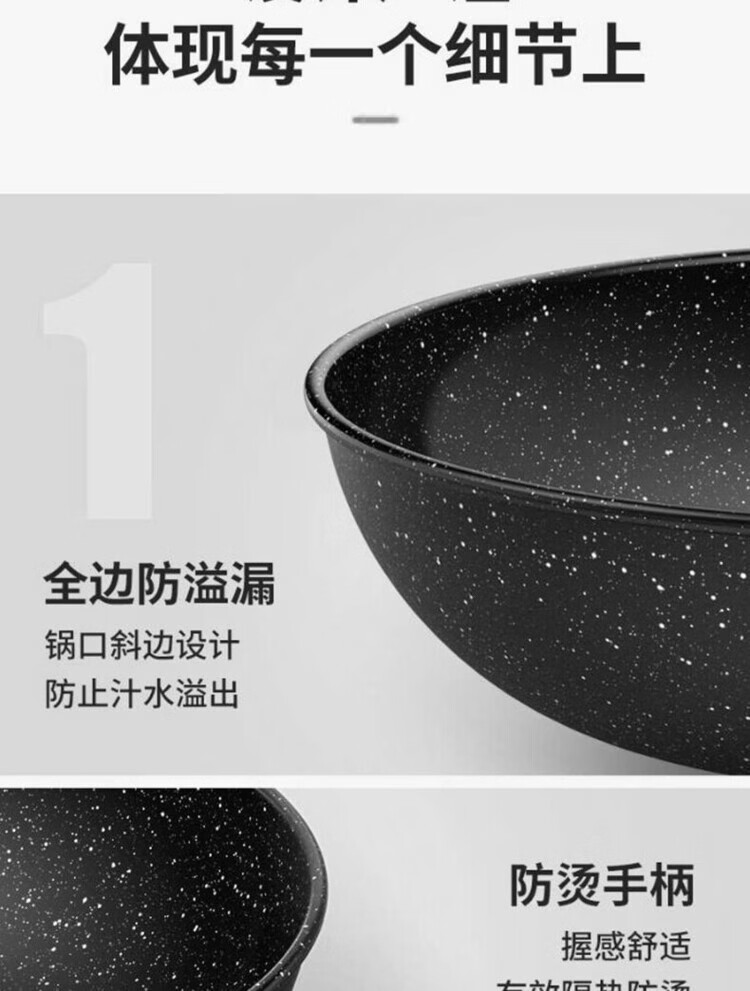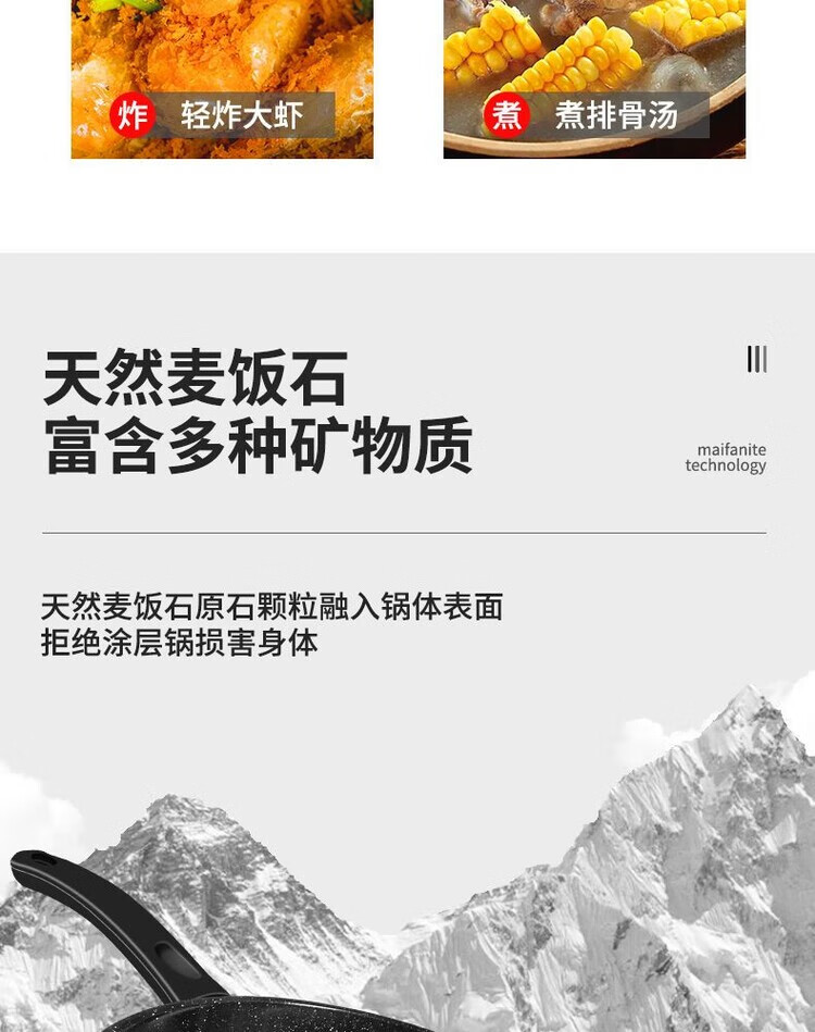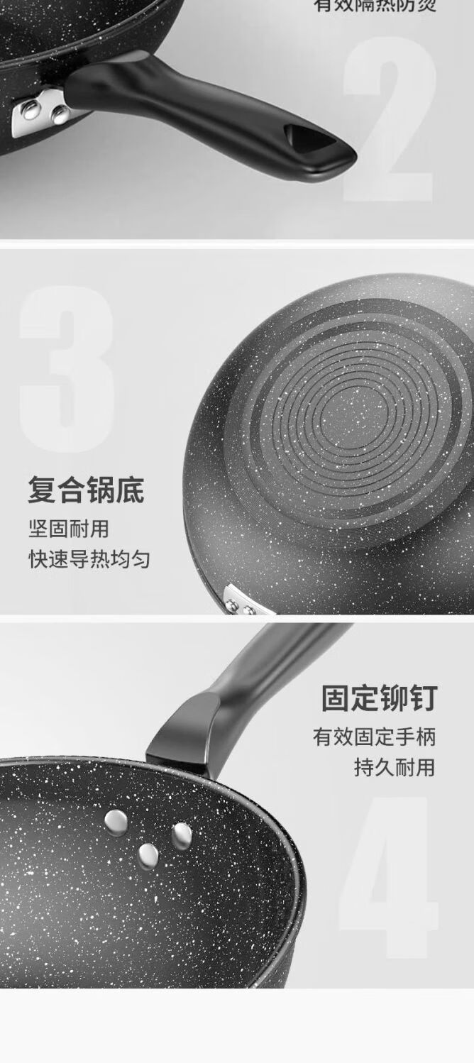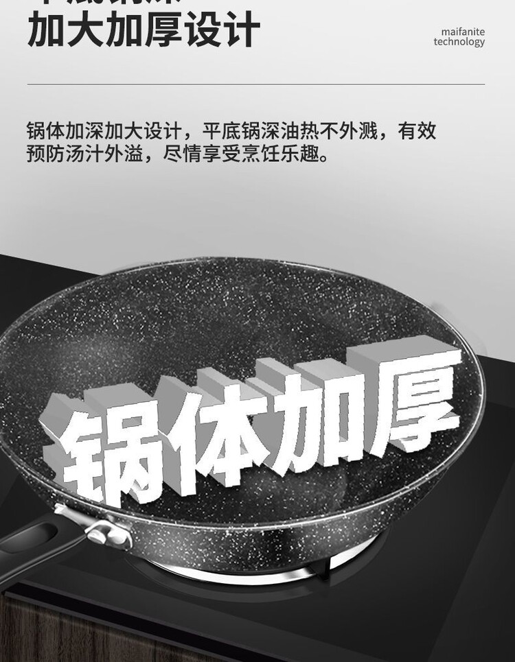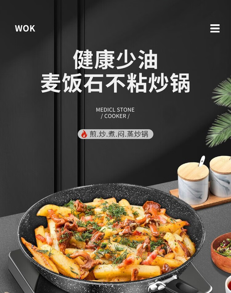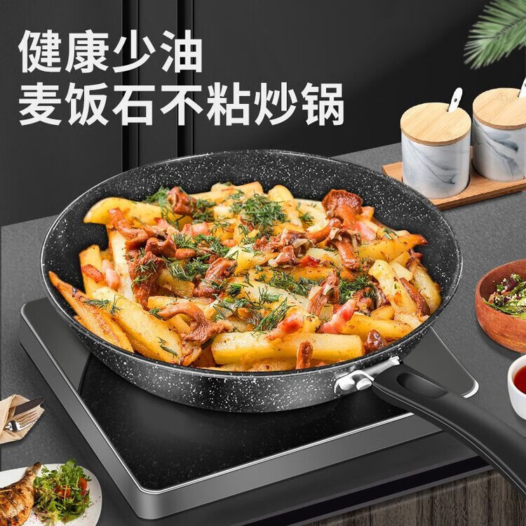 简漾麦饭石不粘锅炒锅无油烟家用炒菜锅平底锅电磁炉燃气灶通用 28cm无盖(明火专用) 1寸
