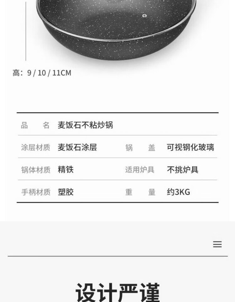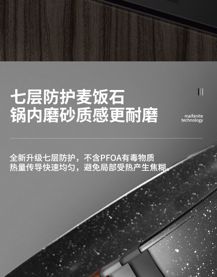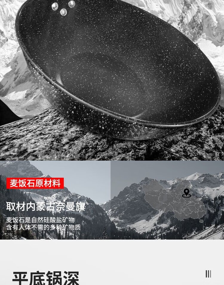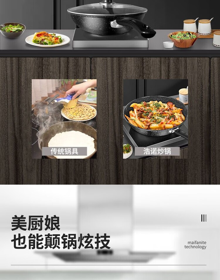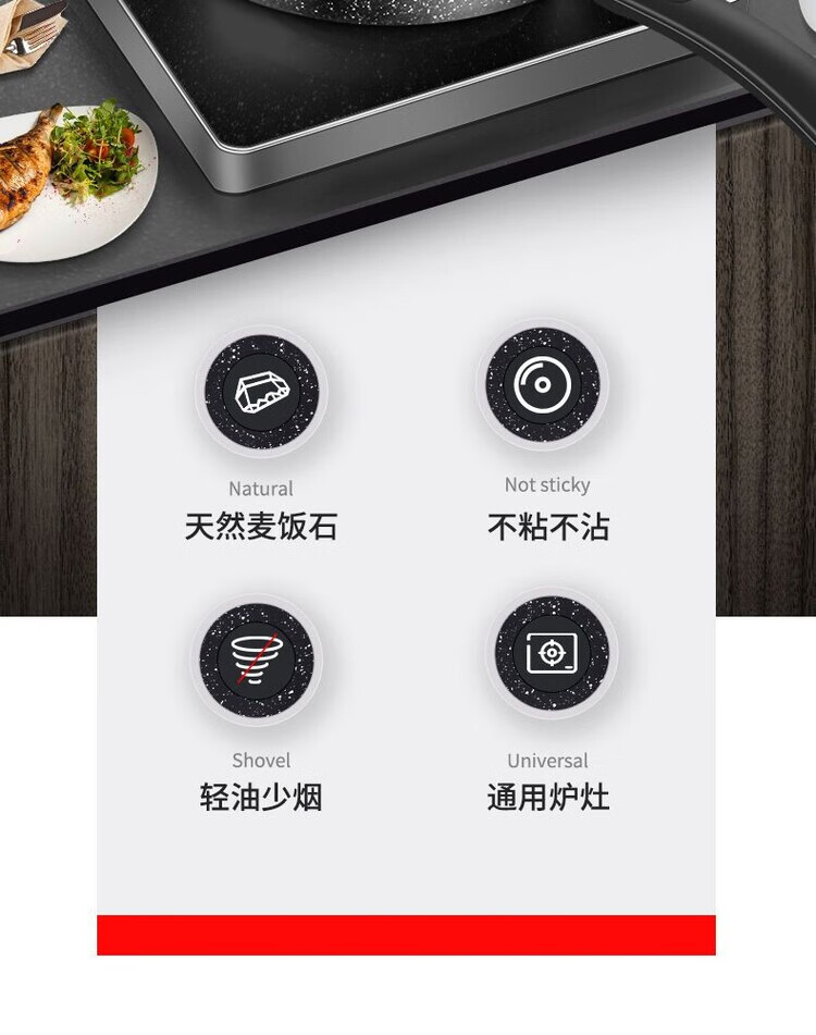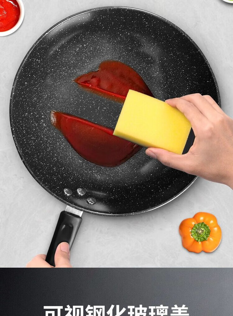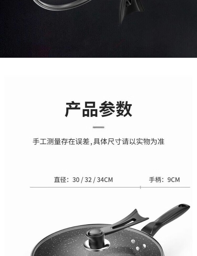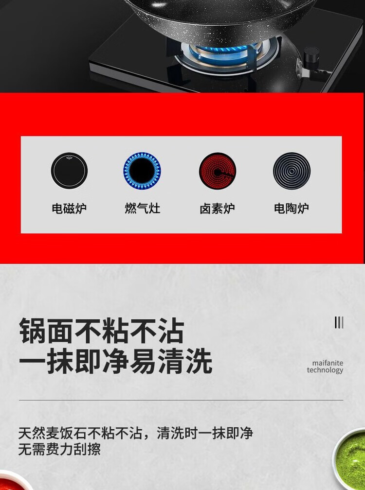 简漾麦饭石不粘锅炒锅无油烟家用炒菜锅平底锅电磁炉燃气灶通用 28cm无盖(明火专用) 1寸
