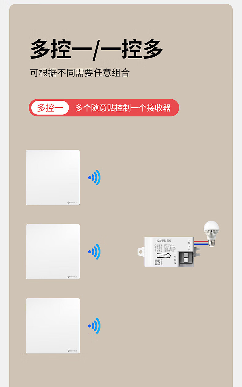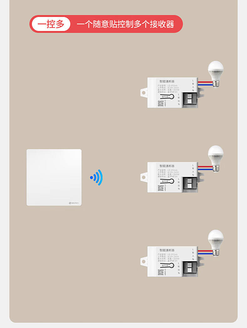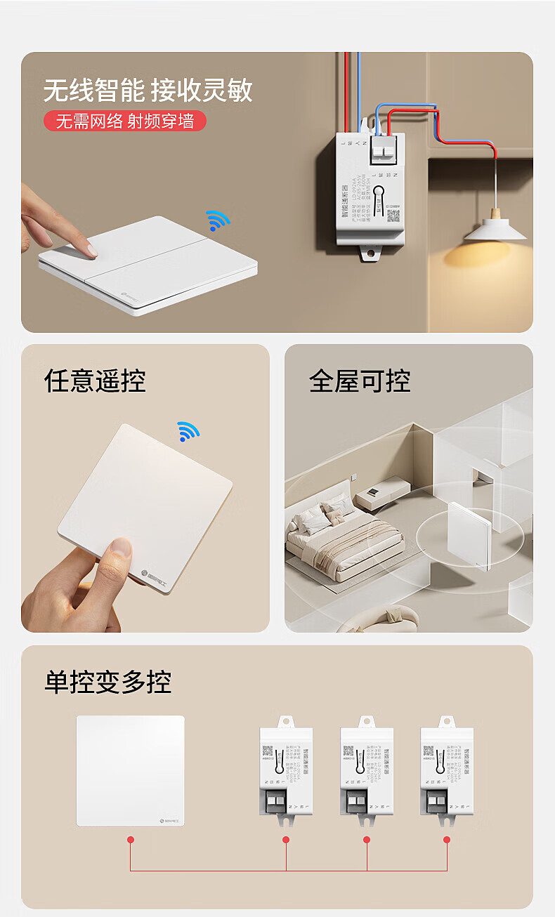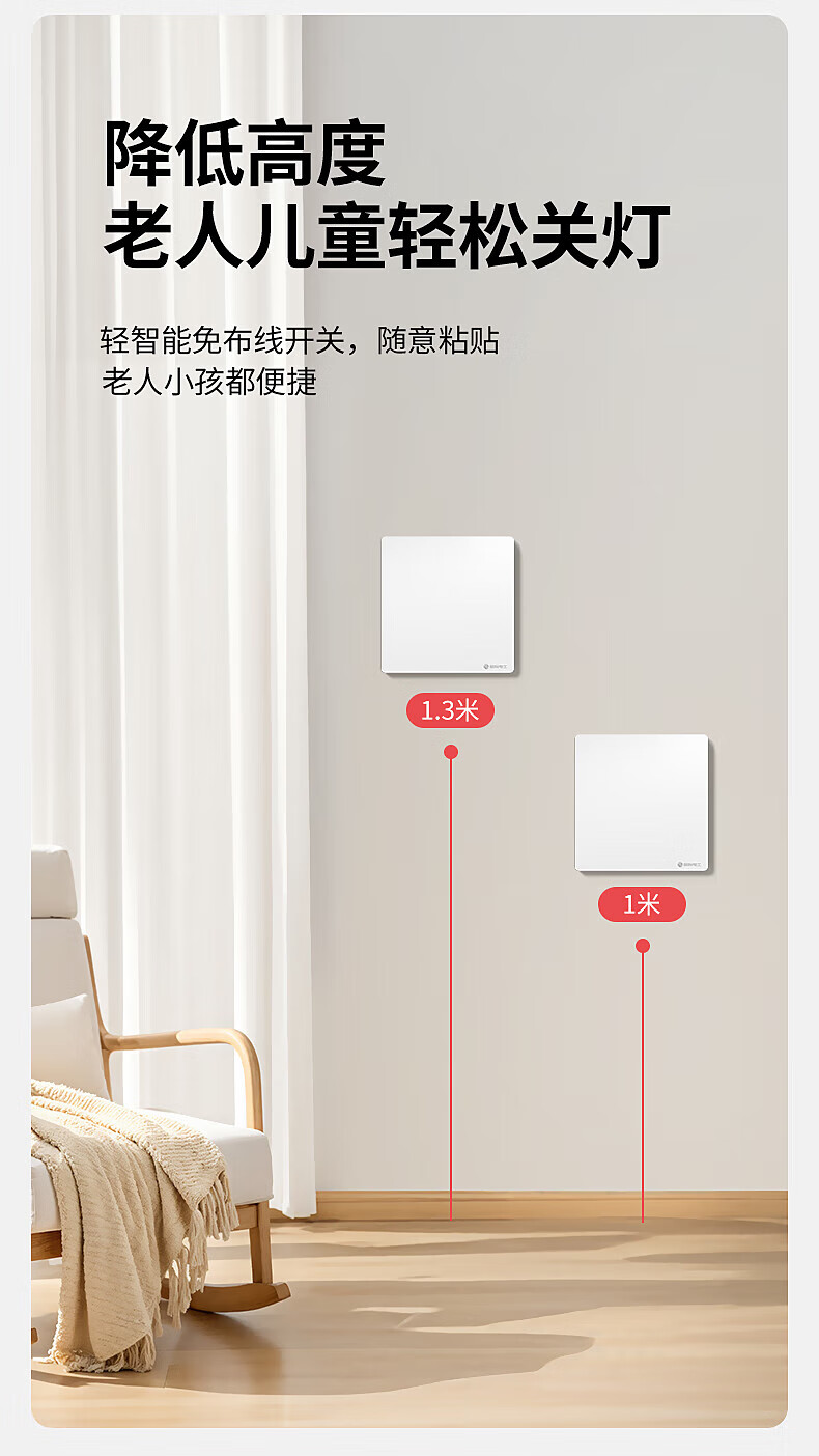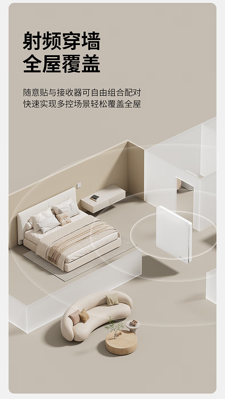 国际电工免改线无线遥控随意贴开关无线接收器已接入米家APP支持小爱同学 白色三开随意贴【需搭配智能通断器使用】