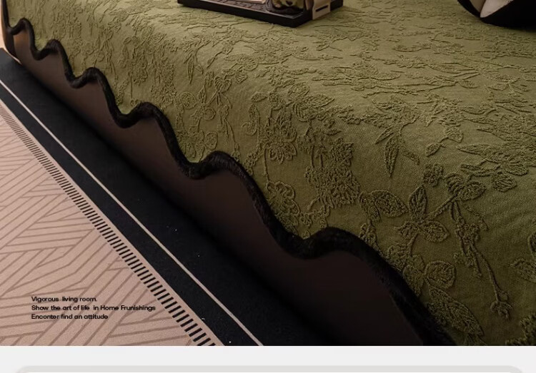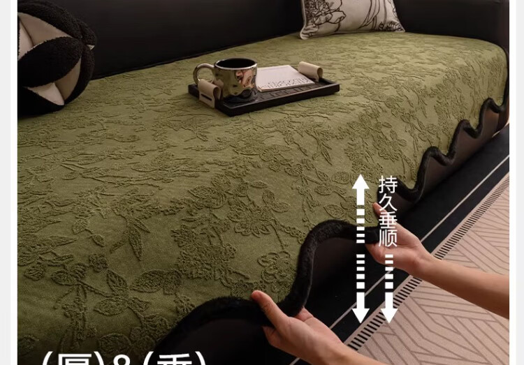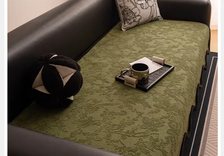 无印良品劳伦斯沙发垫子四季通用真皮沙发专用坐垫防滑沙发座垫高级感盖布 夕颜-绿色【优质高克重雪尼尔 四季通用】 90*160cm (双人位/可做贵妃位)