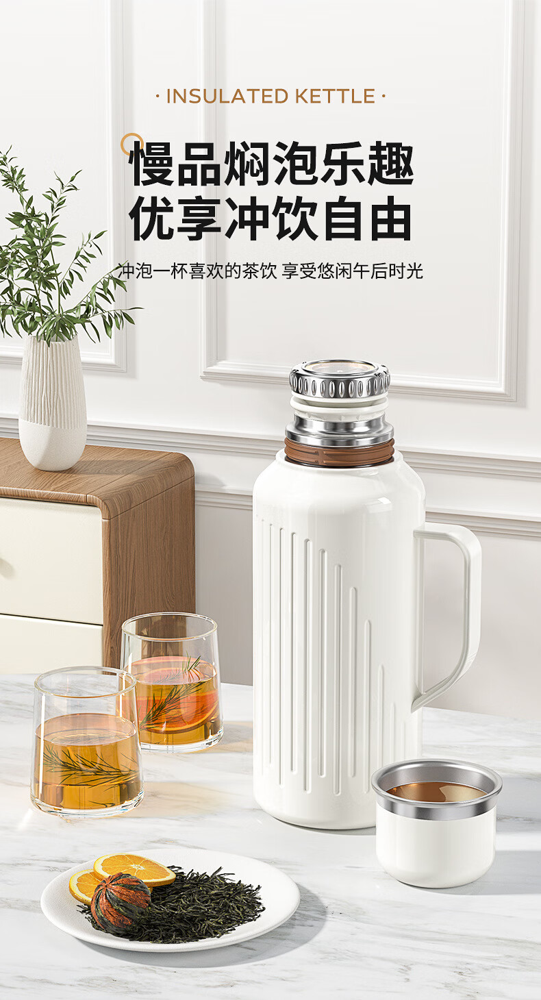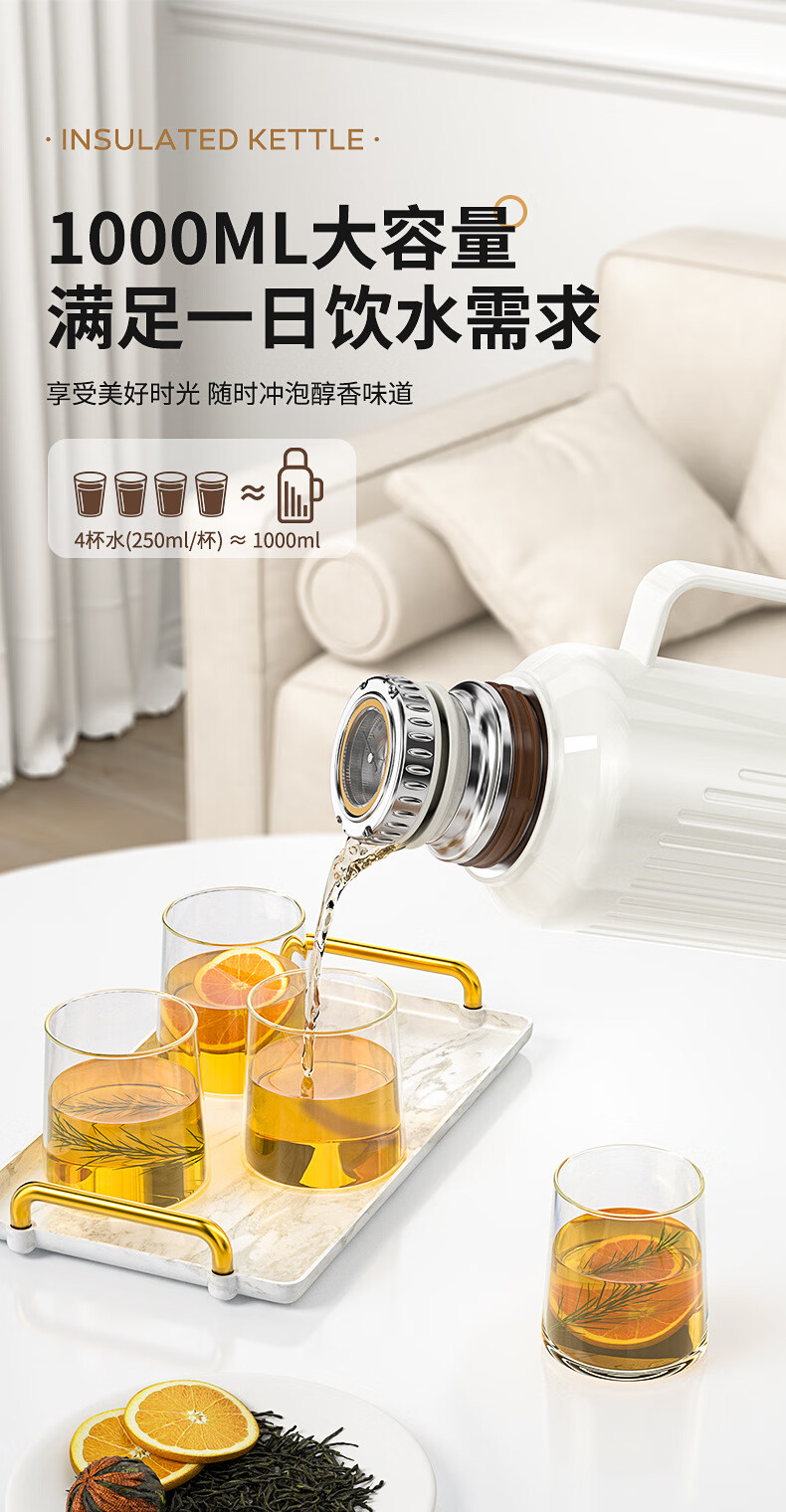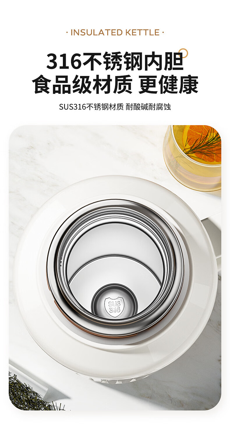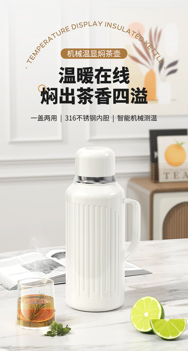 WFFPM德国品牌316内胆机械显温焖茶壶复古风保温杯男士白茶焖泡茶壶 陶瓷白1000ML 27*9.5cm