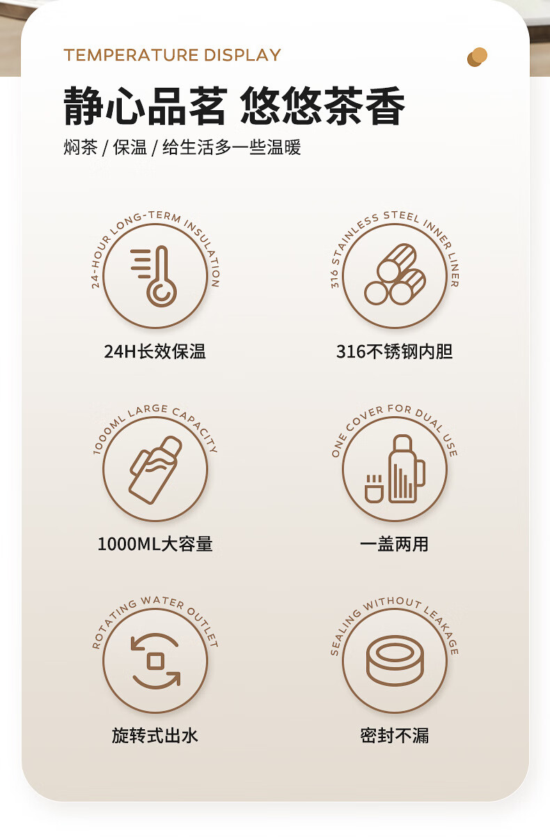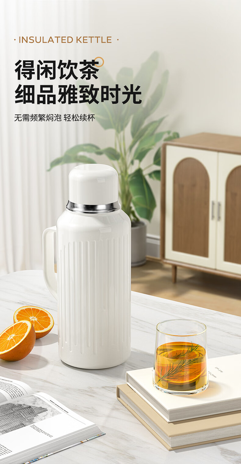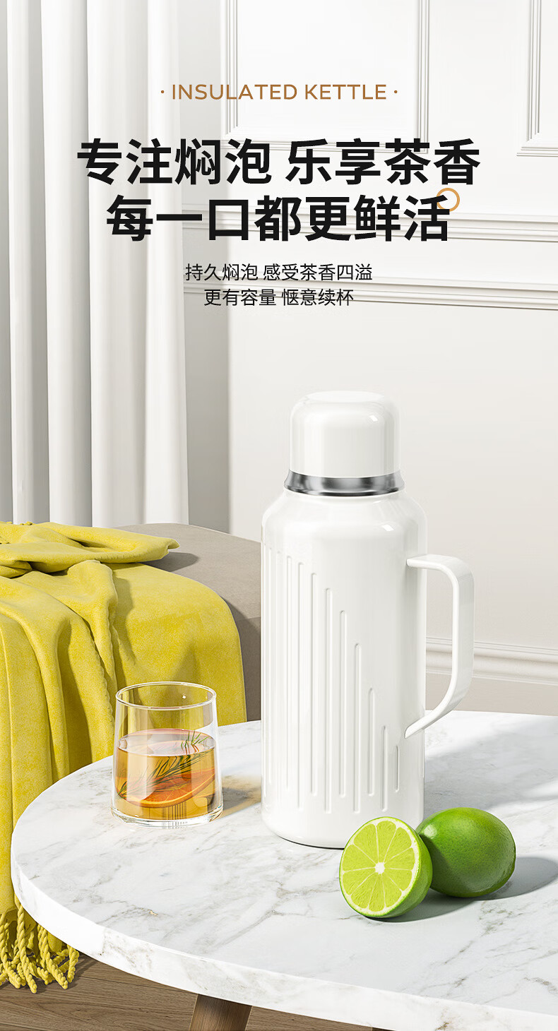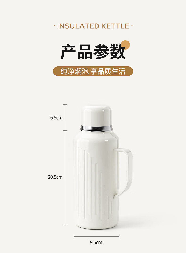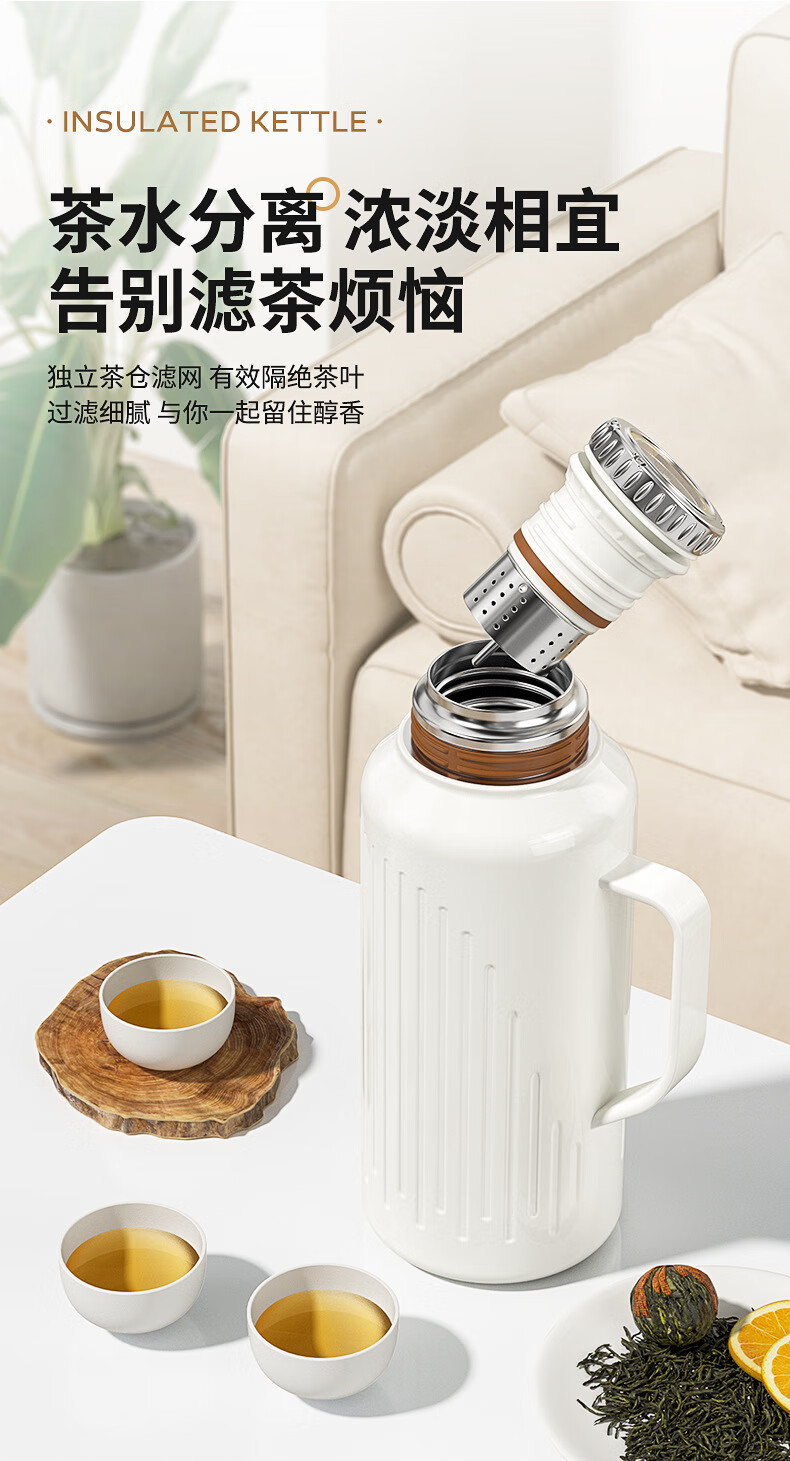 WFFPM德国品牌316内胆机械显温焖茶壶复古风保温杯男士白茶焖泡茶壶 陶瓷白1000ML 27*9.5cm