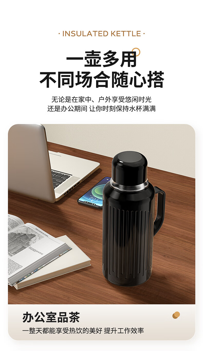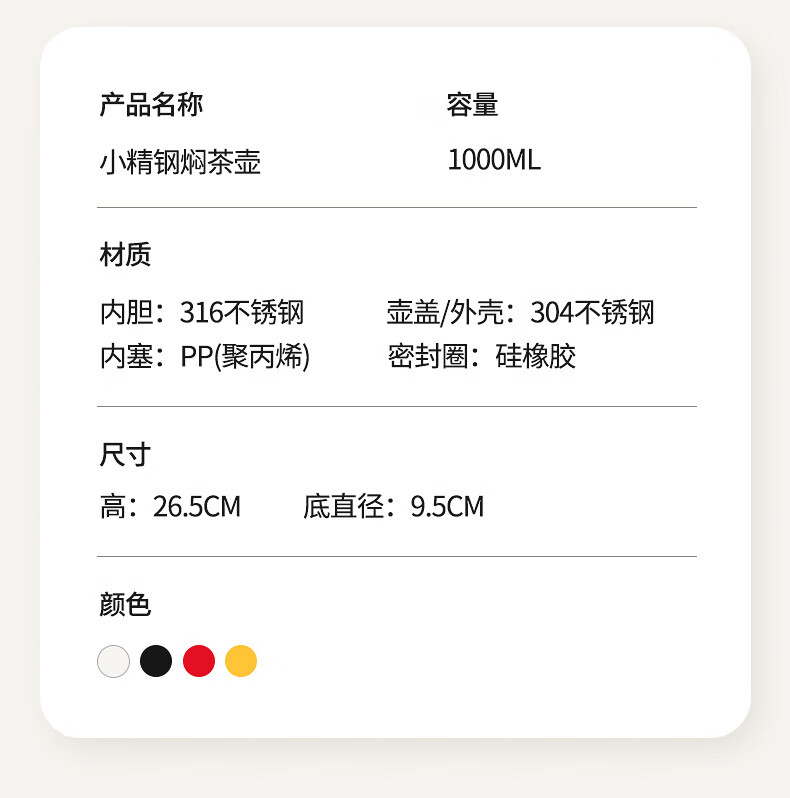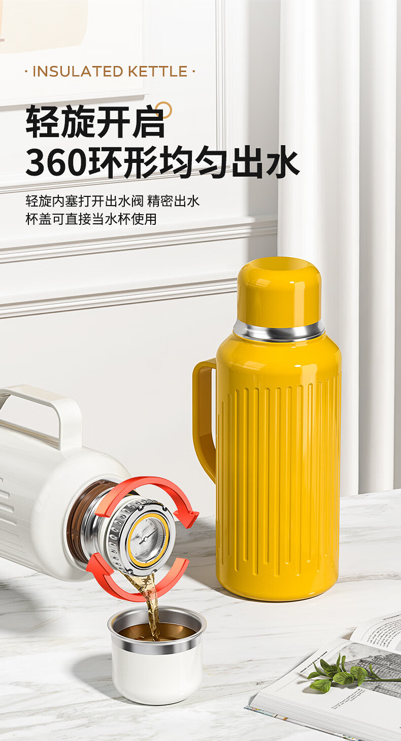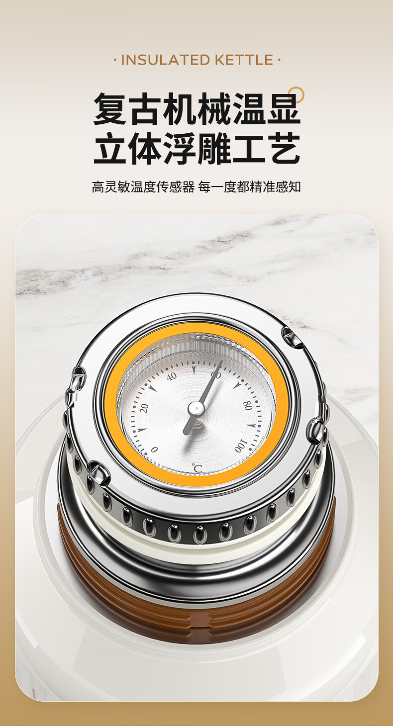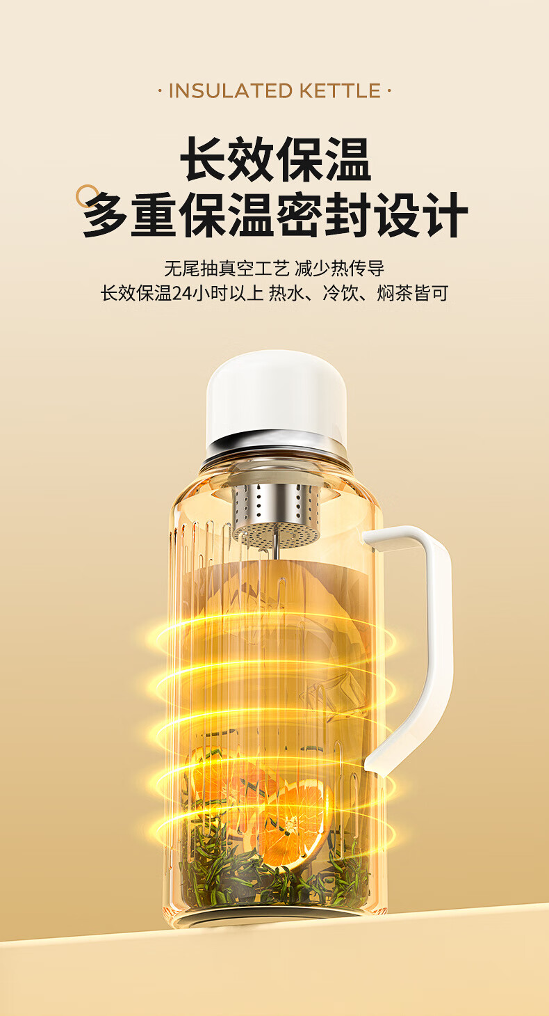 WFFPM德国品牌316内胆机械显温焖茶壶复古风保温杯男士白茶焖泡茶壶 陶瓷白1000ML 27*9.5cm
