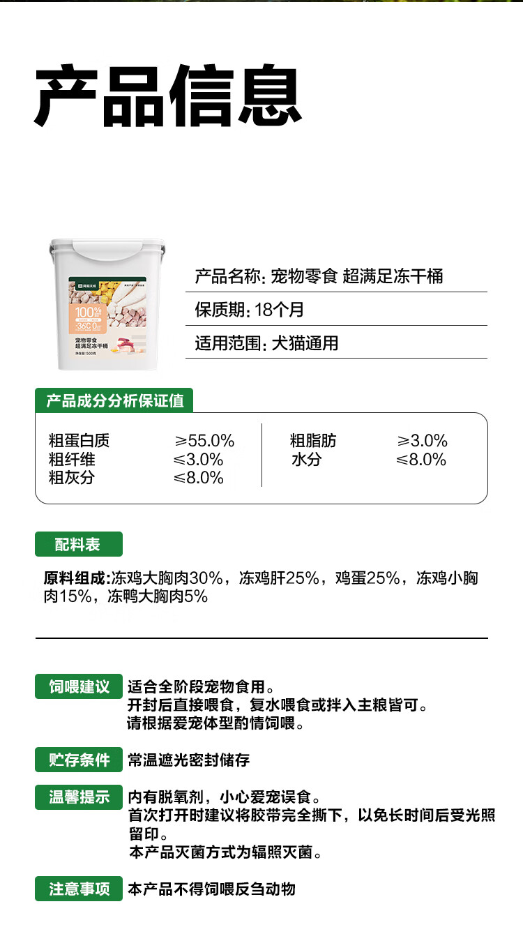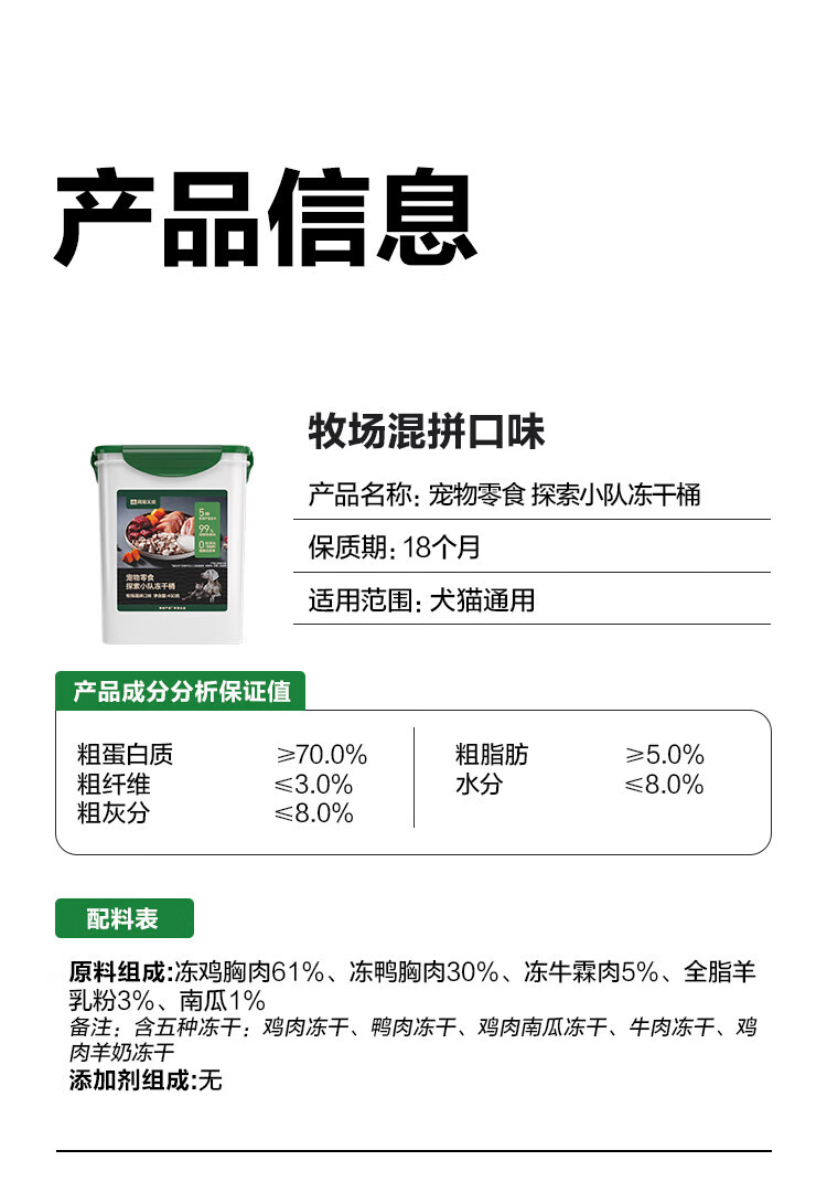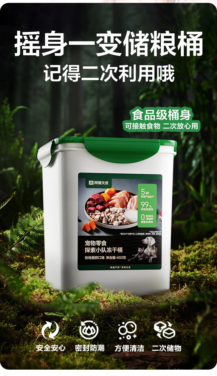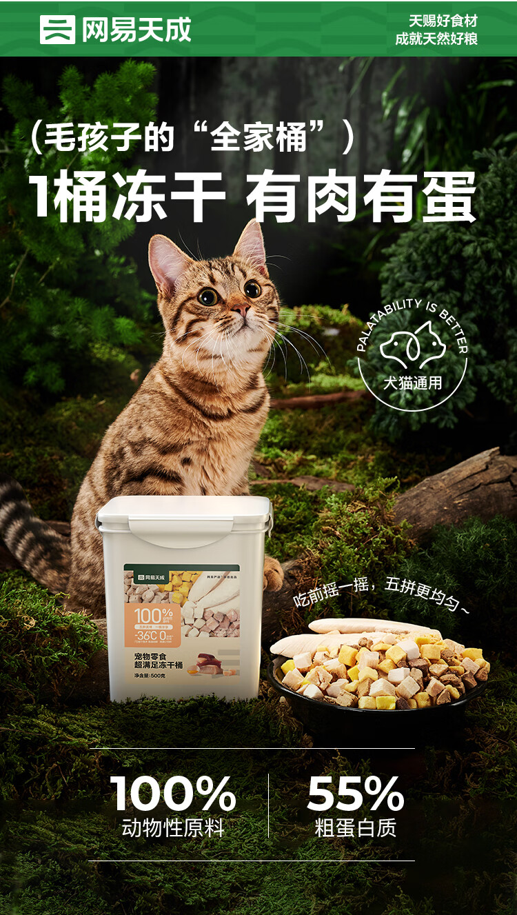 网易严选 零食冻干桶 宠物零食冻干桶鸡肉零食犬猫通用冻干零食 五拼冻干500g*1罐