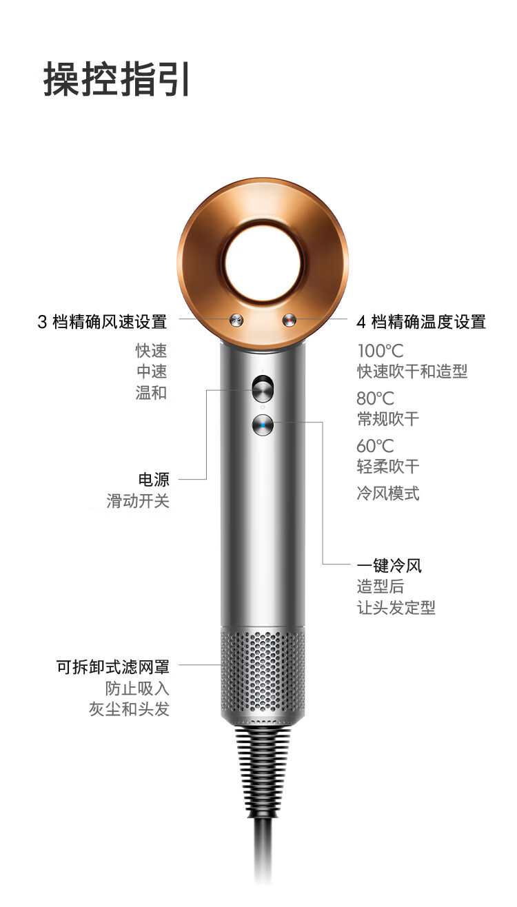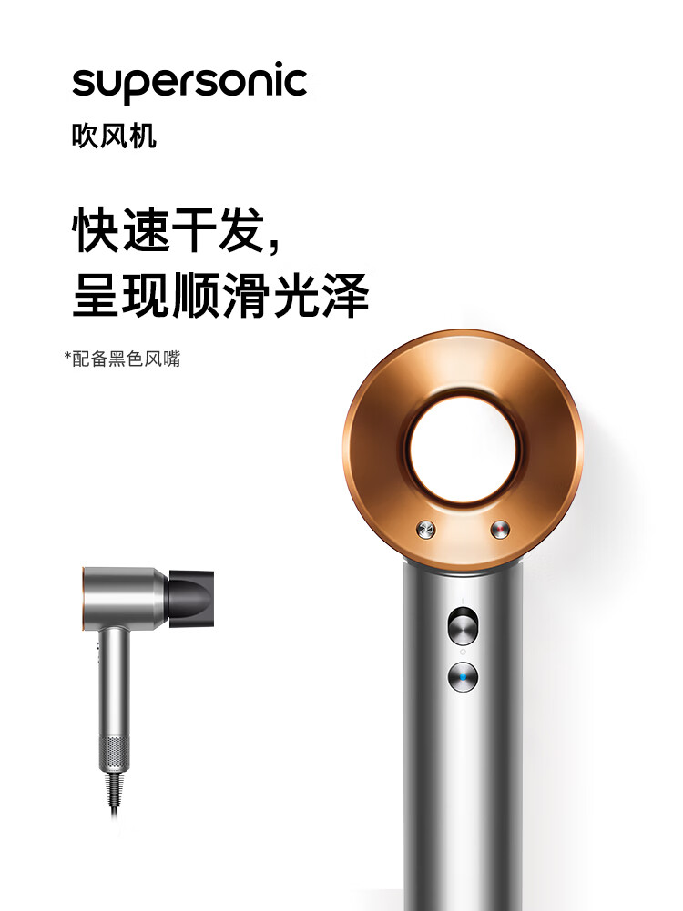 戴森(DYSON)HD08入门款高速电吹风机黑色风嘴版 快速干发 顺发 不伤发 大功率 家用礼物 HD08 铜镍色