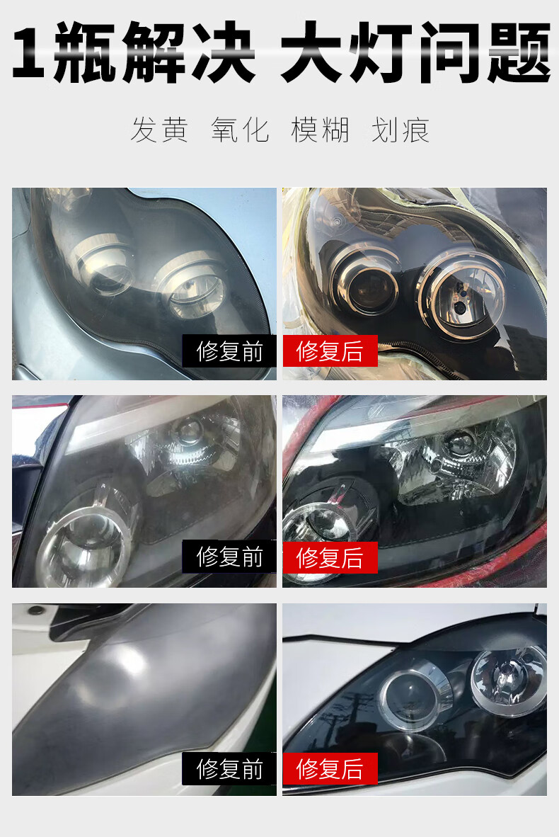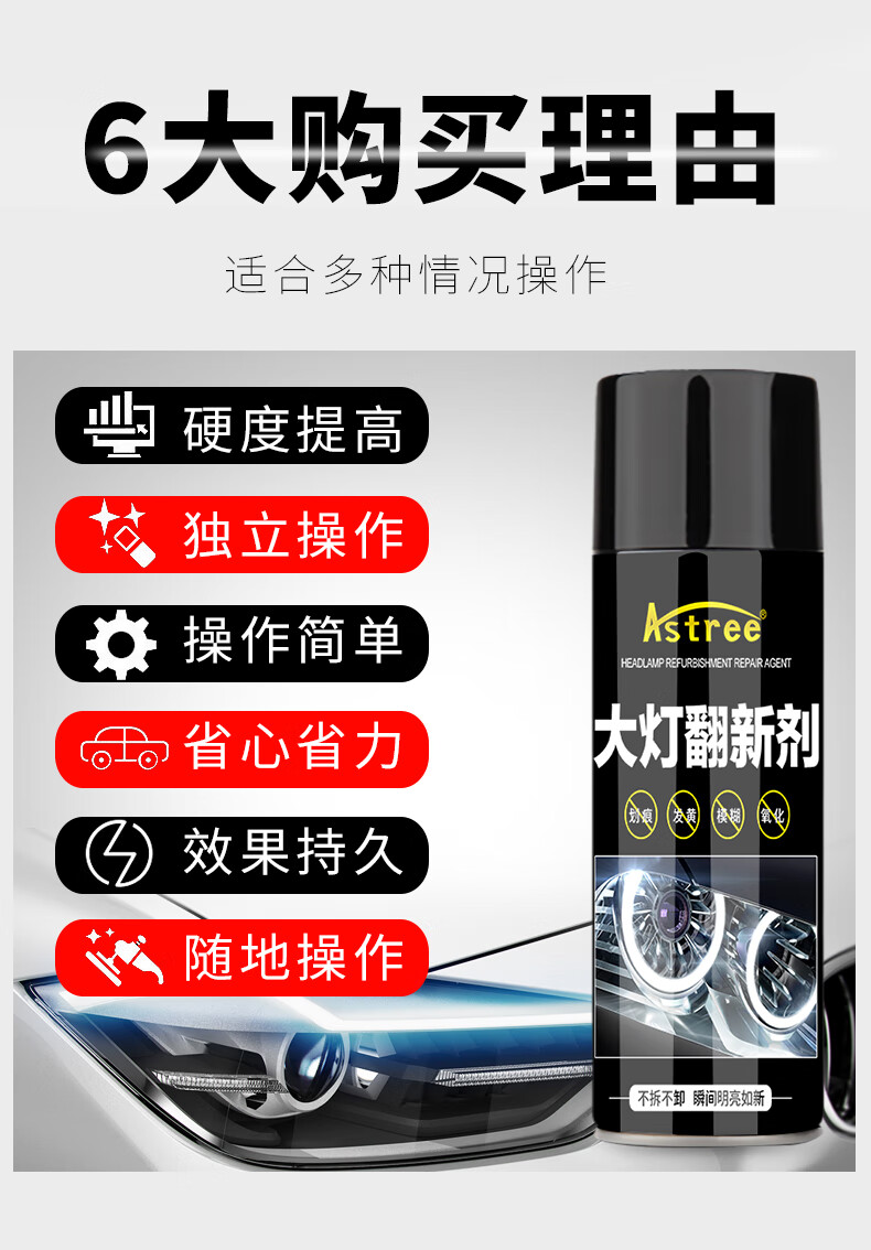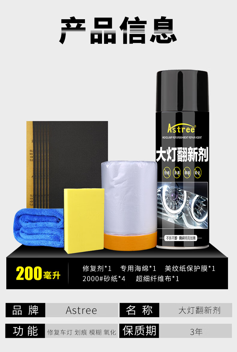 Astree汽车大灯修复液 车灯通用翻新修复剂灯罩变黄氧化修复刮痕修补