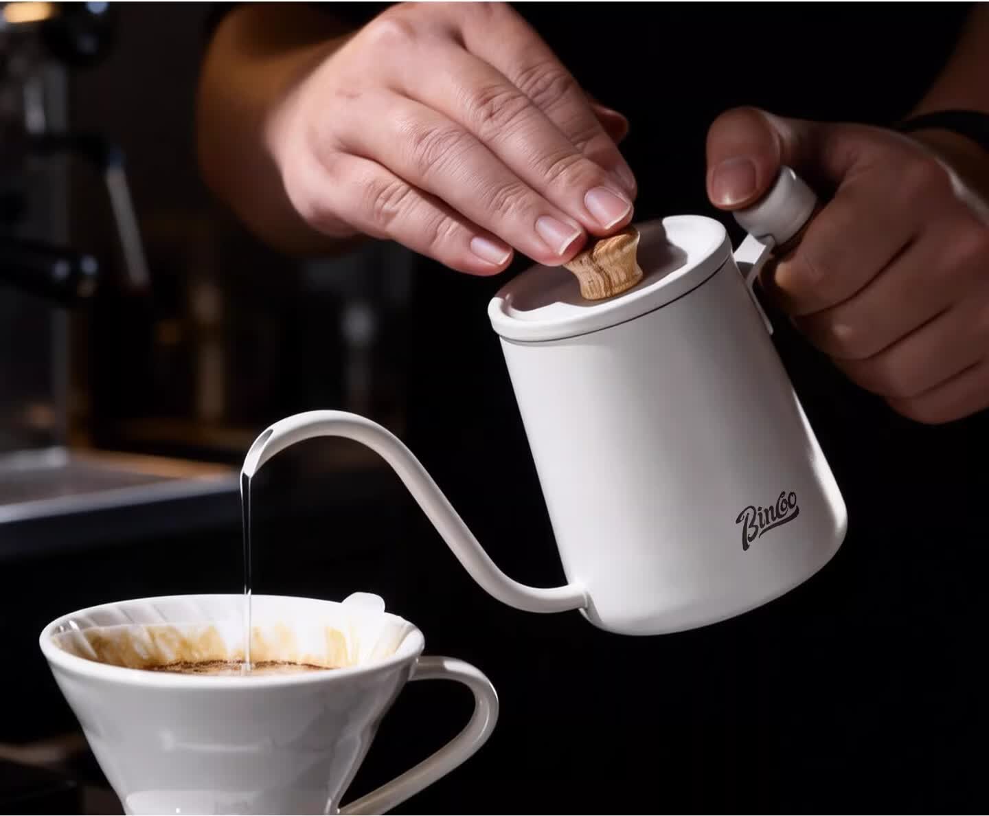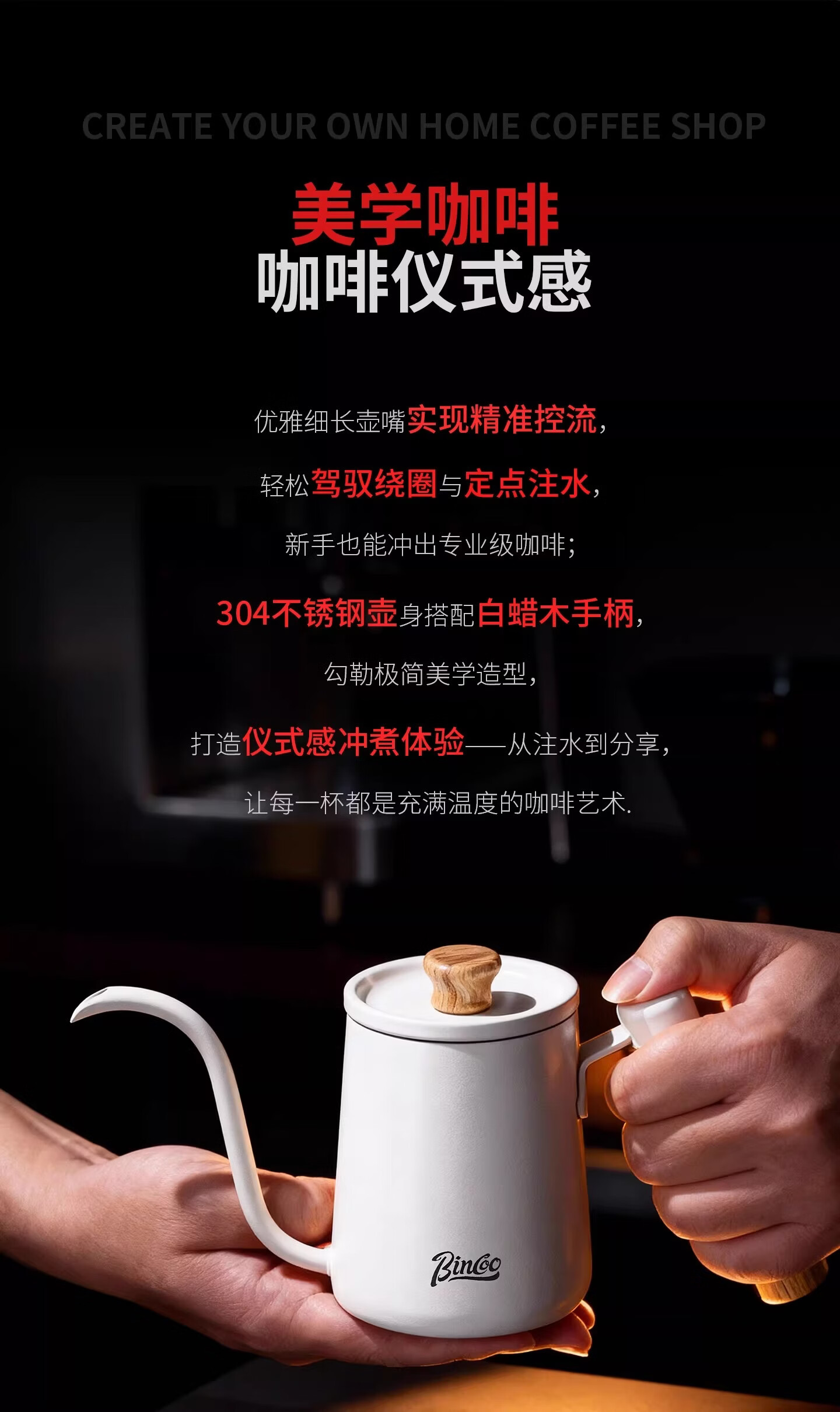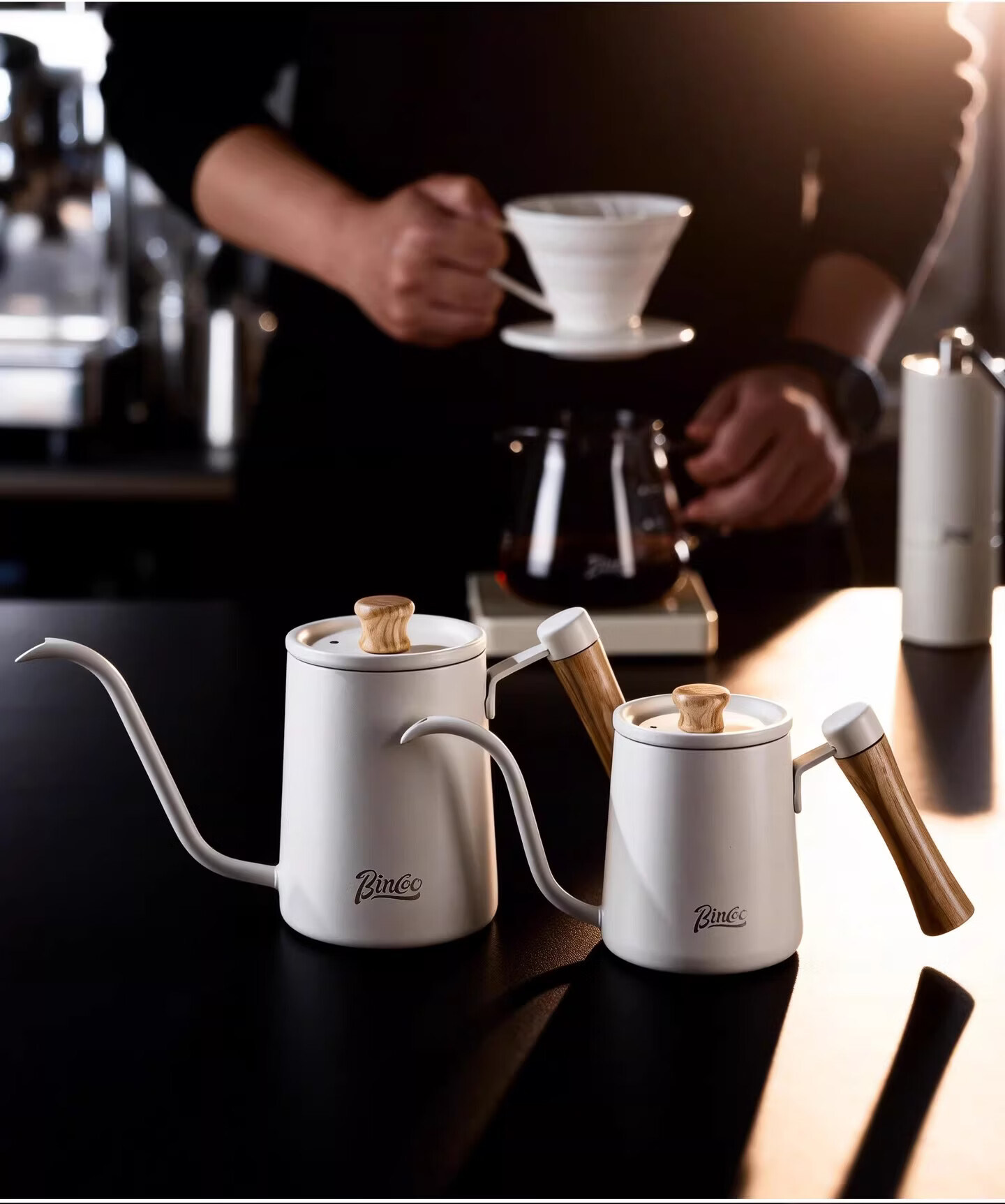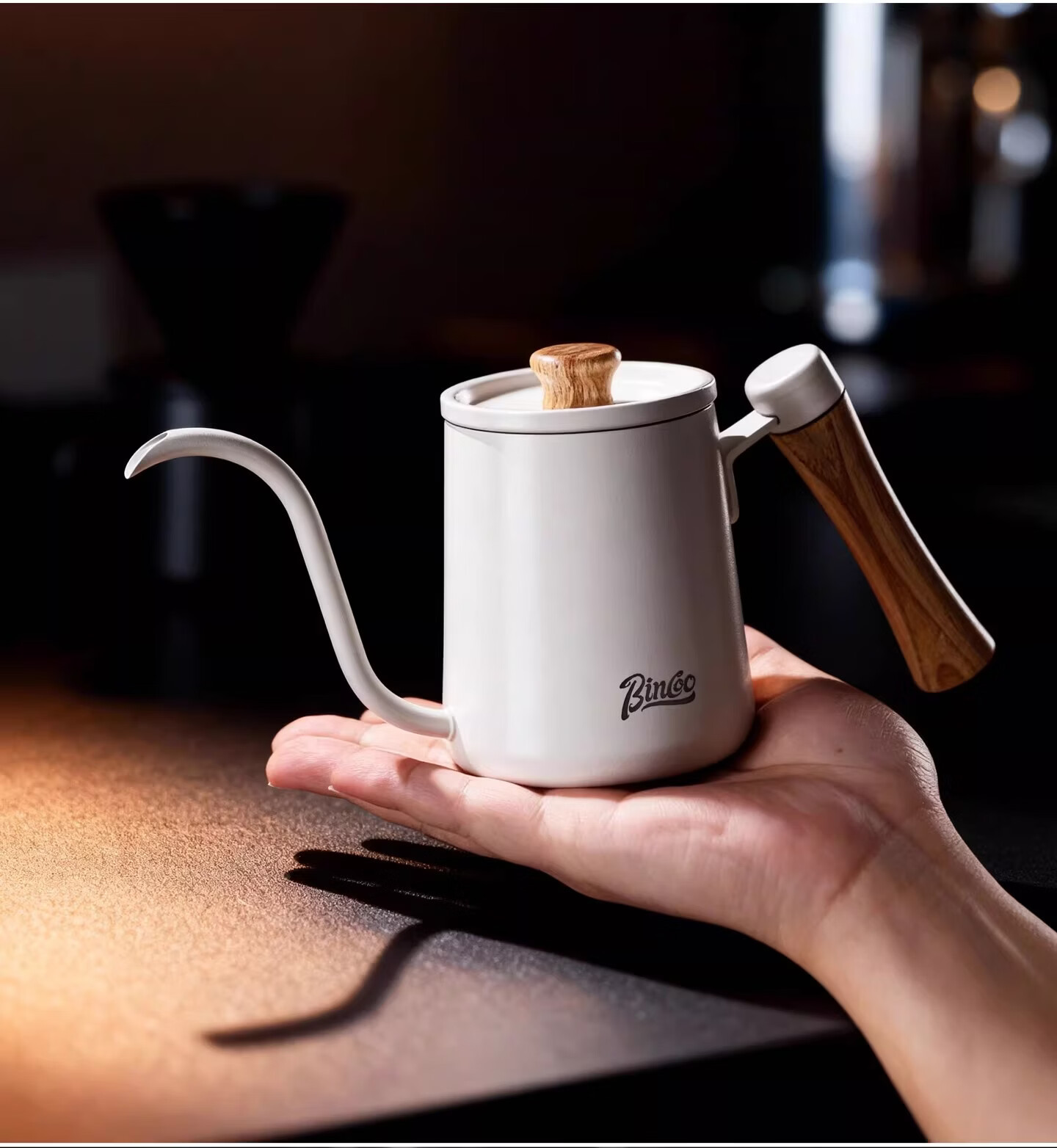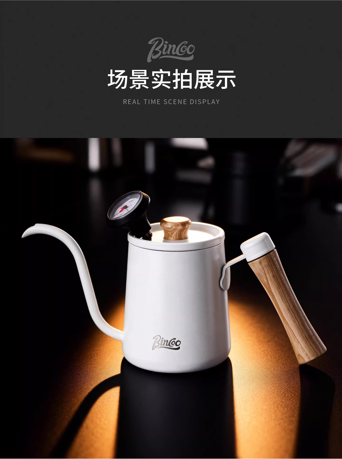 Bincoo手冲咖啡壶家用长嘴壶木柄细口壶挂耳小型迷你手冲壶带刻度 小壶-350ml【白色】
