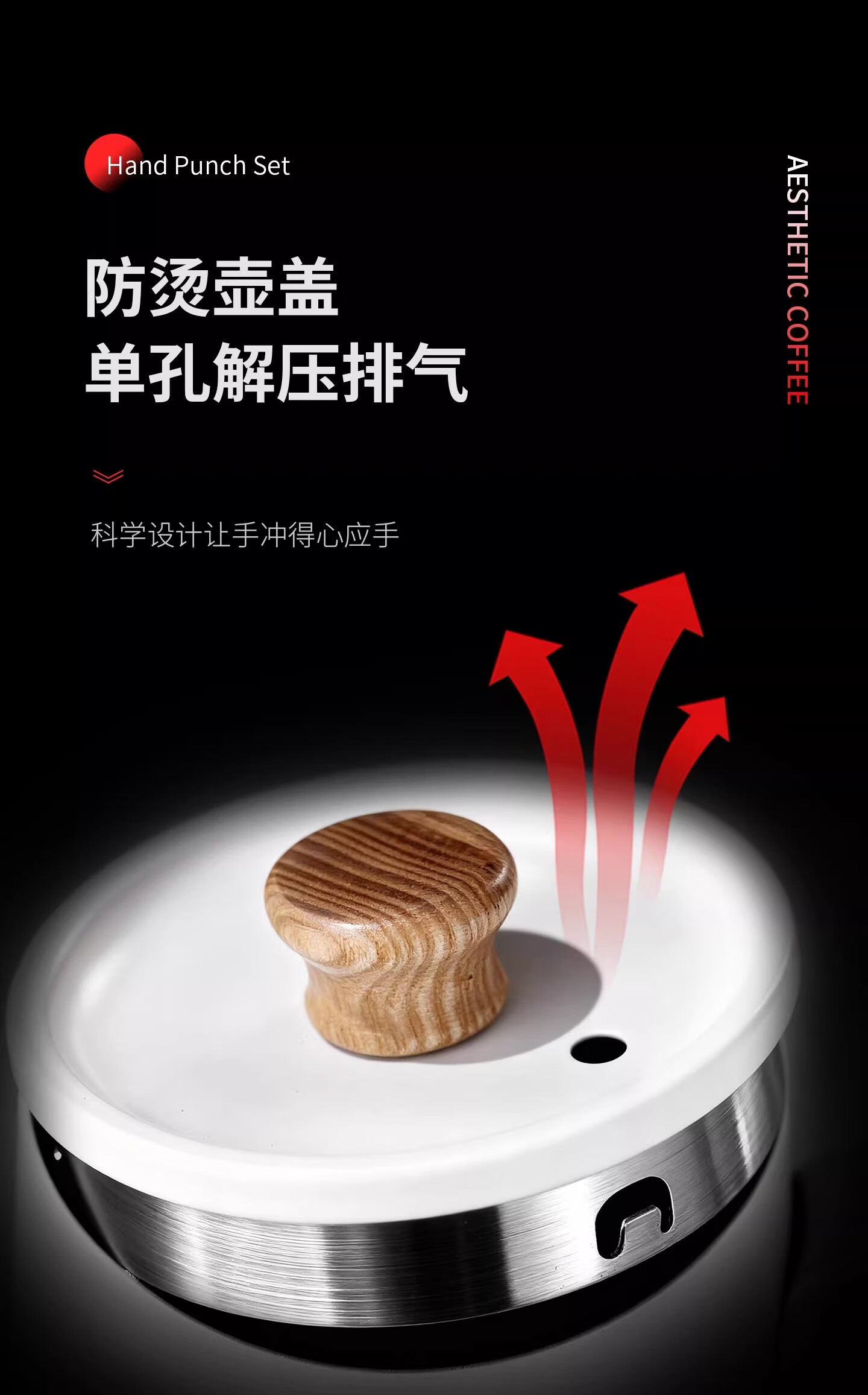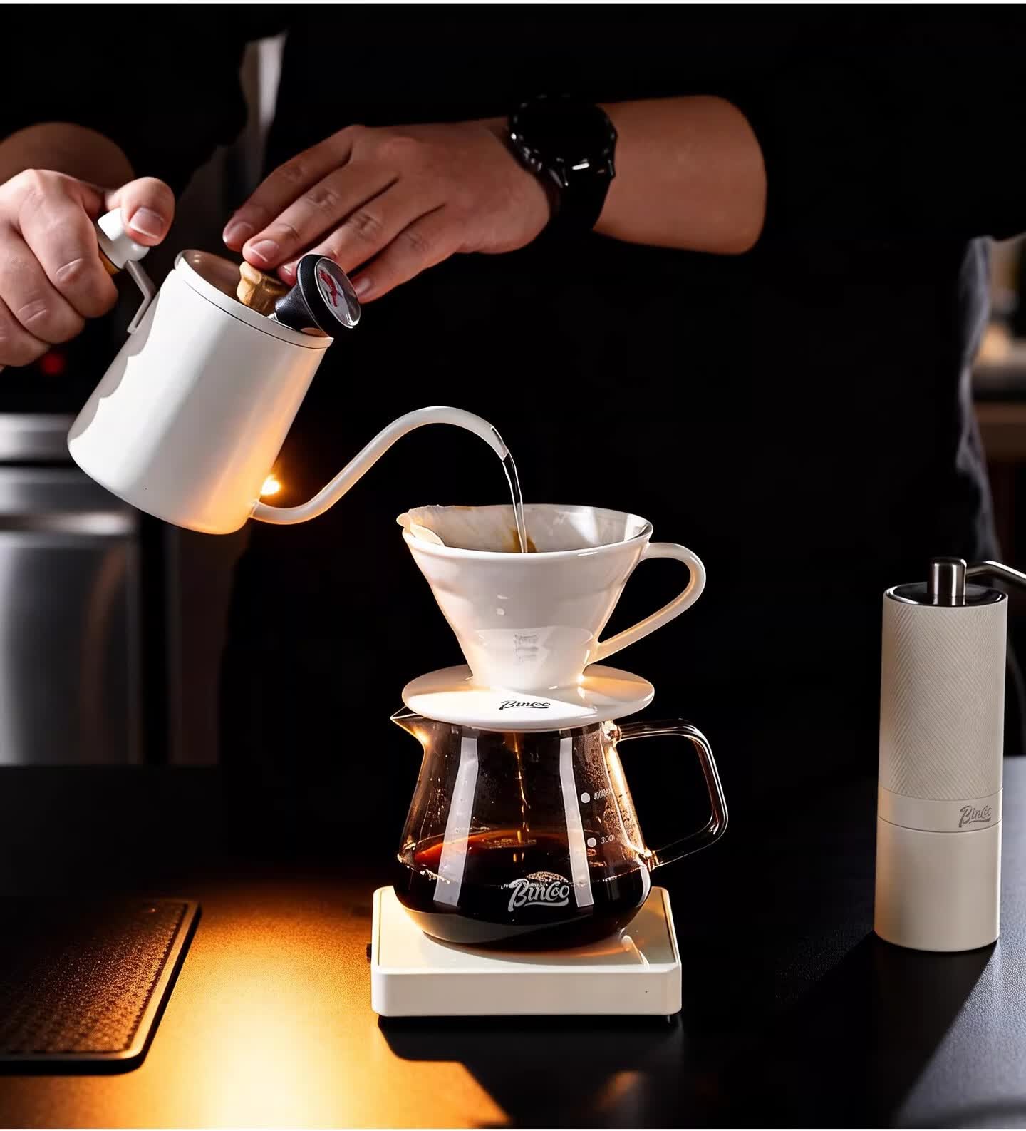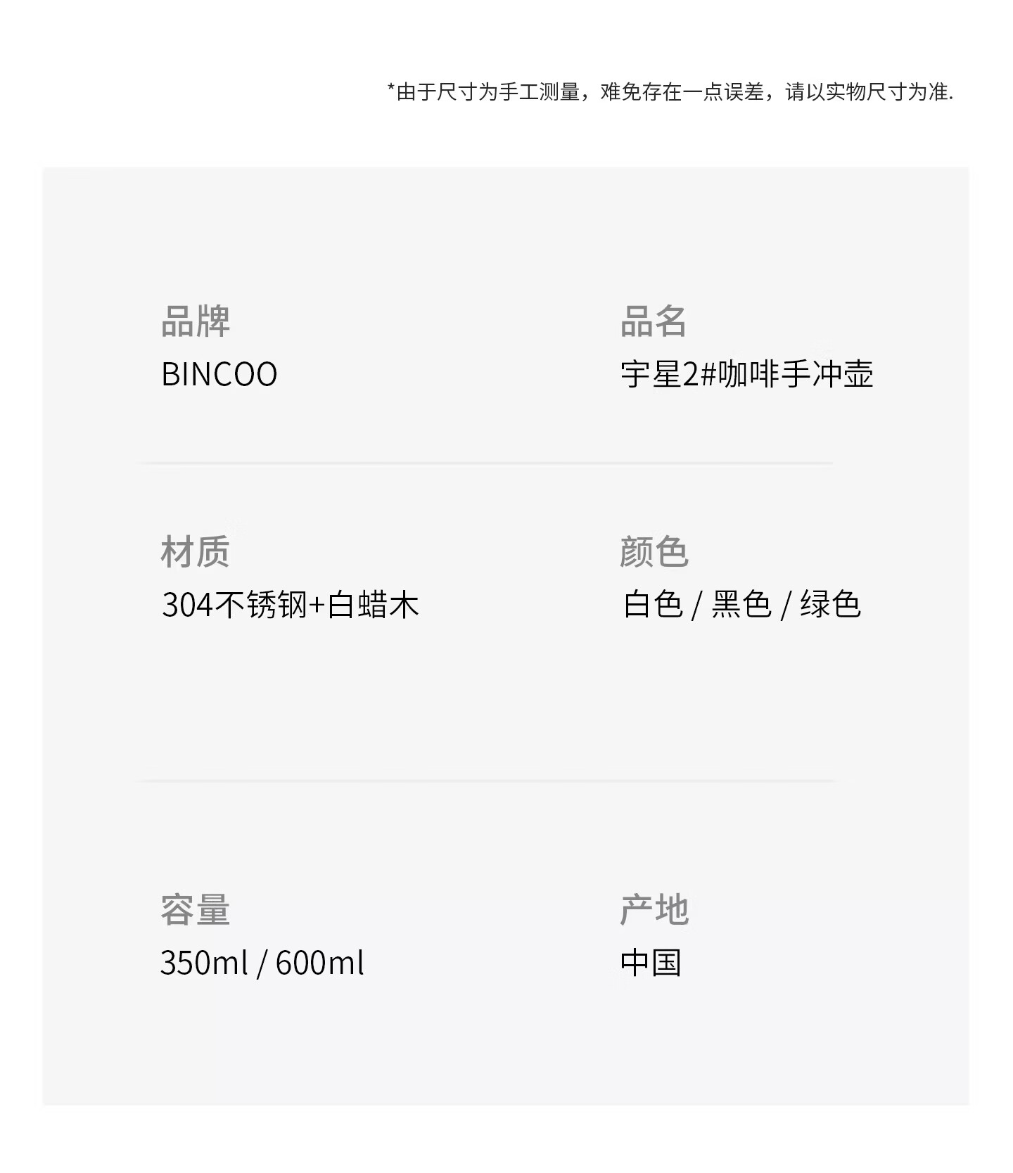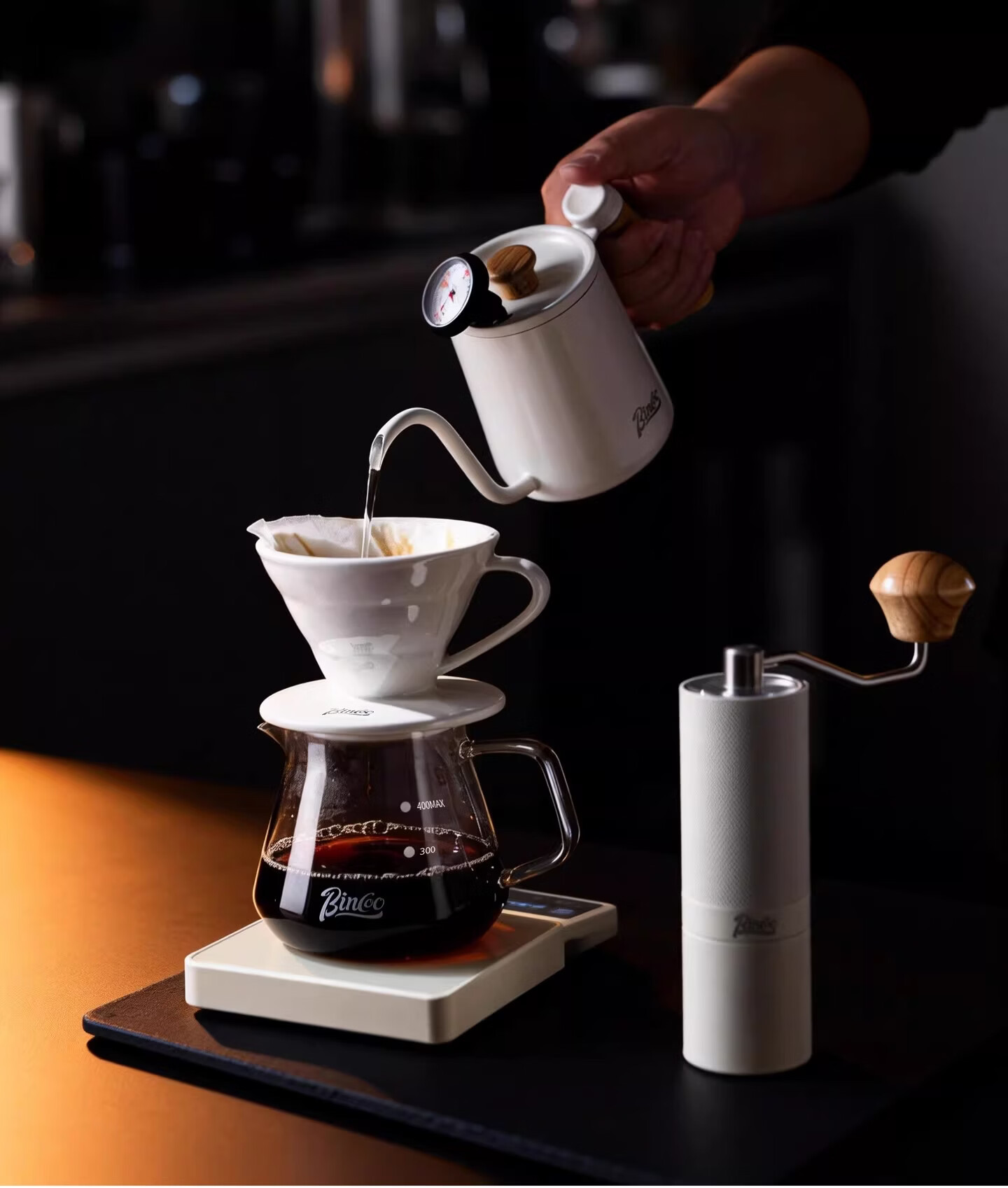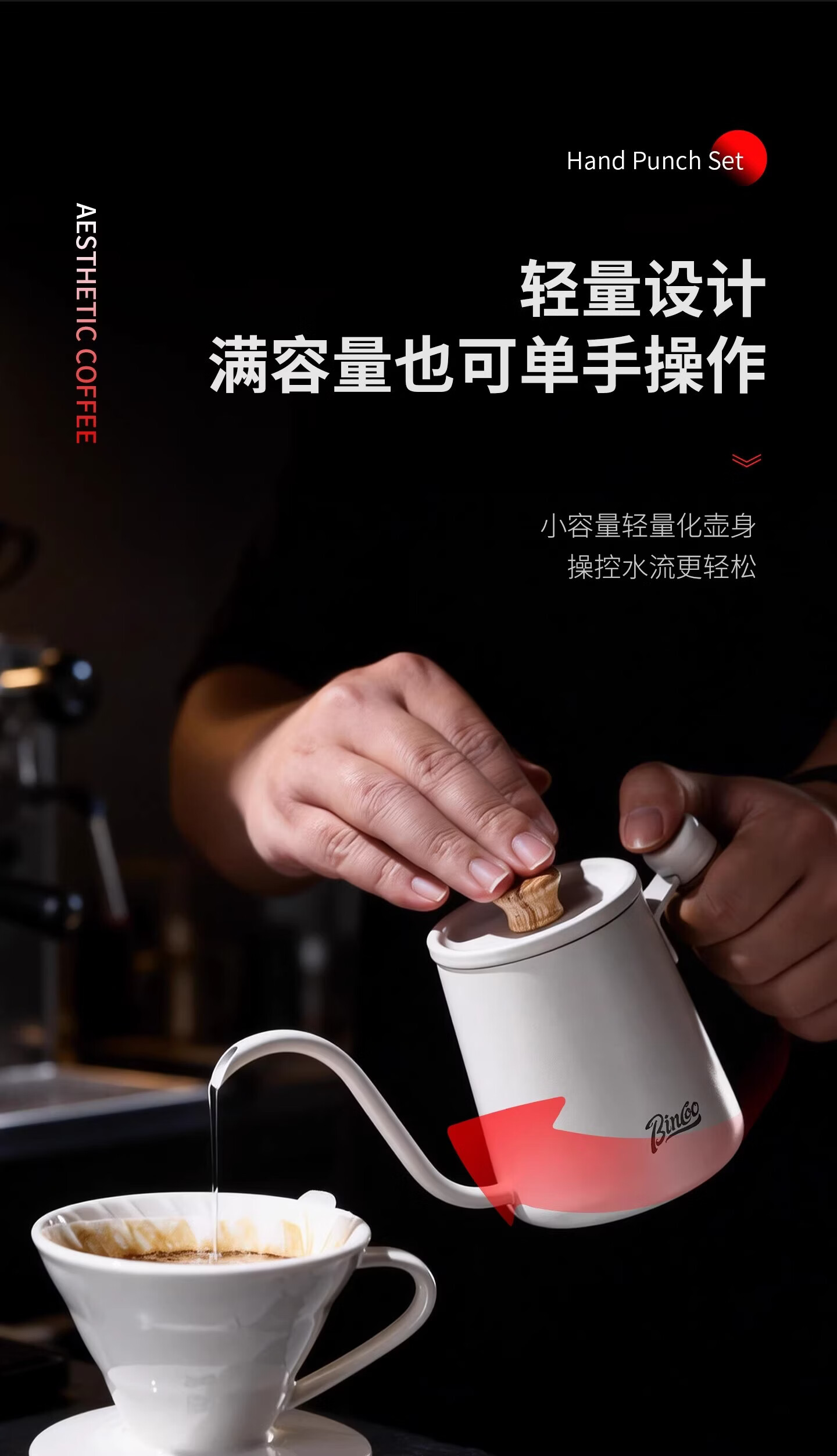 Bincoo手冲咖啡壶家用长嘴壶木柄细口壶挂耳小型迷你手冲壶带刻度 小壶-350ml【白色】