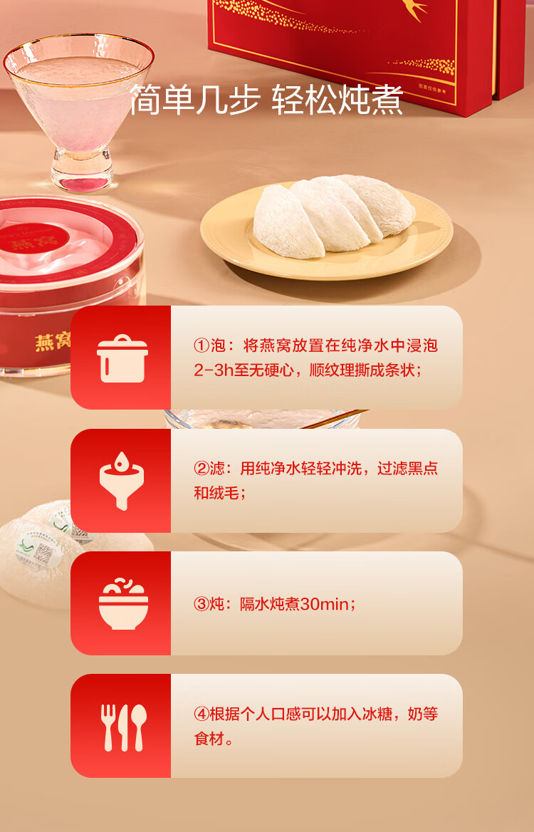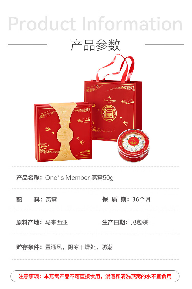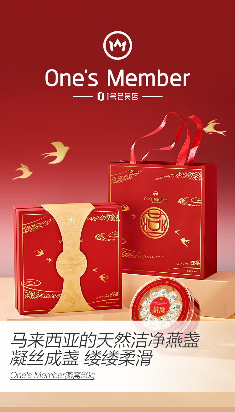 1号会员店干燕窝盏50g马来西亚密盏银标可溯源送礼送父母爸妈长辈