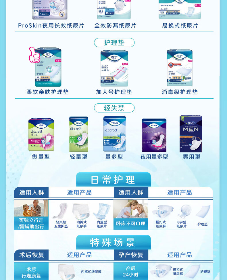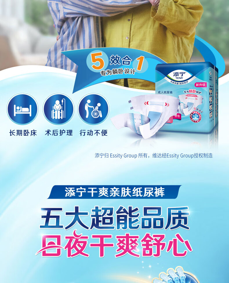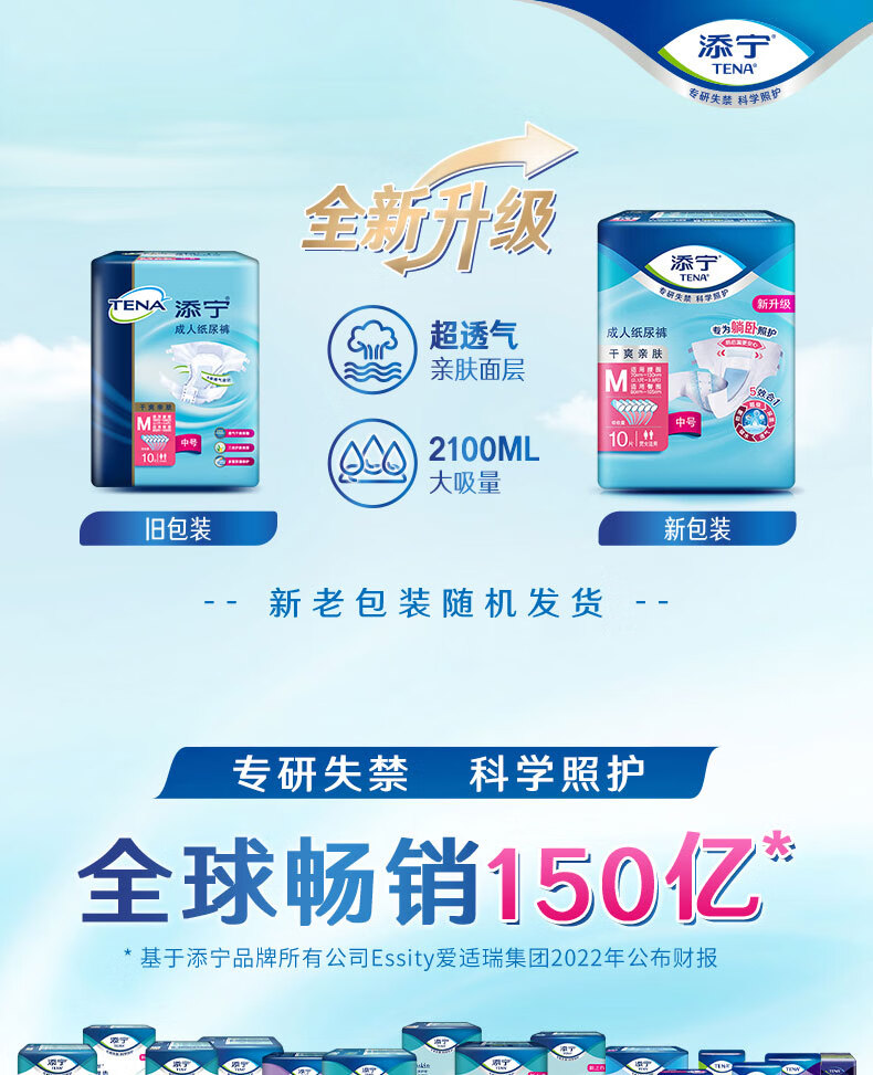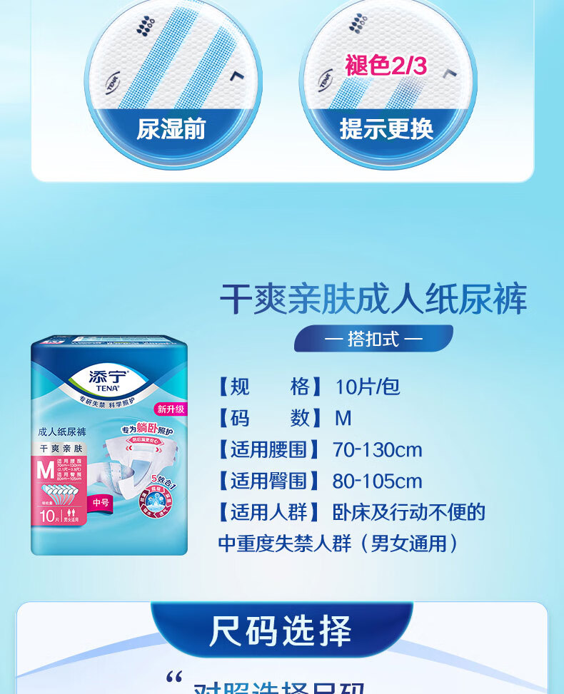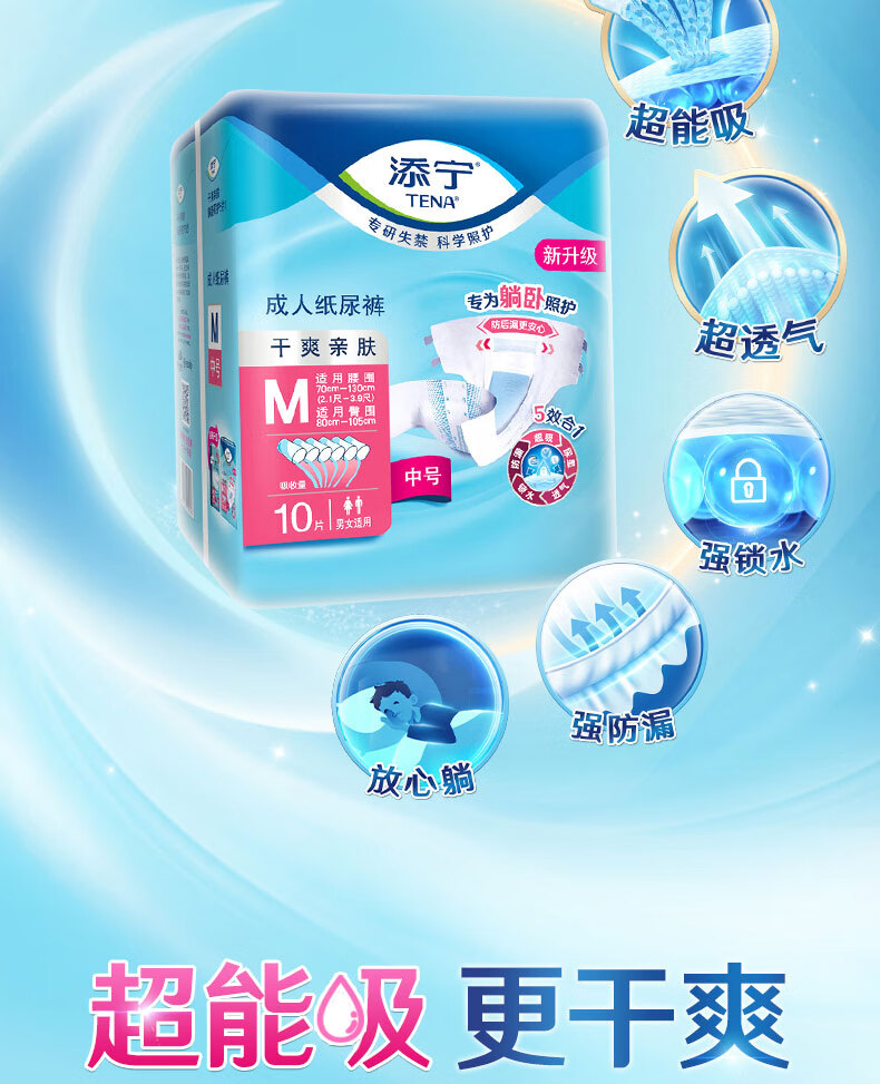 添宁(TENA)干爽亲肤成人纸尿裤M80片(腰围:70-130cm)产妇 老年人尿不湿