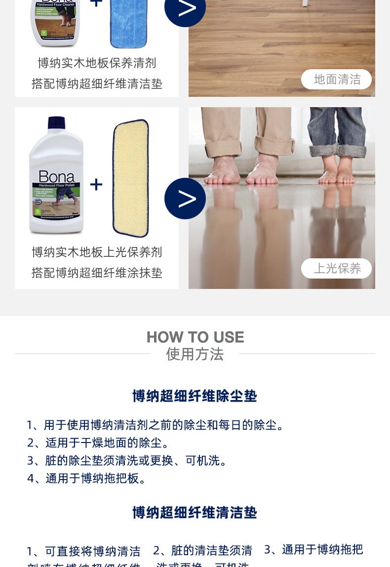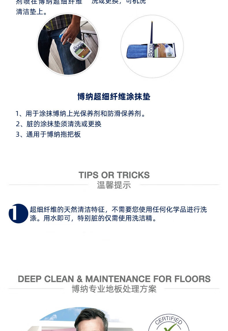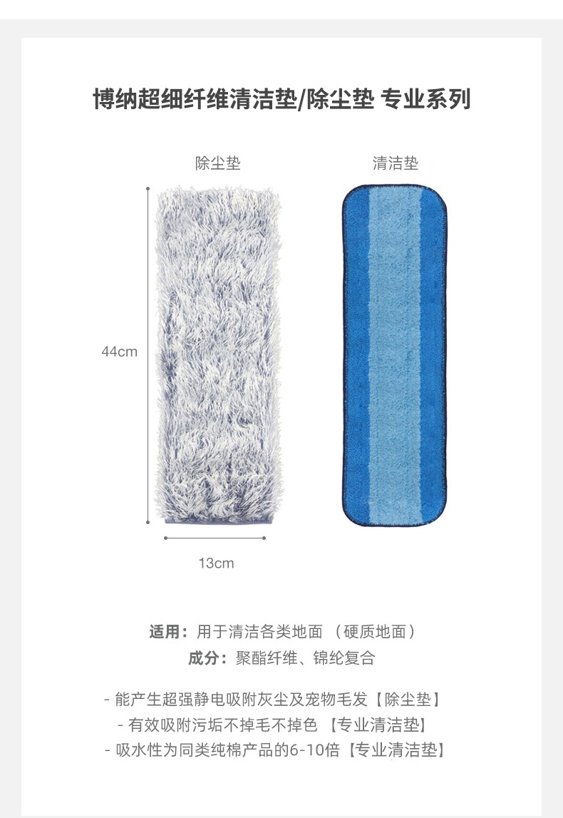 博纳BONA 超细清洁纤维垫除尘垫干湿两用清洁垫拖布替换装 单块涂抹垫