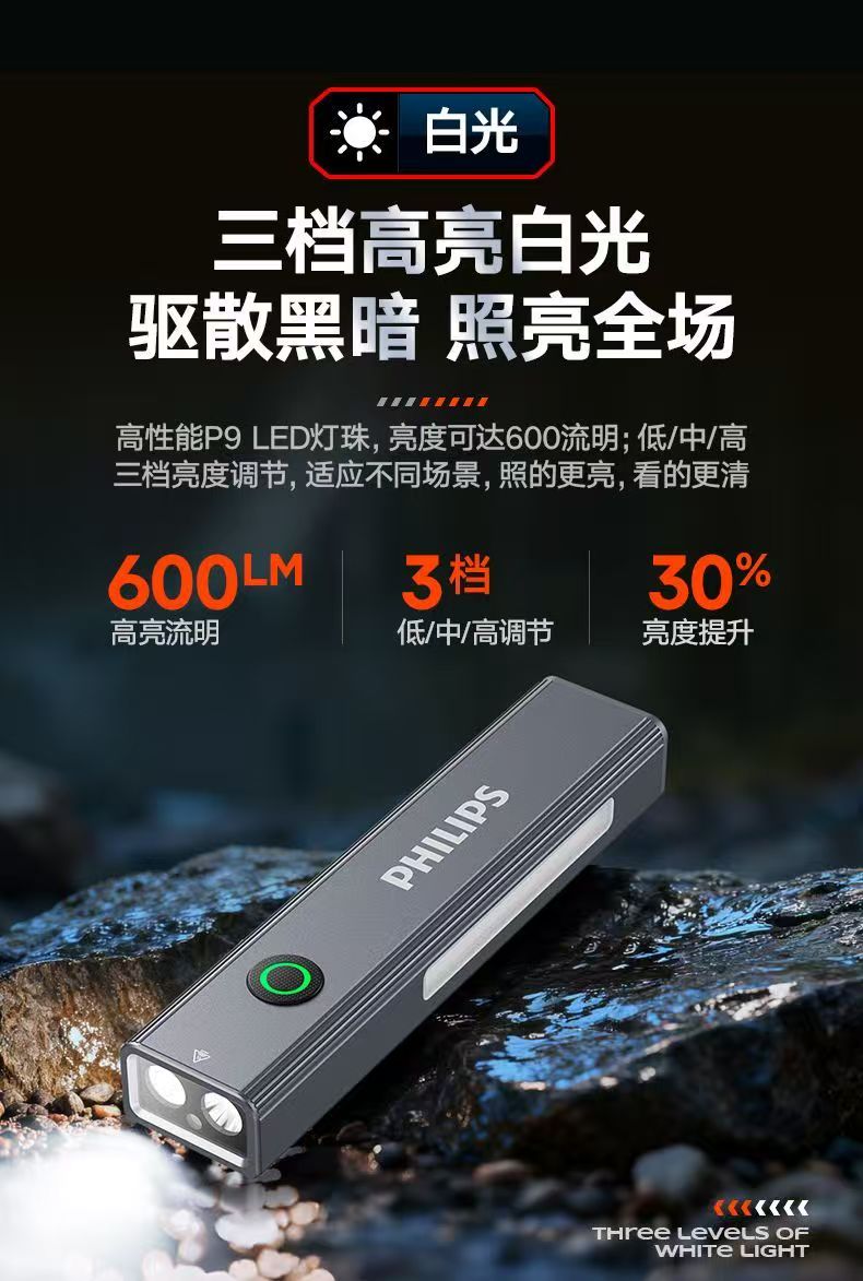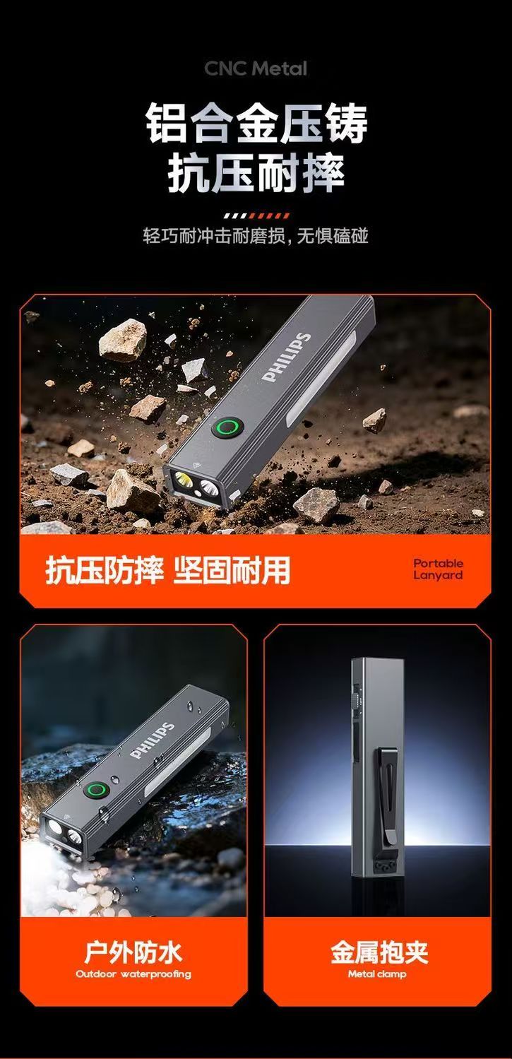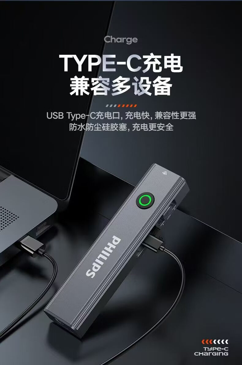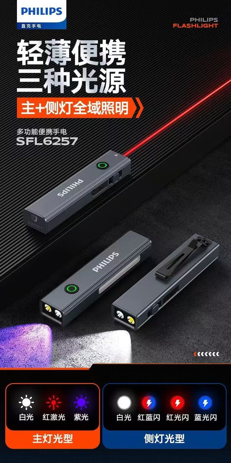 飞利浦(PHILIPS)多功能激光三光源强光手电筒紫防水户外专业级指星SFL6257 10W/800毫安/SFL6257