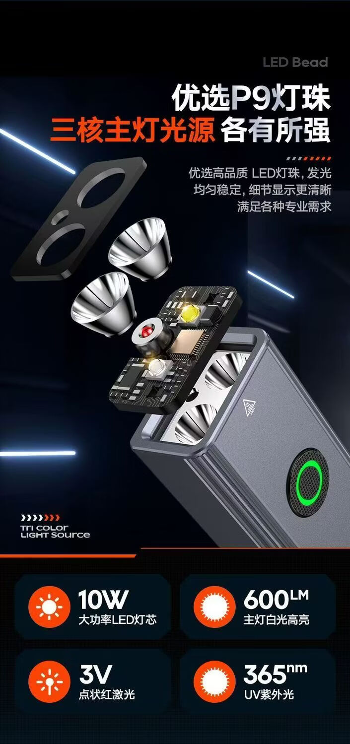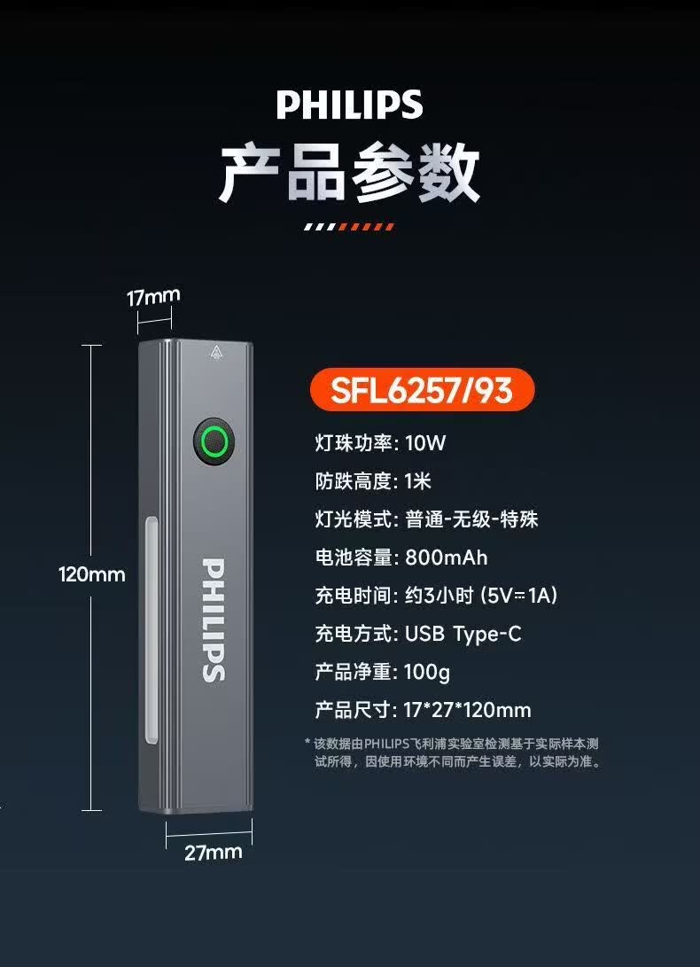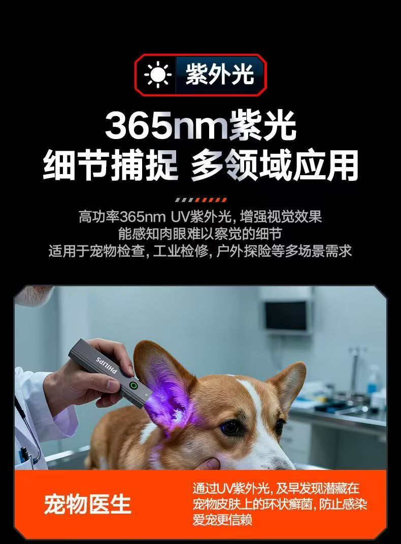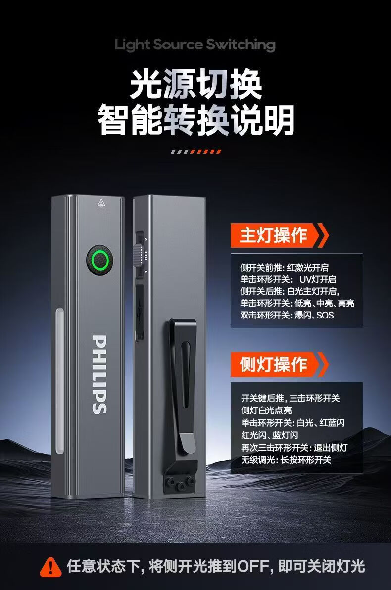 飞利浦(PHILIPS)多功能激光三光源强光手电筒紫防水户外专业级指星SFL6257 10W/800毫安/SFL6257