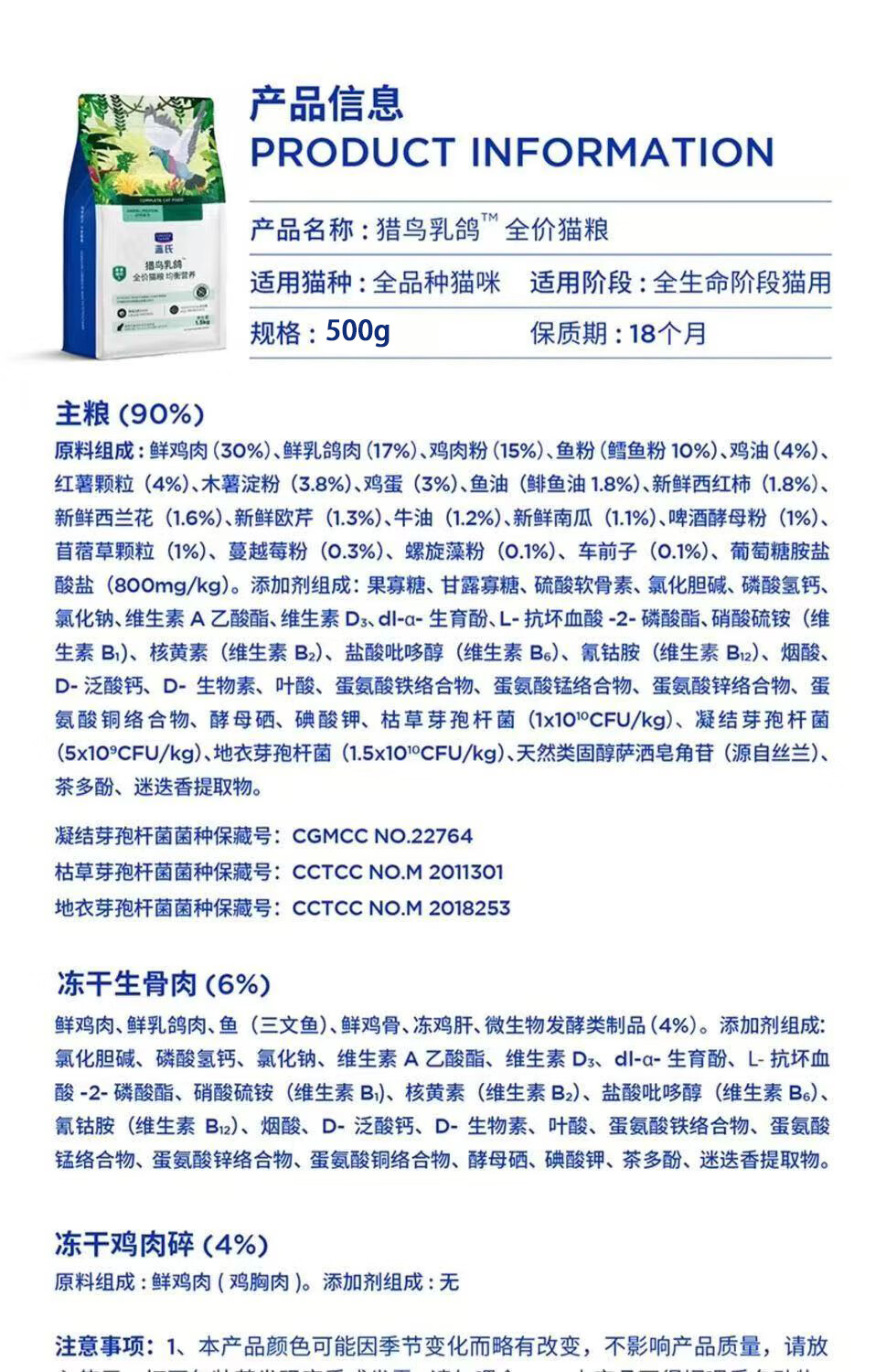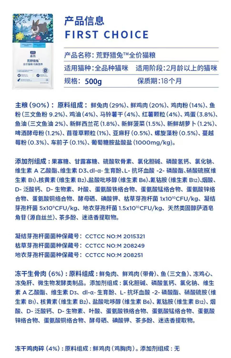 LEGENDSANDY荒野猎兔500g全价猫粮成猫幼猫生骨LEGENDS肉冻干粮 【临期清仓】