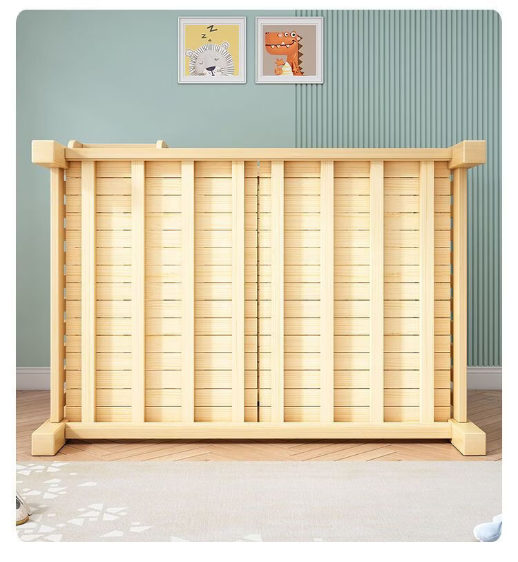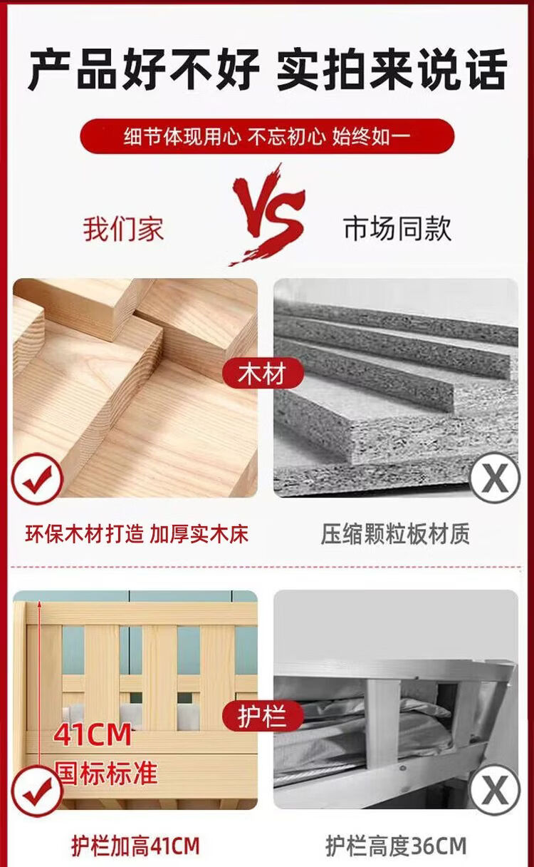 忆特佳榉木拼接床加宽床边小床带护栏宝宝婴儿床可调节带护栏实木单人床 三面护栏+8厘米空气纤维垫 200x100cm