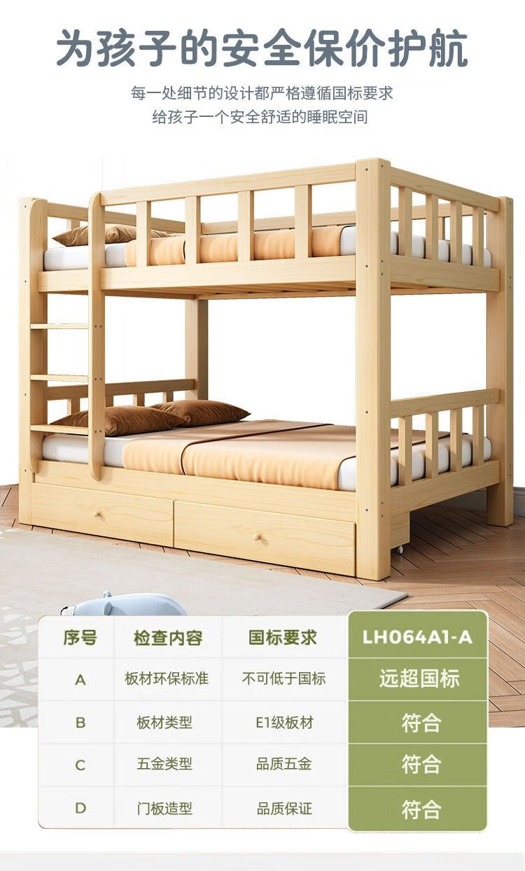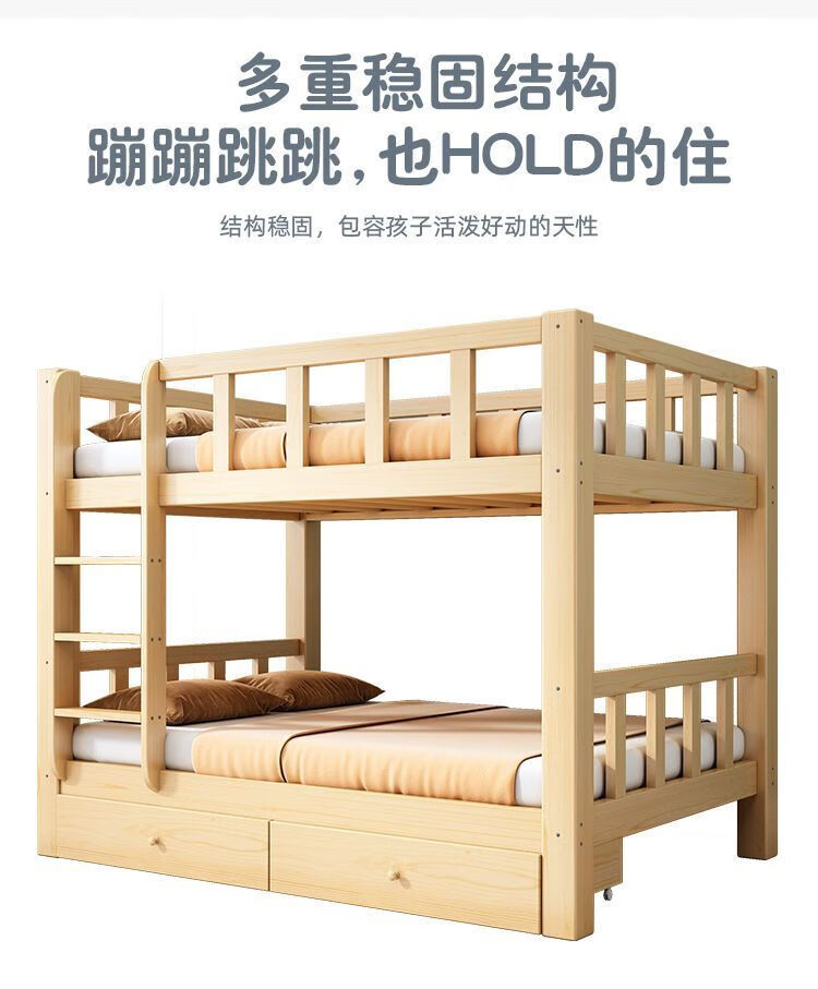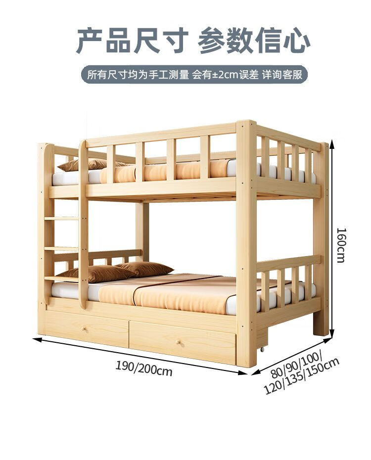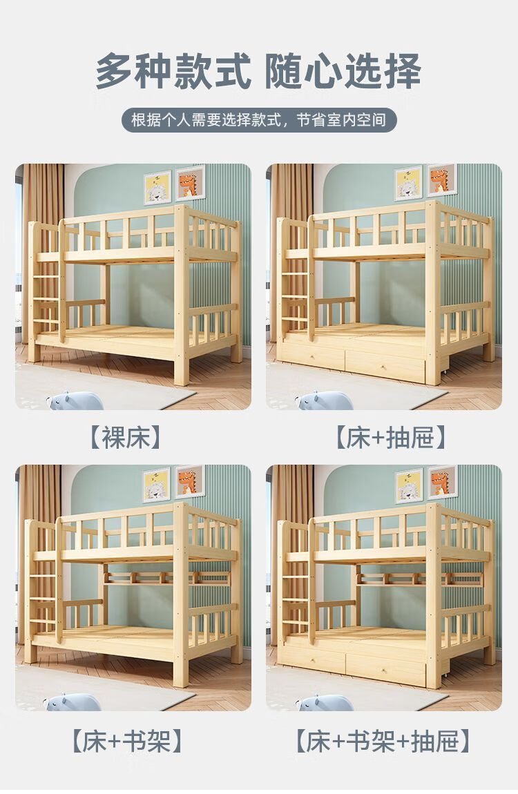 欣慕雅全实木床上下铺二层成人高低子母床宿舍多功能上下床双人床儿童床 【实木加厚】国标直梯上下床 800mm*1900mm