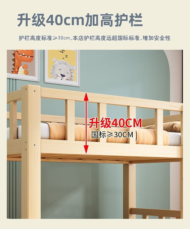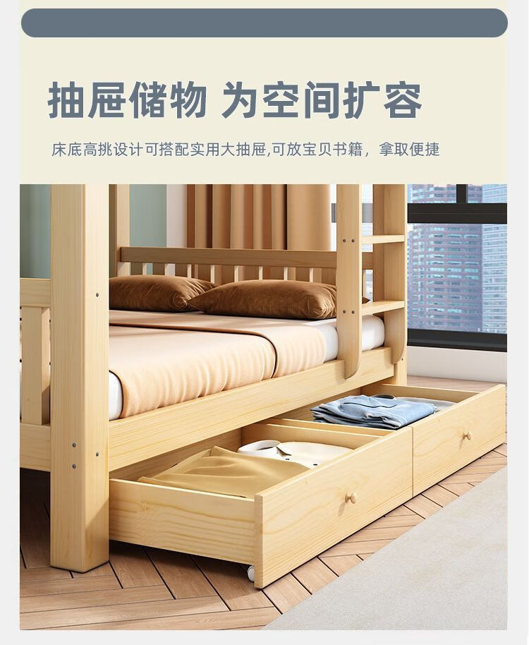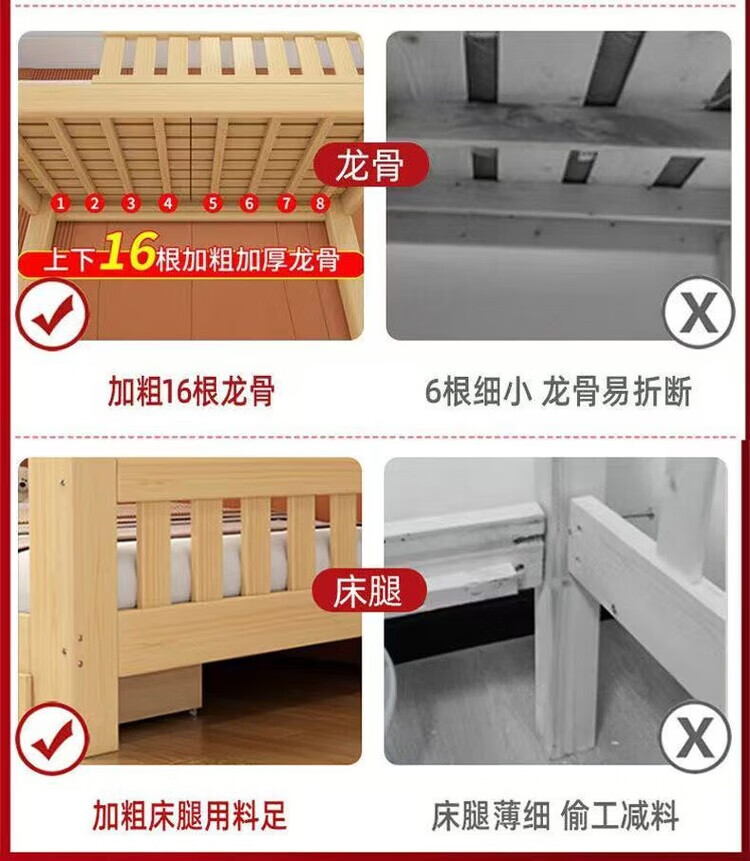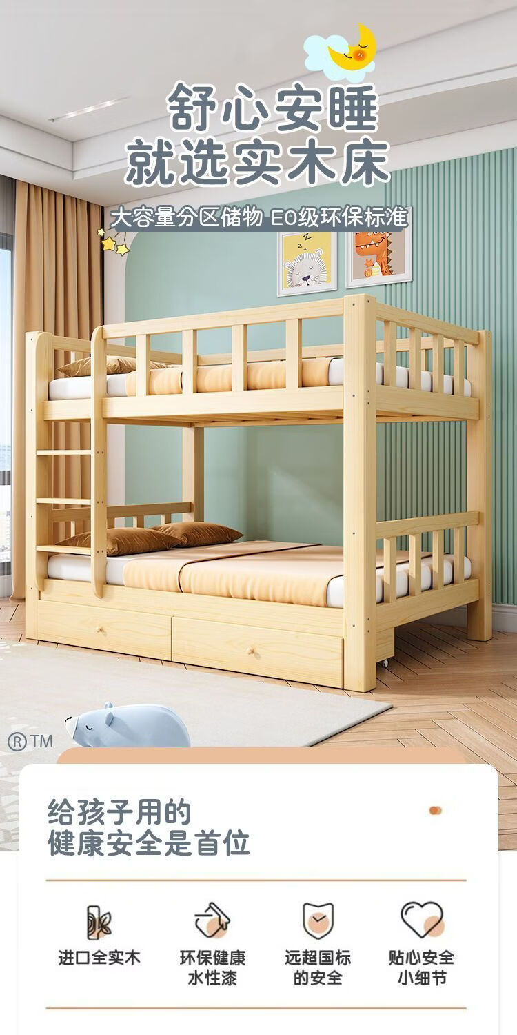 欣慕雅全实木床上下铺二层成人高低子母床宿舍多功能上下床双人床儿童床 【实木加厚】国标直梯上下床 800mm*1900mm