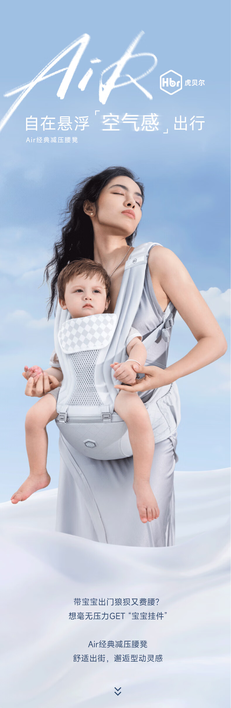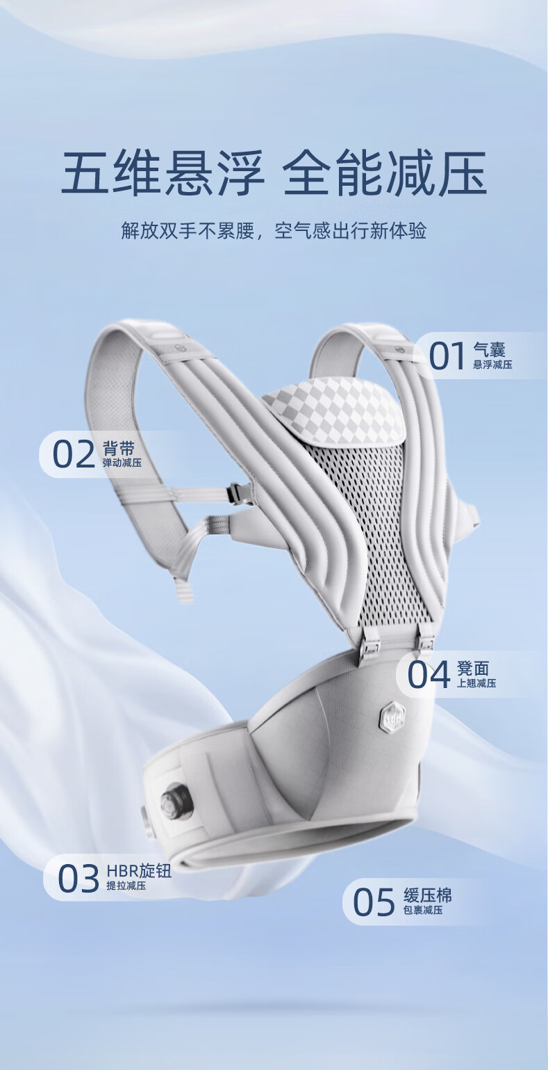 虎贝尔AIR经典减压悬浮腰凳婴儿背带宝宝轻便四季多功能抱娃神器减压 AIR经典减压腰凳-银雾白