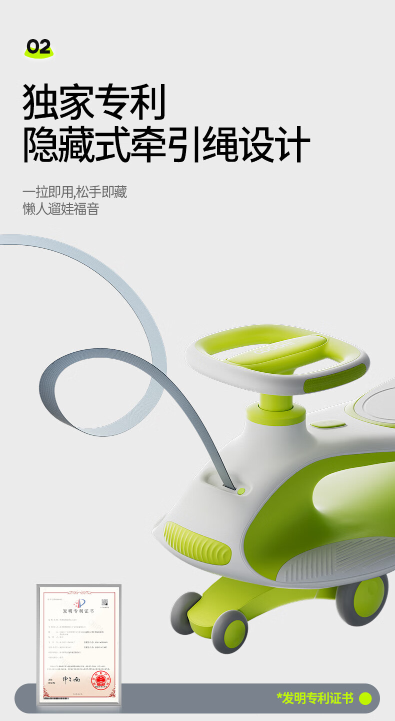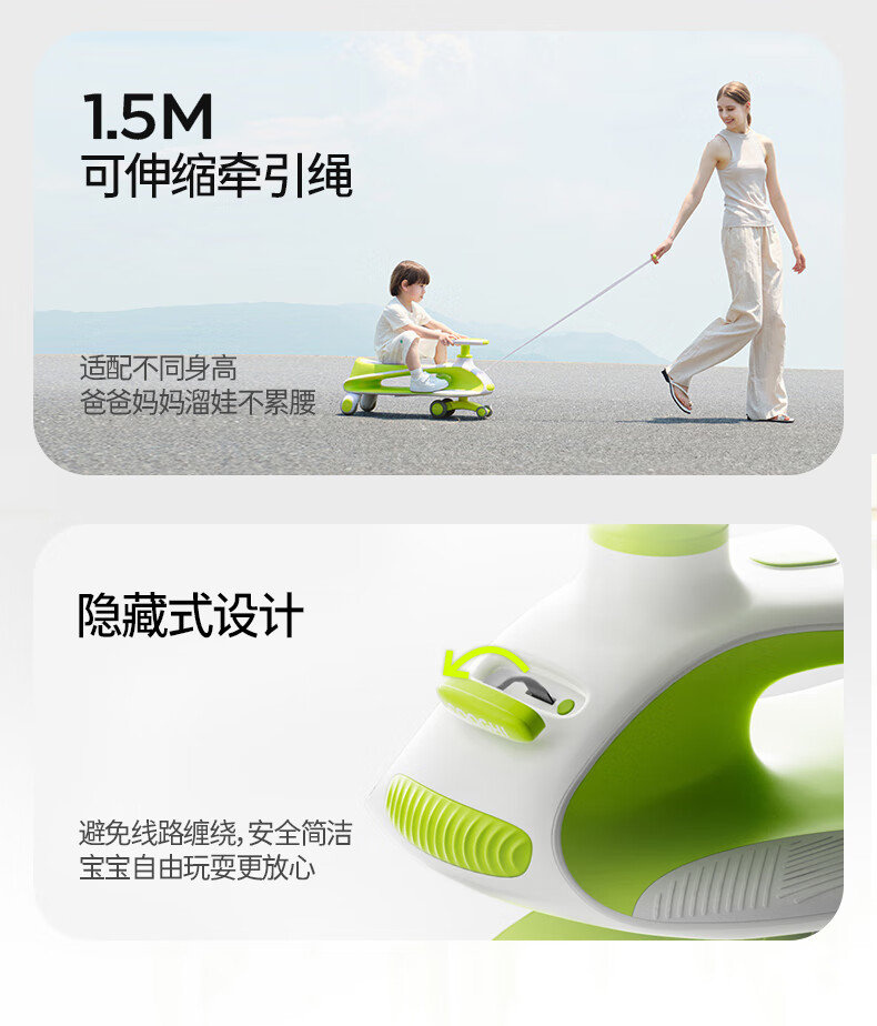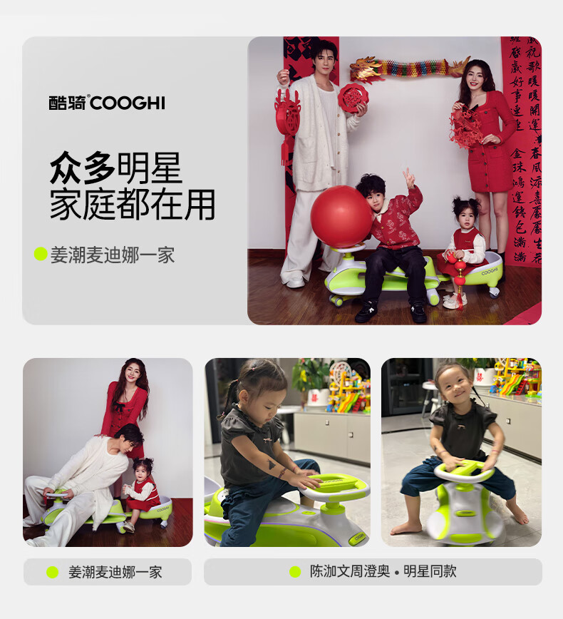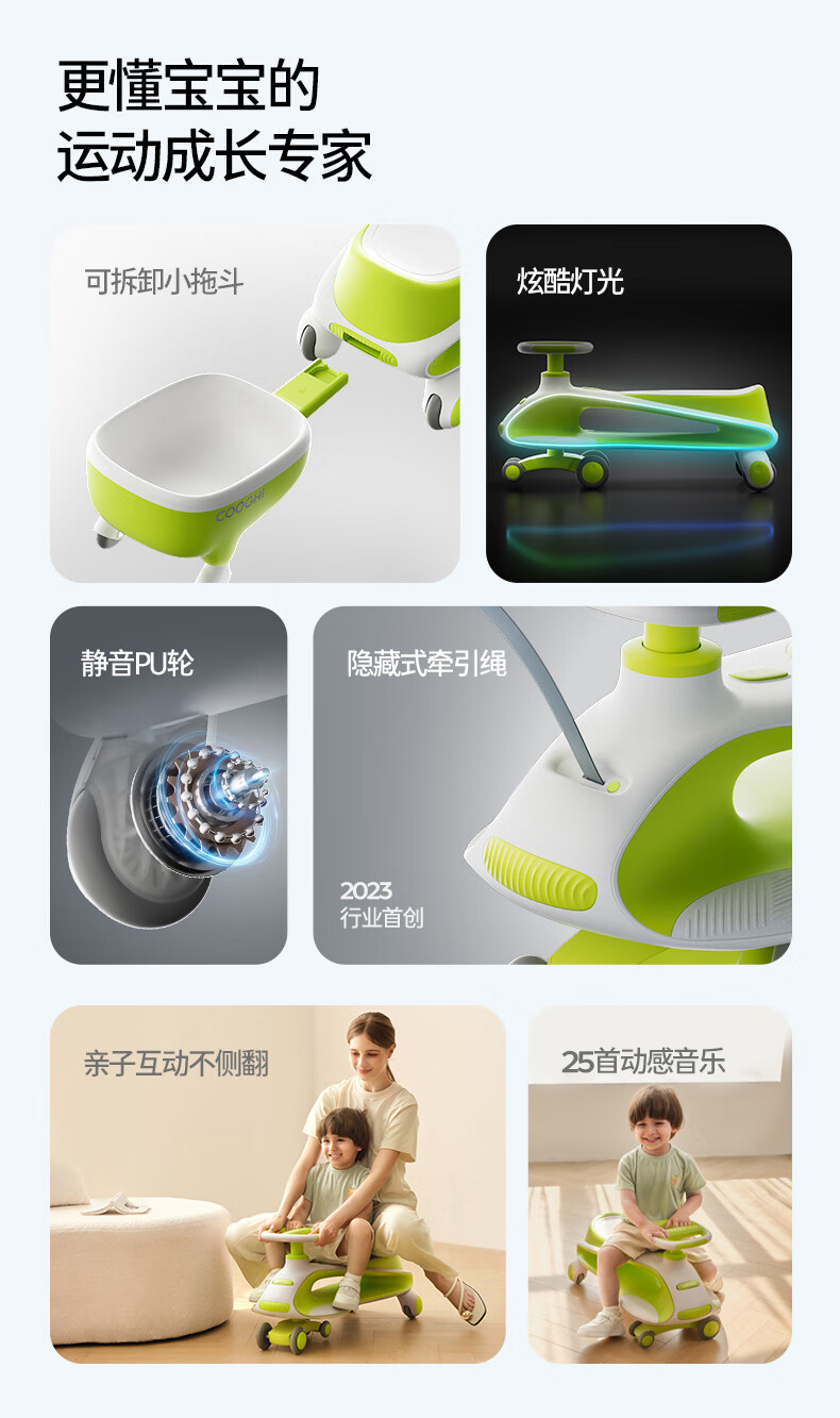酷骑儿童扭扭车溜溜车可坐大人静音耐磨万向轮周岁礼物1-8岁经典绿