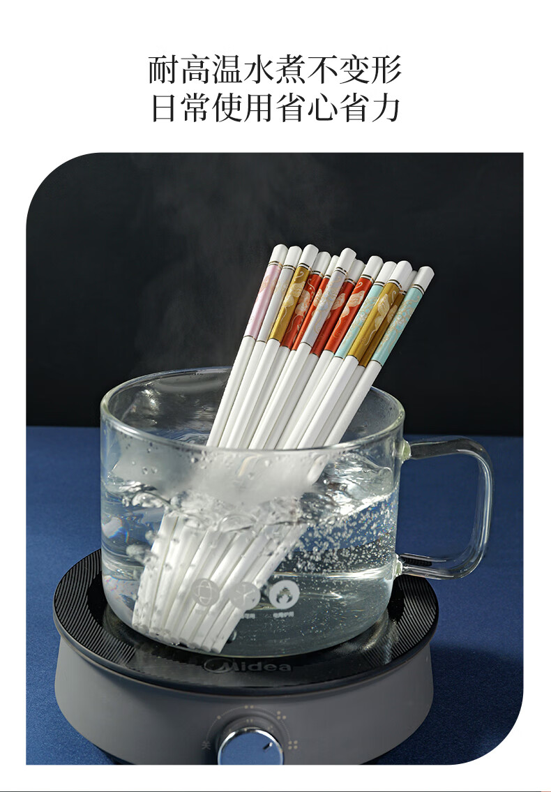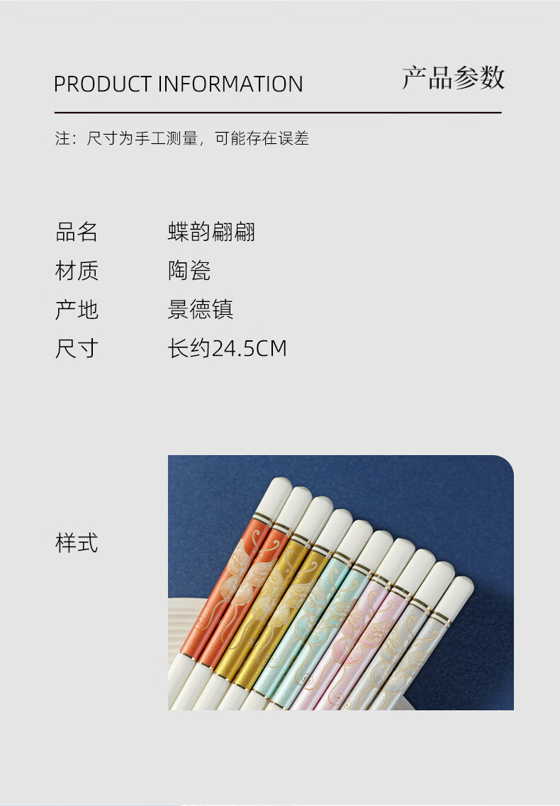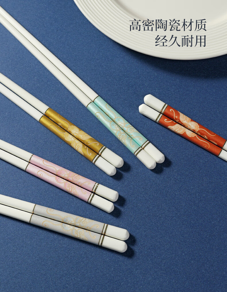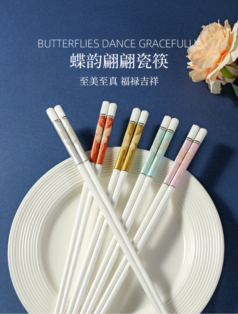 妙得景德镇高温陶瓷筷子高温不易发霉新款中式高质陶瓷筷乔迁 蝶韵翩翩-五色混搭筷子10双(送饭勺)【礼盒装】