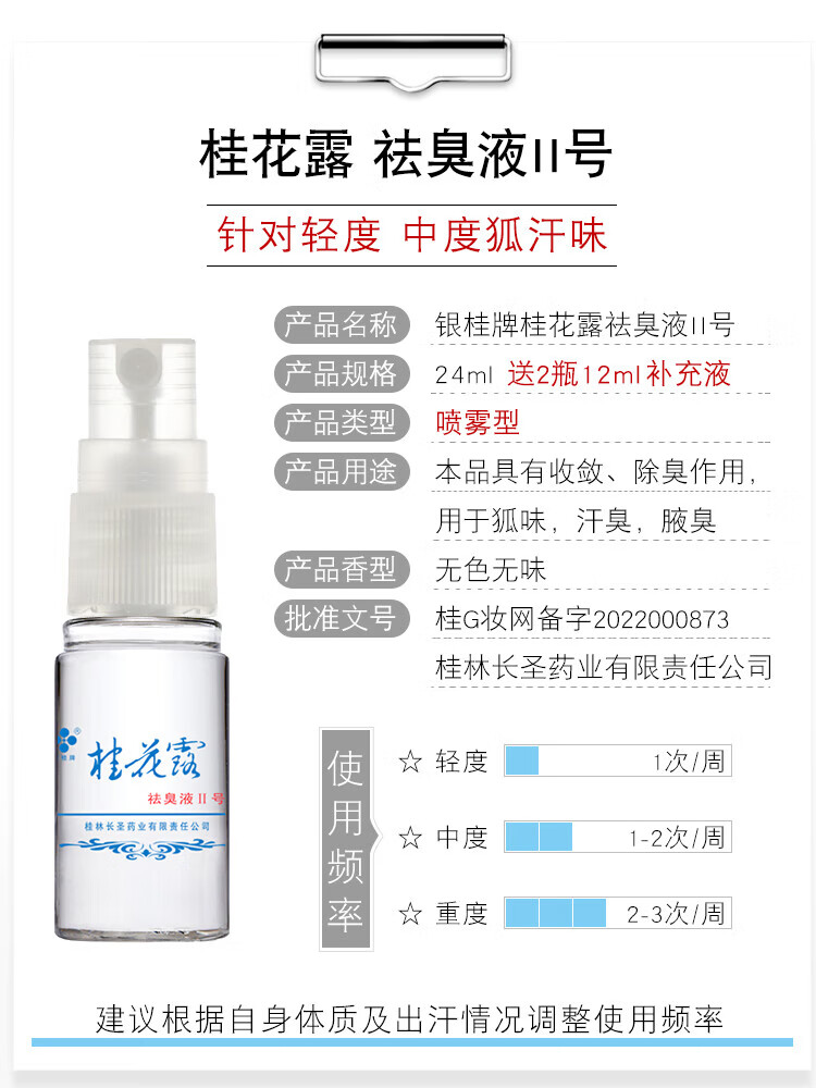 银桂牌桂花露祛臭液 狐臭喷雾止汗去味 夏日净味清爽喷雾祛异味腋臭汗臭 【无色无味】24ml*1瓶【送2瓶12ml补充液】