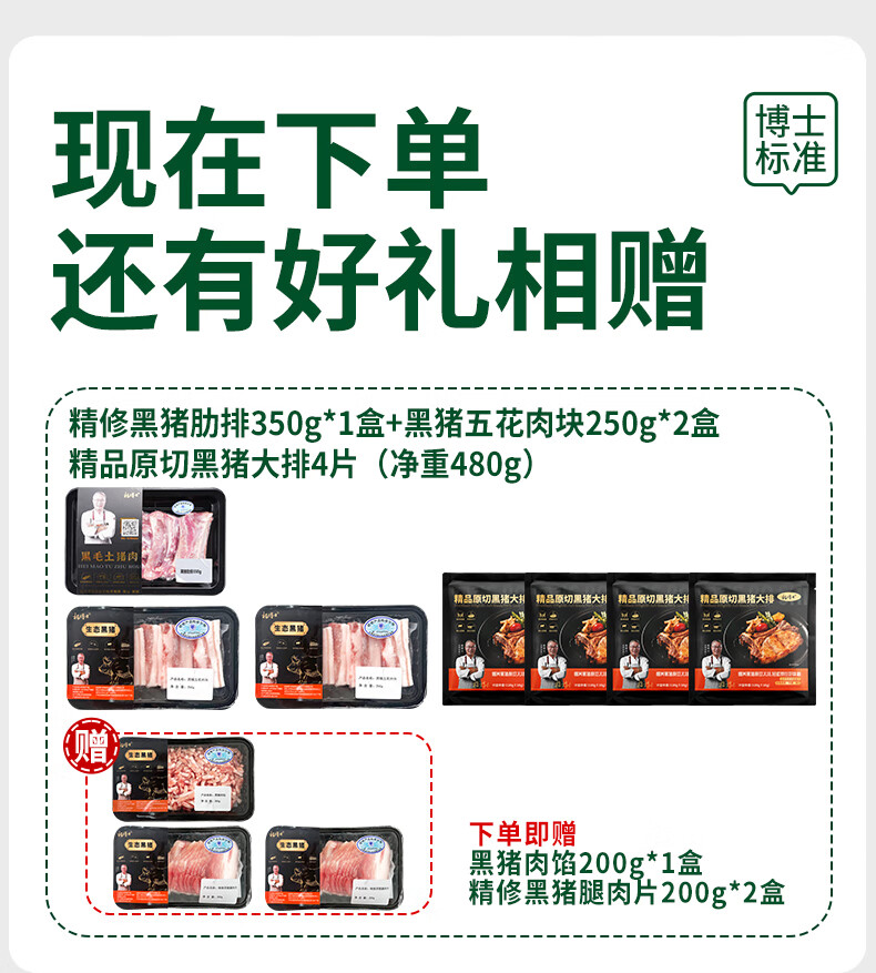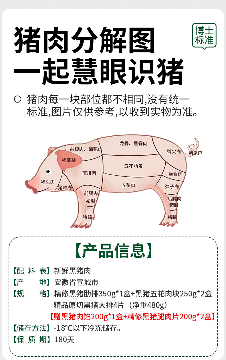 杨博士生鲜猪肉皖南散养黑毛土猪肉五花肉+腿肉+肋排【全猪宴】烤肉食材 【黑猪肉组合】肋排+五花肉+腿肉