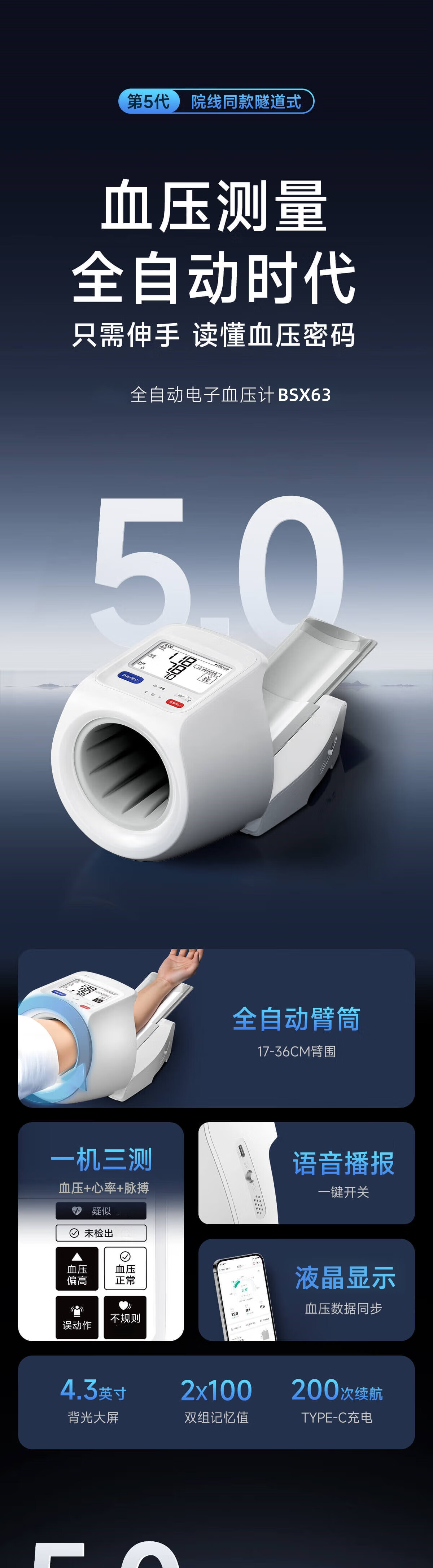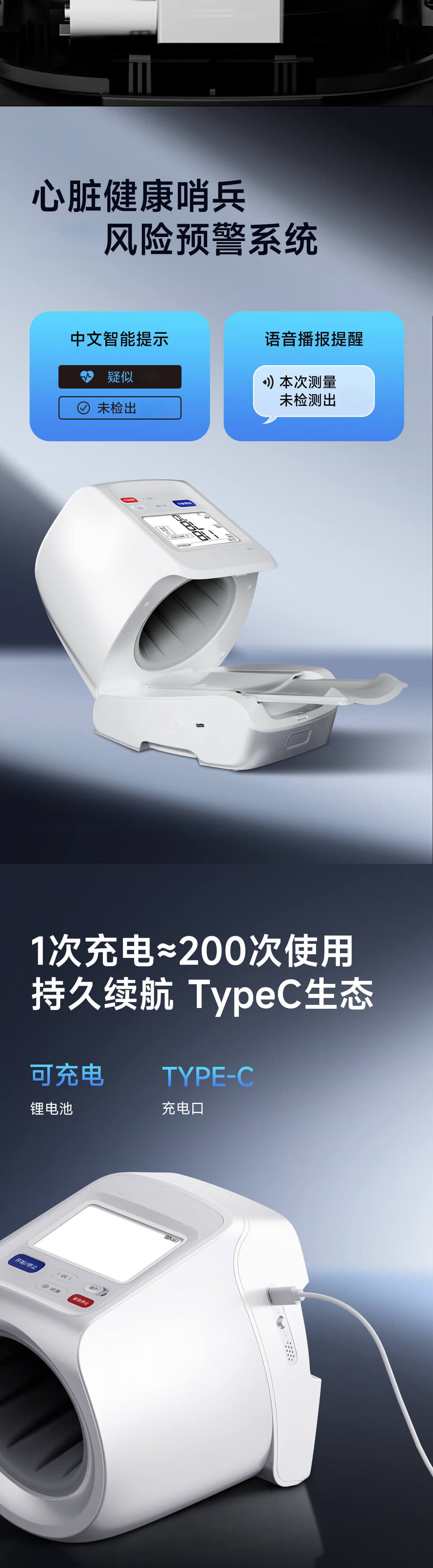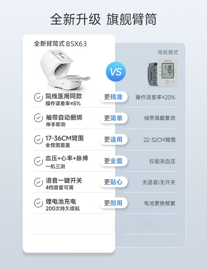 鱼跃臂筒式血压计医用级精准进口原装电子血压计医用级高精准家用老人 臂筒式医用级+150次测量续航+双泵加压+语音播报