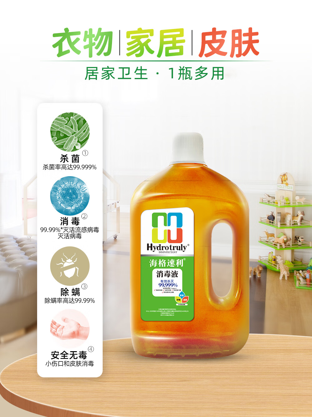 海格速利消毒液消毒水衣物除菌液洗衣服地板杀菌除螨消毒喷雾片非84次氯酸 500ml*1瓶【母婴推荐】