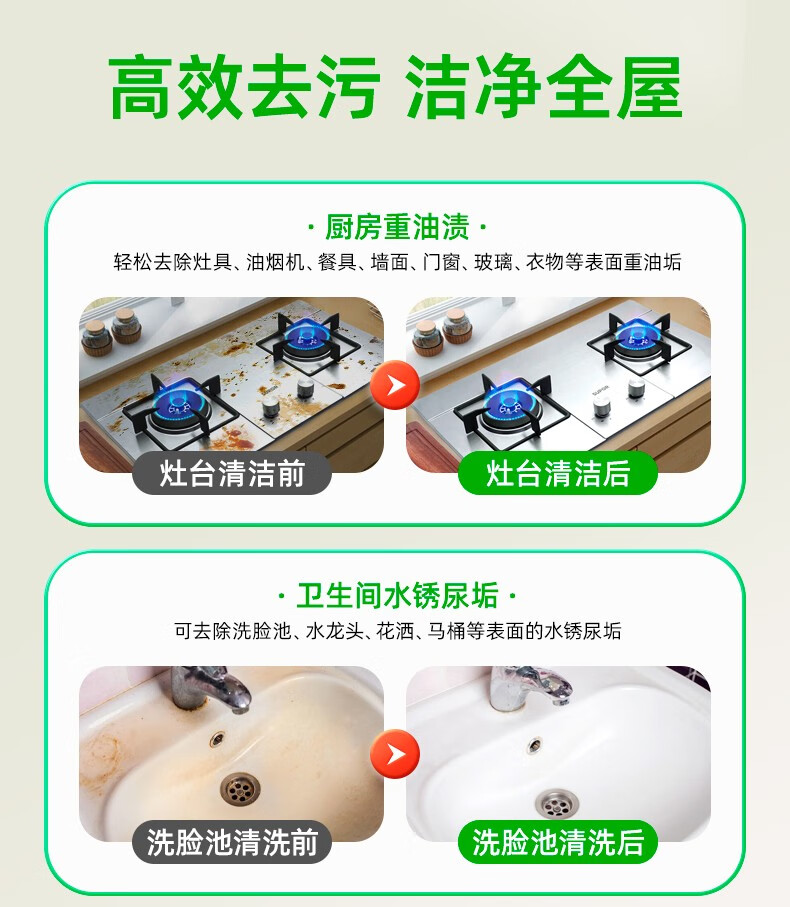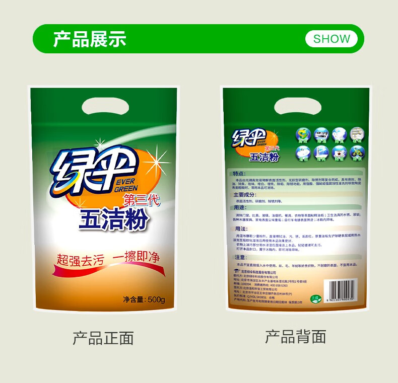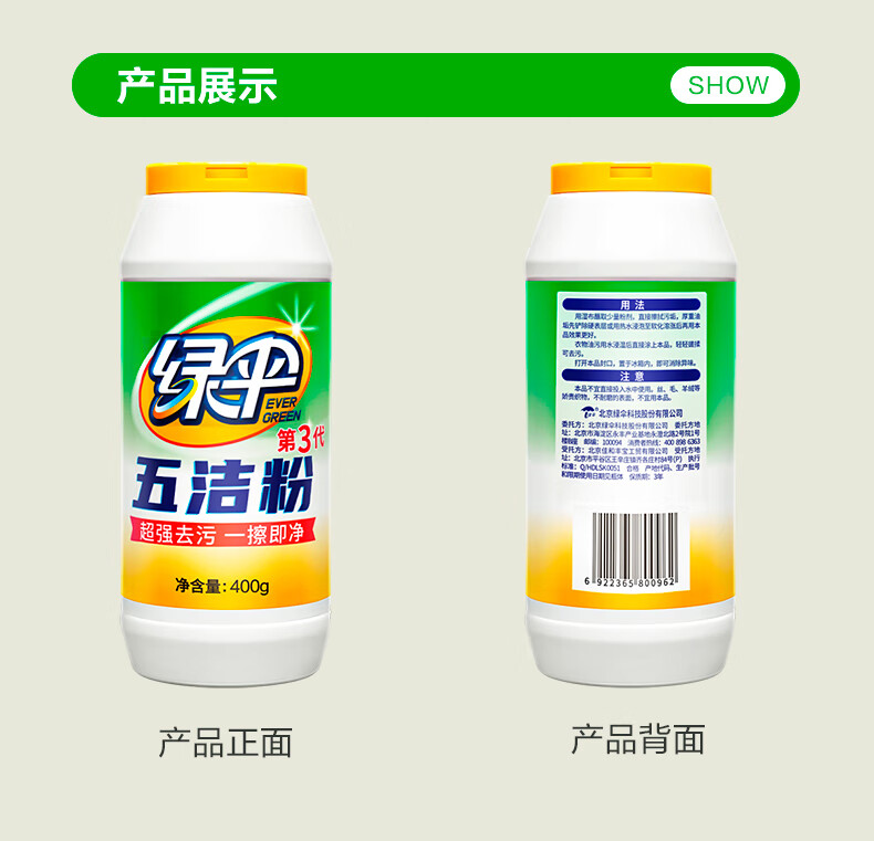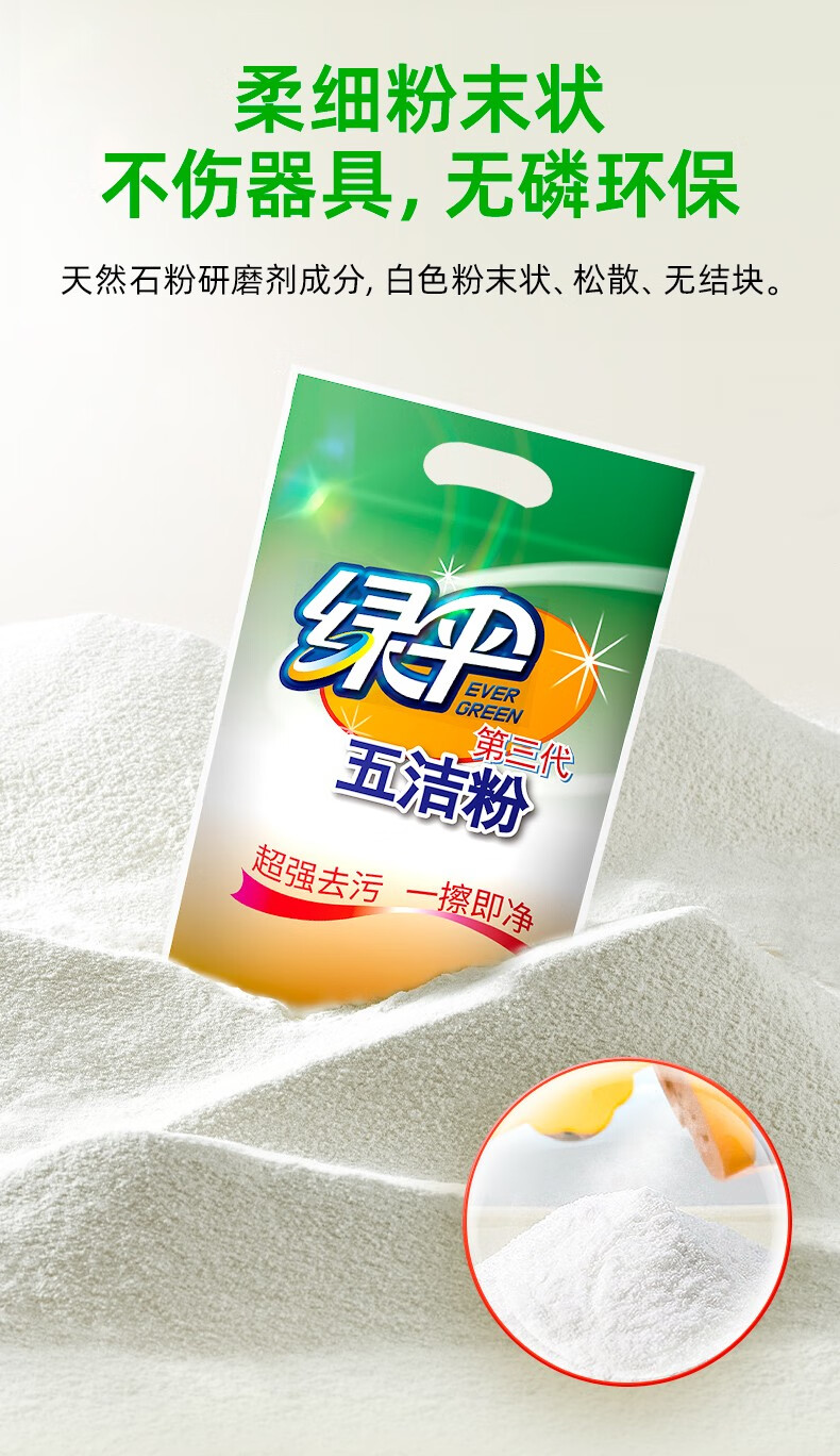 绿伞五洁粉 除锈锅底黑垢 厨房油污抛光剂 不锈钢水槽清洁剂 去污粉 【家庭装】400g*4瓶 | 增白增亮