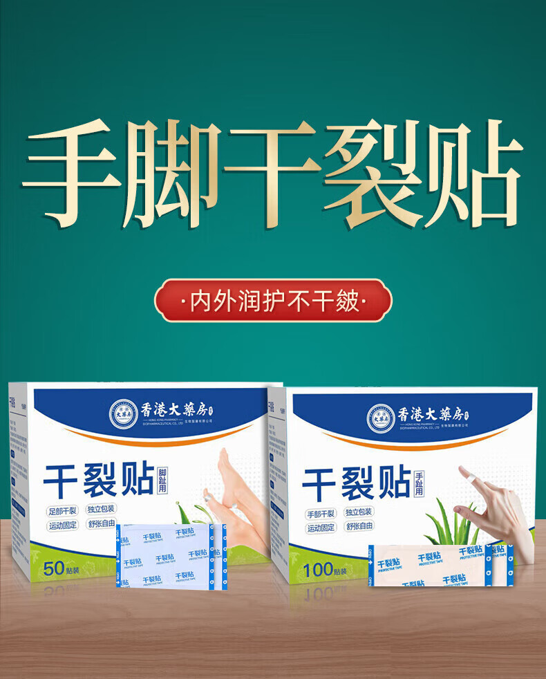 【官方旗舰】香港大药房手足干裂贴皲裂贴凡士林手指开裂口脚后跟龟皴裂透气胶 凡士林足部贴/50贴 5盒装 超值屯货装