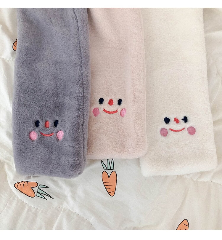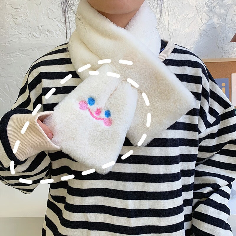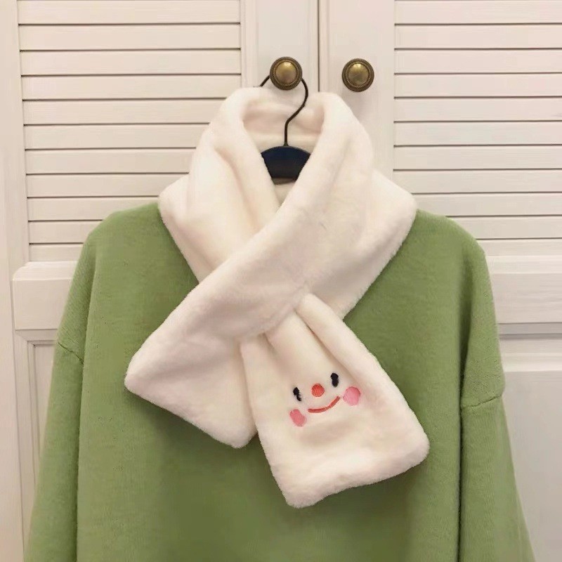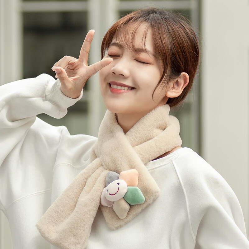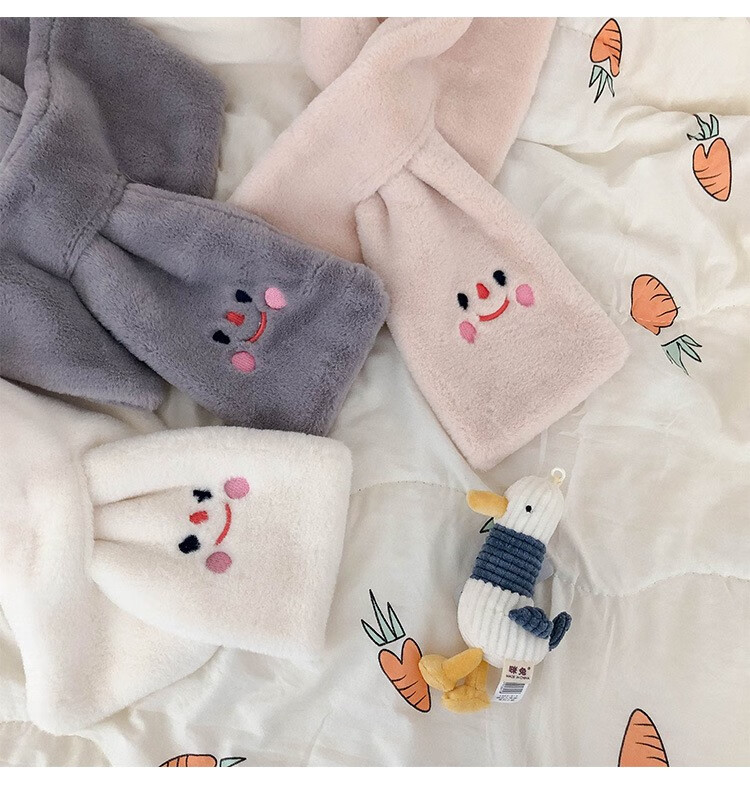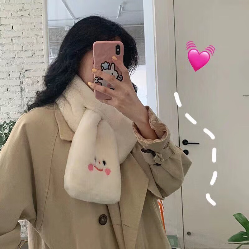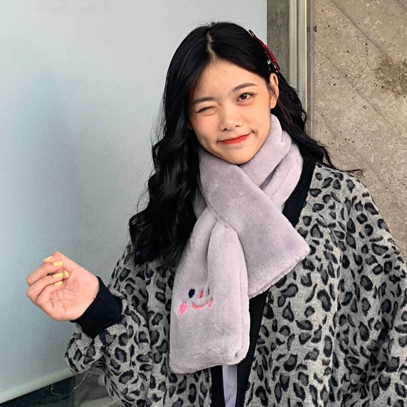 淘有型毛绒围巾女冬季百搭笑脸围脖少女学生穿搭可爱加厚保暖毛领子 灰色
