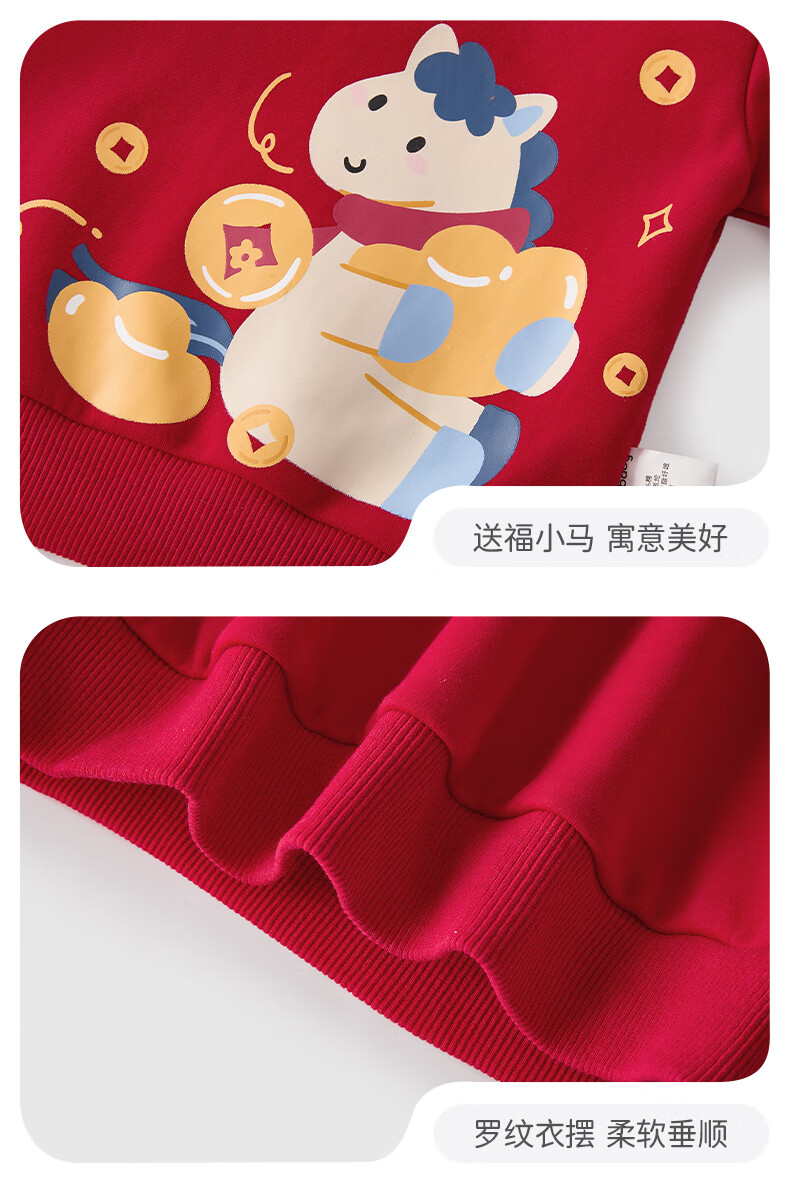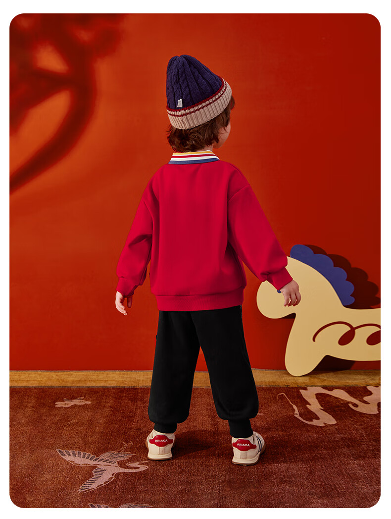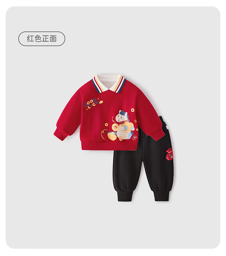 JELLYBABY【立体钱袋帅气加绒两件套】25新品冬款男童卫衣+裤子中童 红色 100
