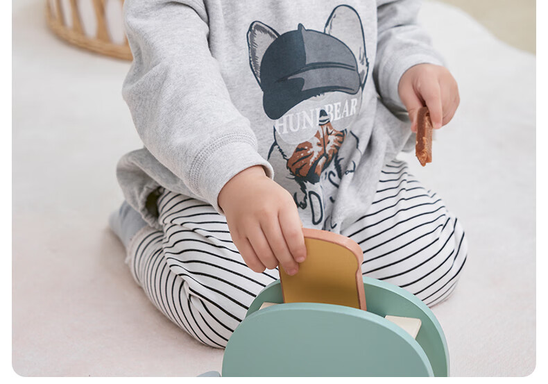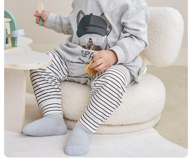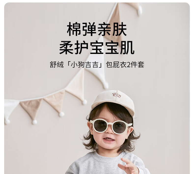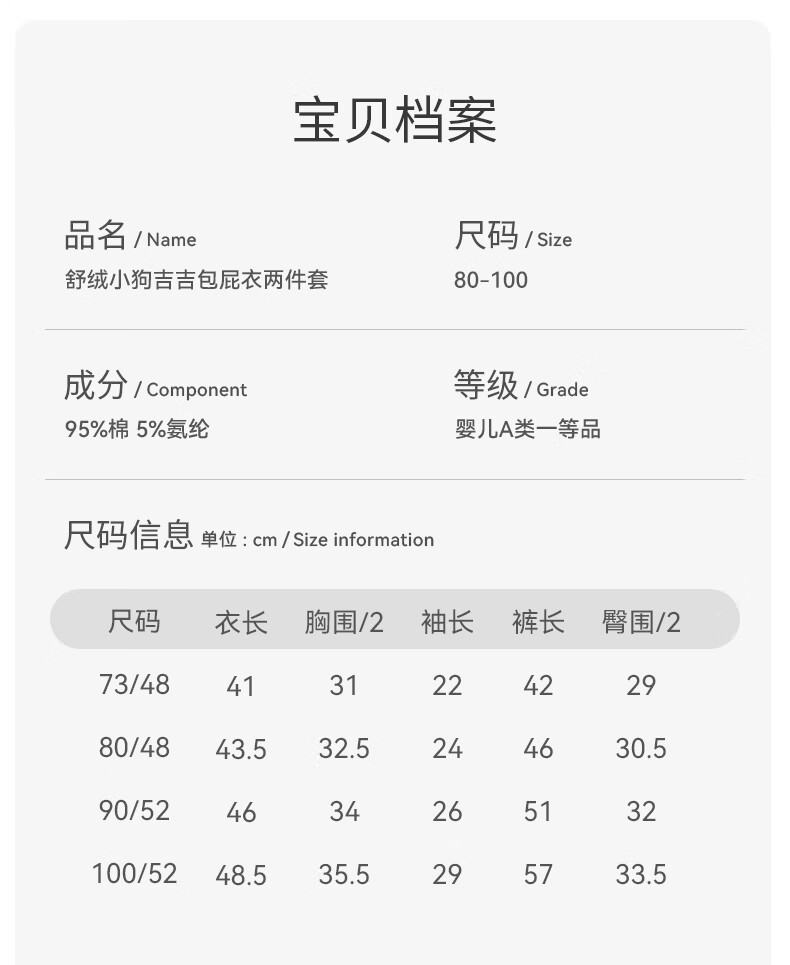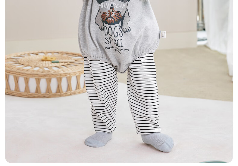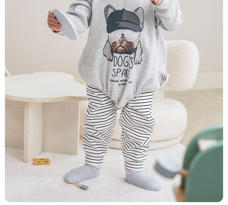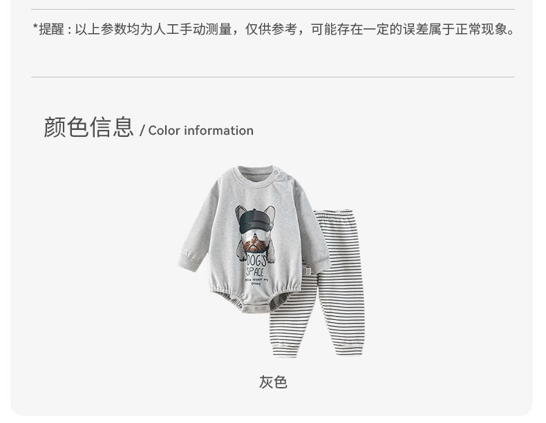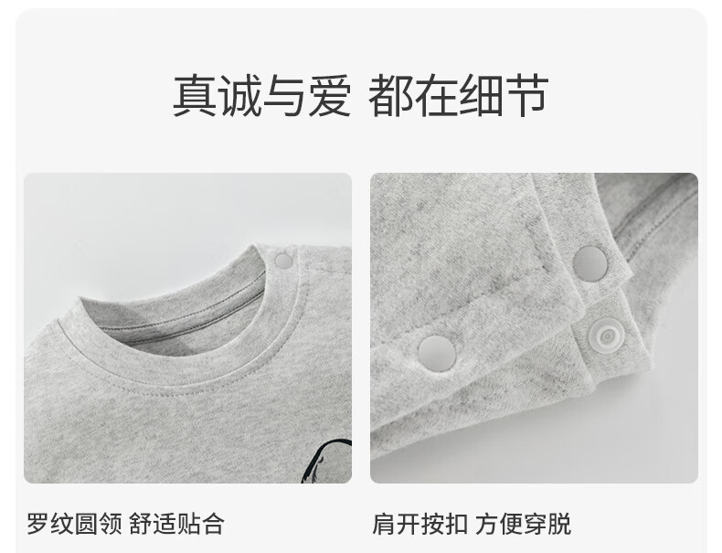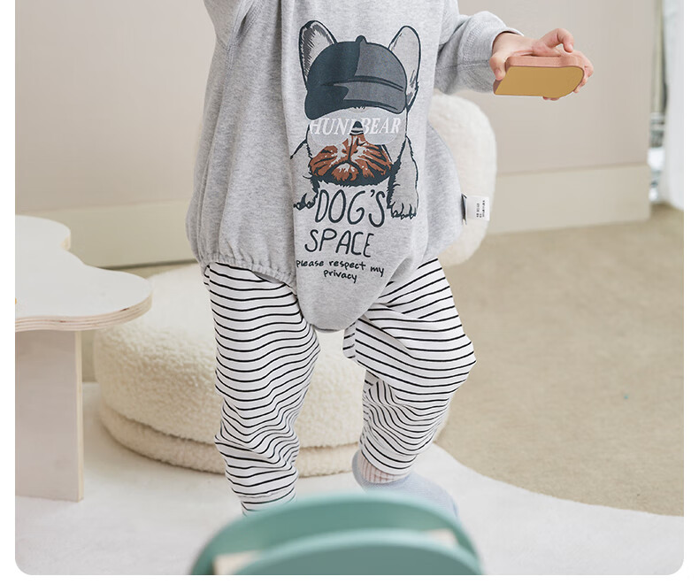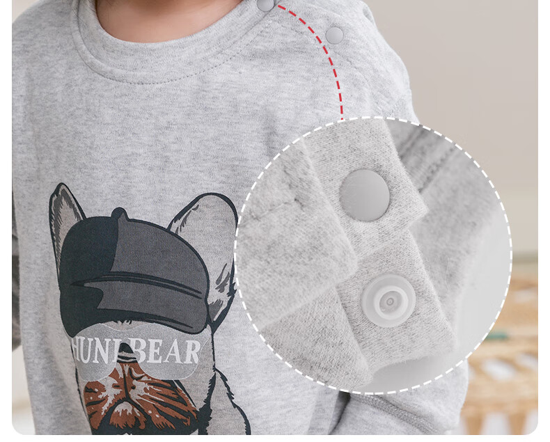 欢喜小熊 婴儿套装春秋无骨包屁衣两件套秋衣外出秋季洋气分体宝宝衣服 小狗吉吉-灰色 80 (建议10-18月身高73-80cm)