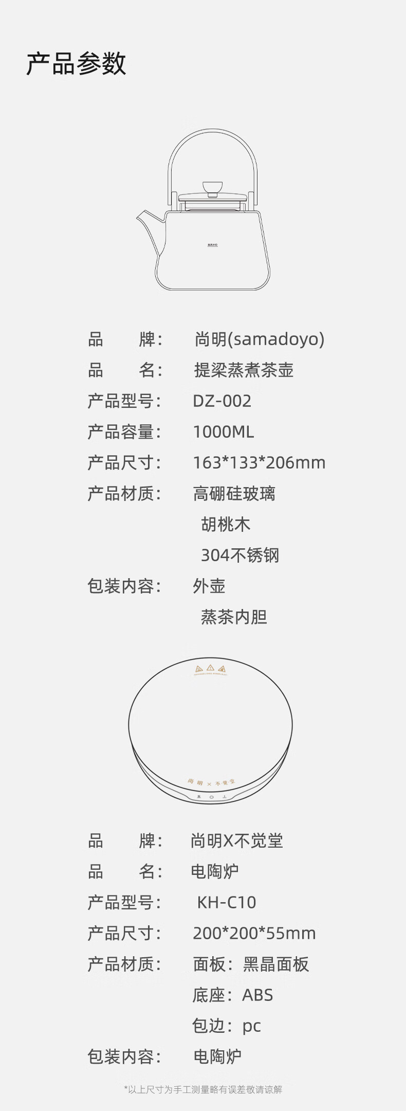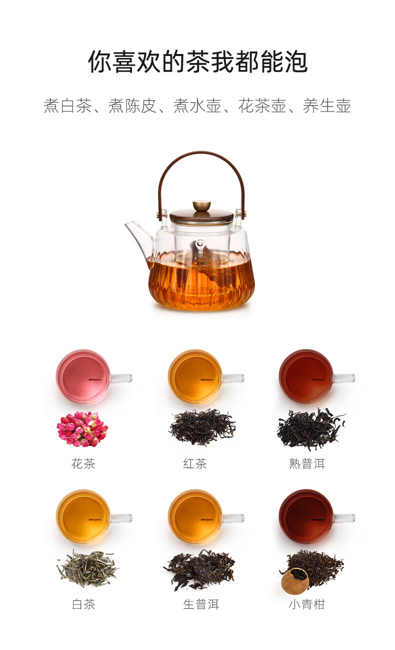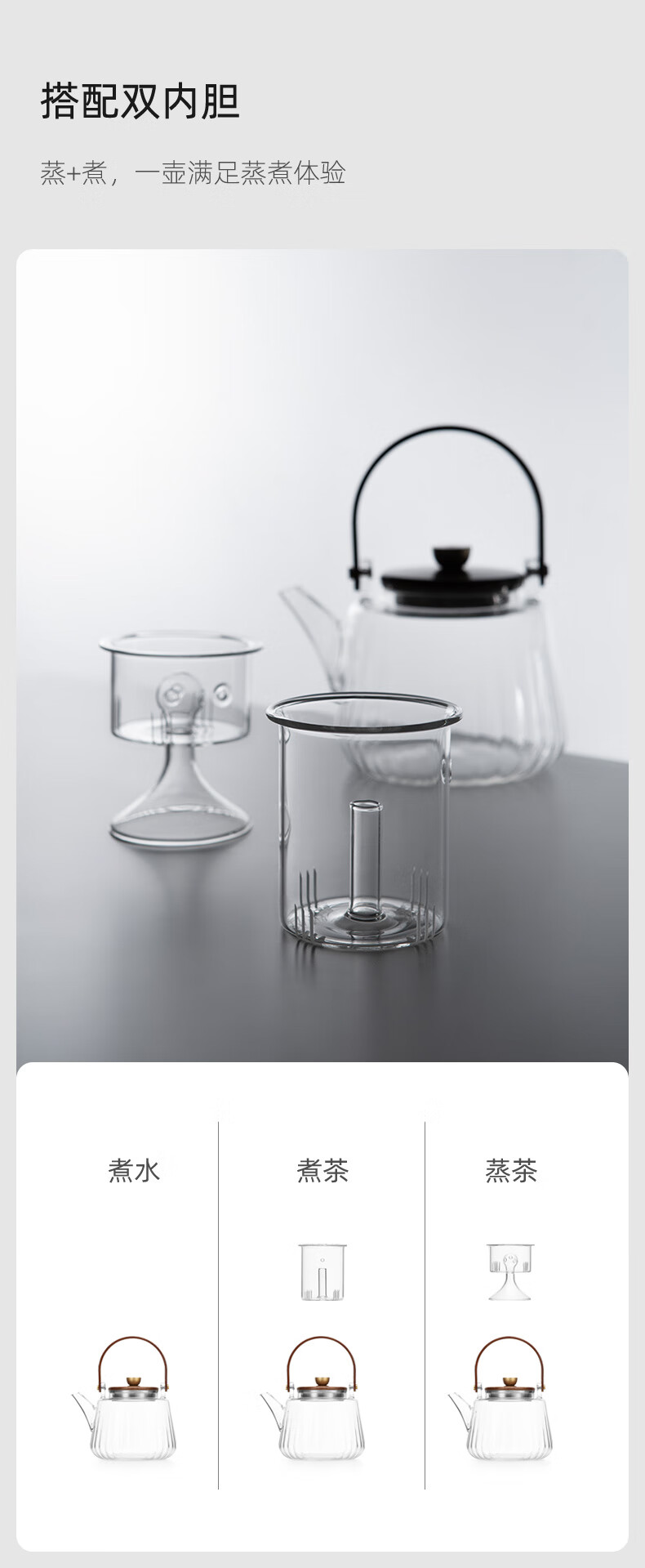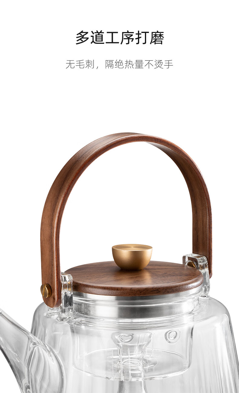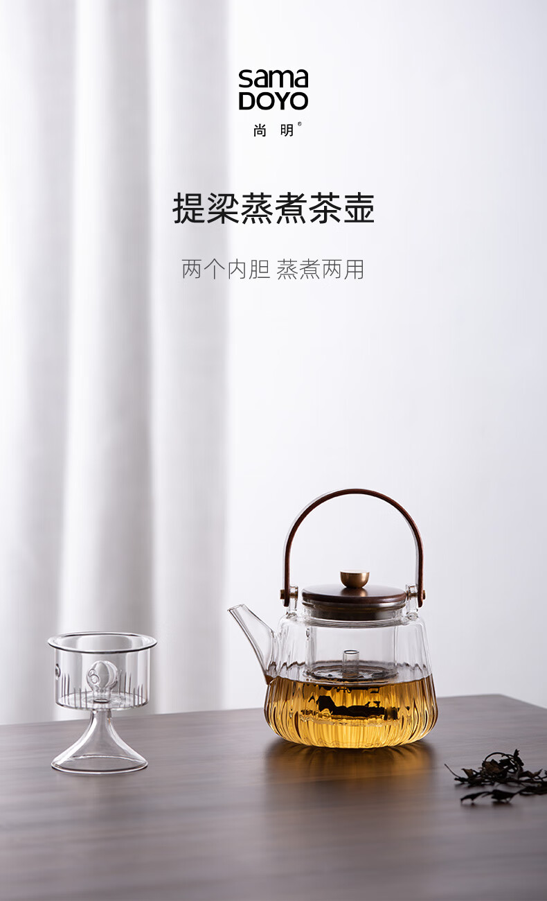 尚明(SAMADOYO) 耐热玻璃家用蒸煮一体茶壶养生带电陶炉煮茶白茶提梁壶烧水茶壶 蒸煮两用壶 800ml