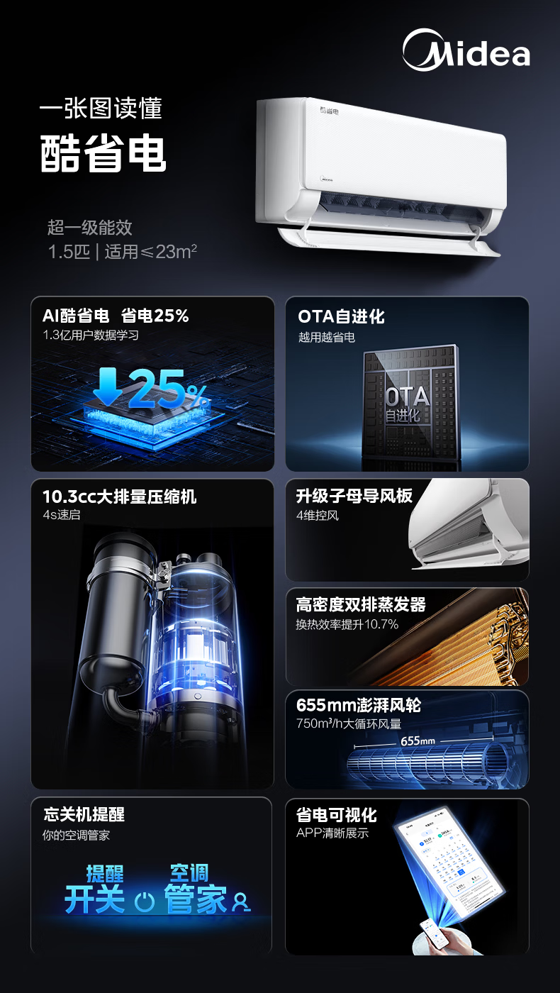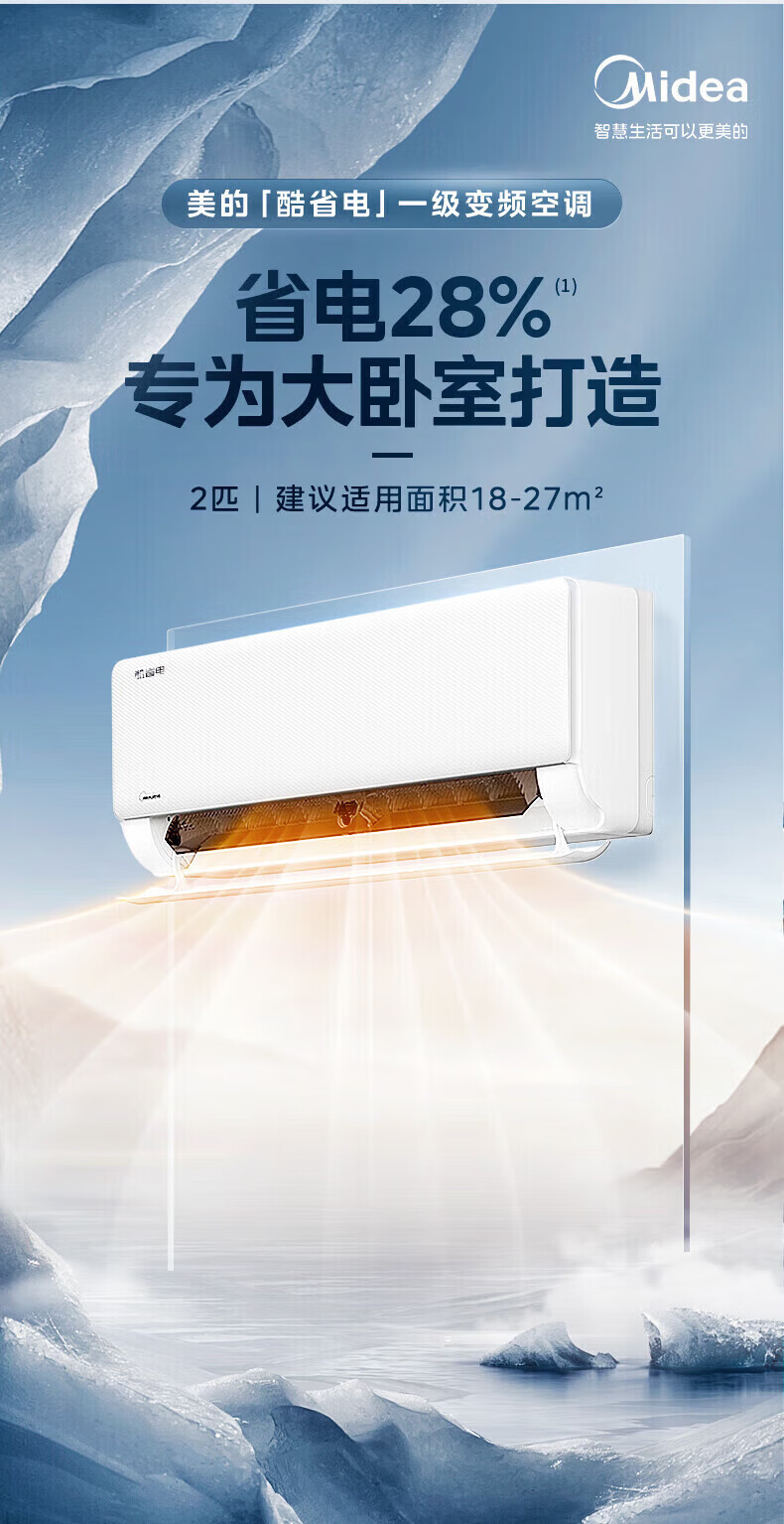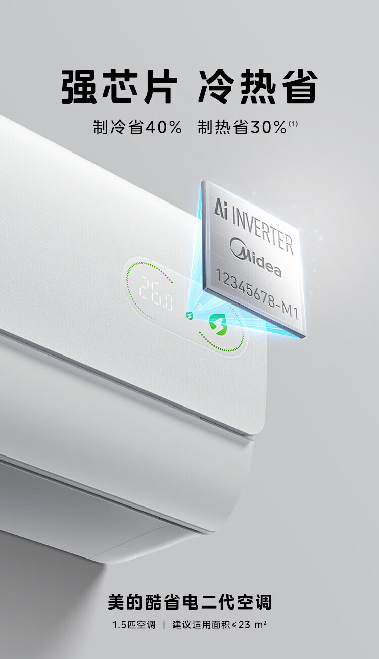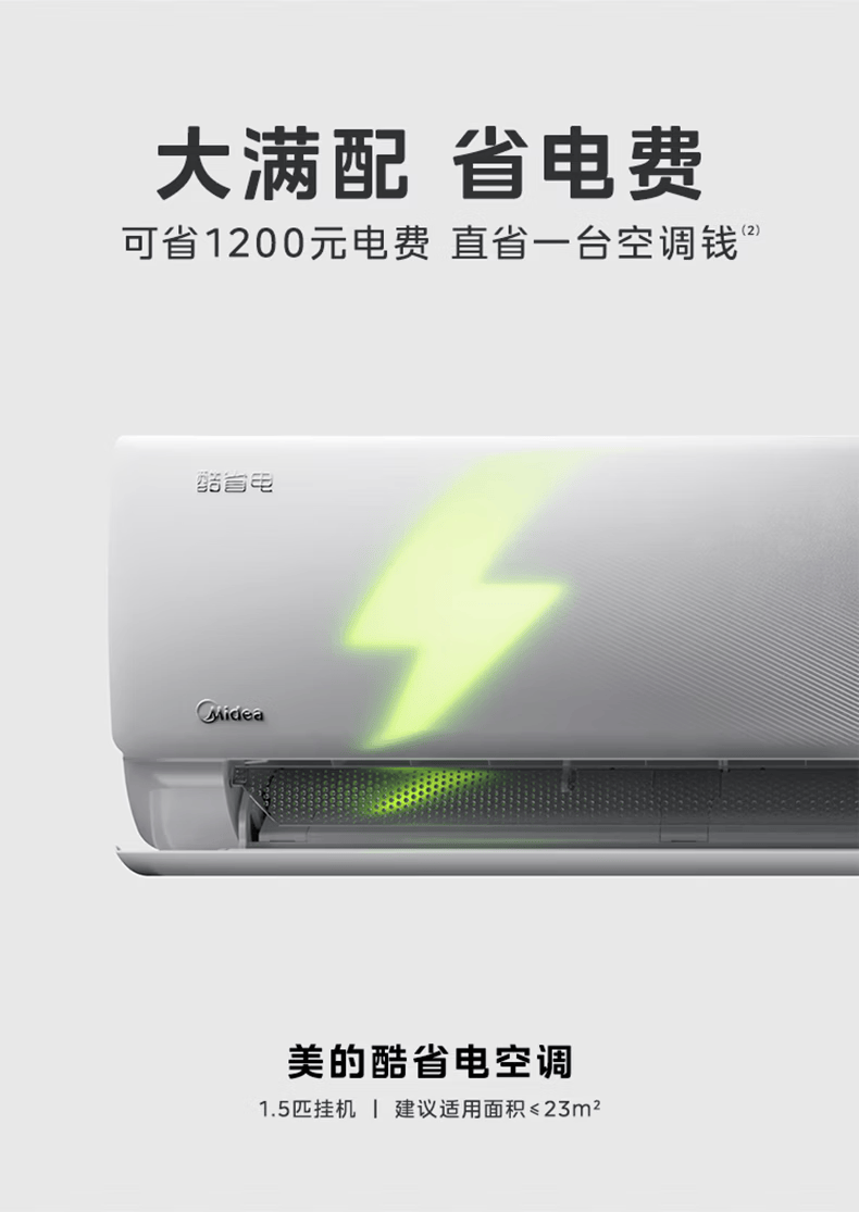 美的空调挂机 新品酷省电二代 大1.5匹新一级能效变频节能 除湿壁挂式 一键防直吹 双排纯铜管补贴 酷省电二代 大1匹 【纯铜管-节能40%】一级能效