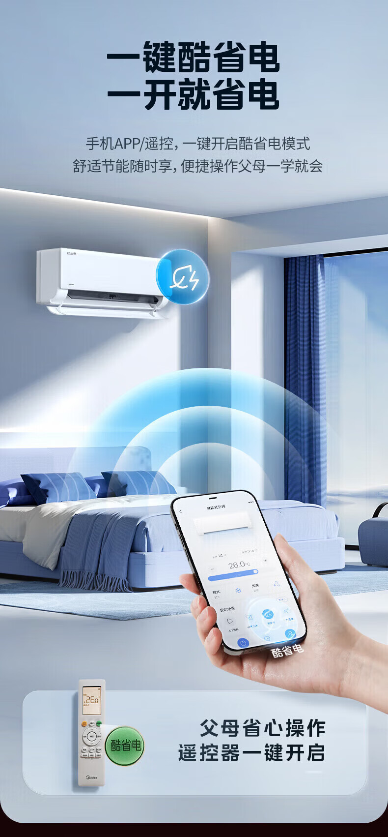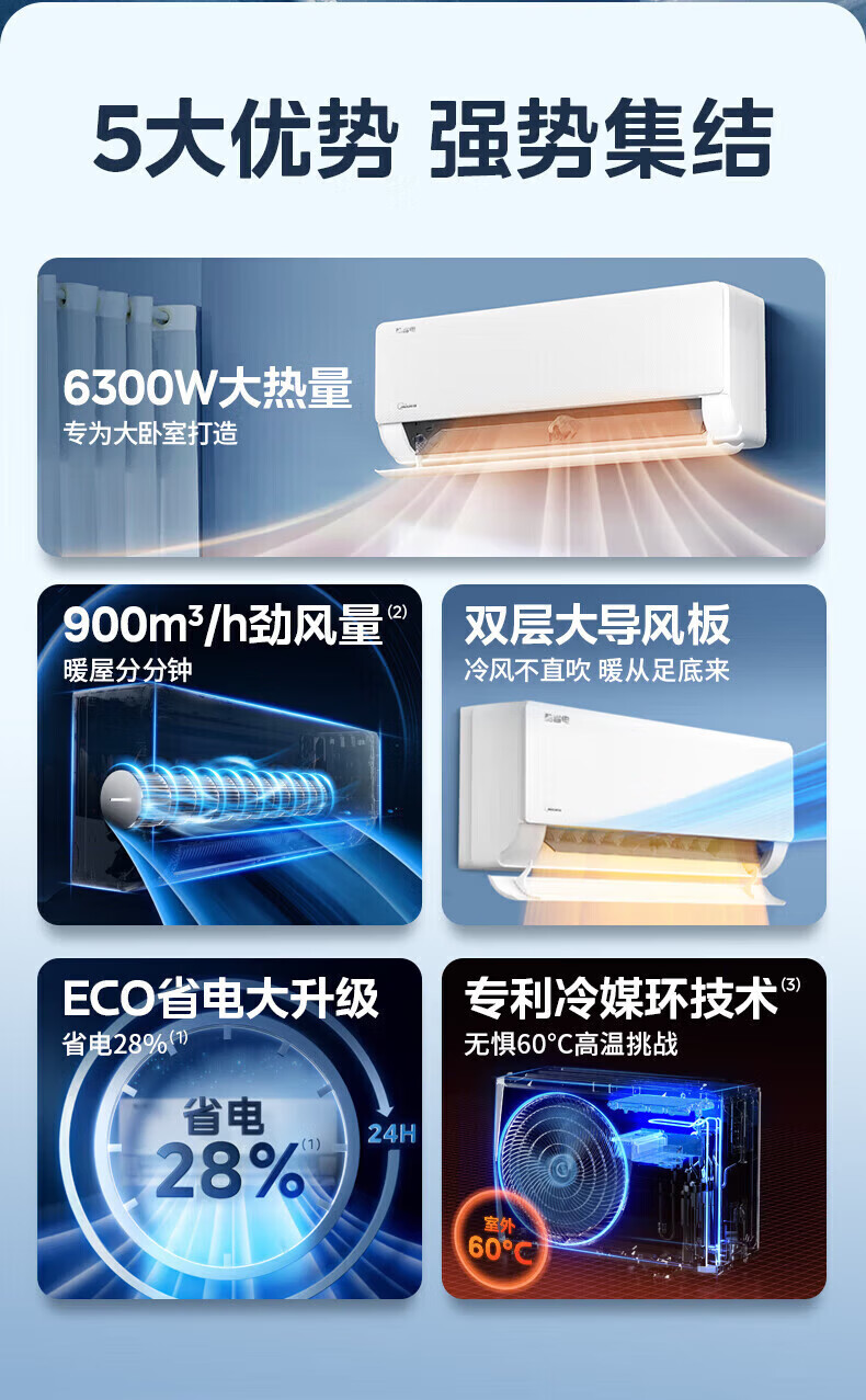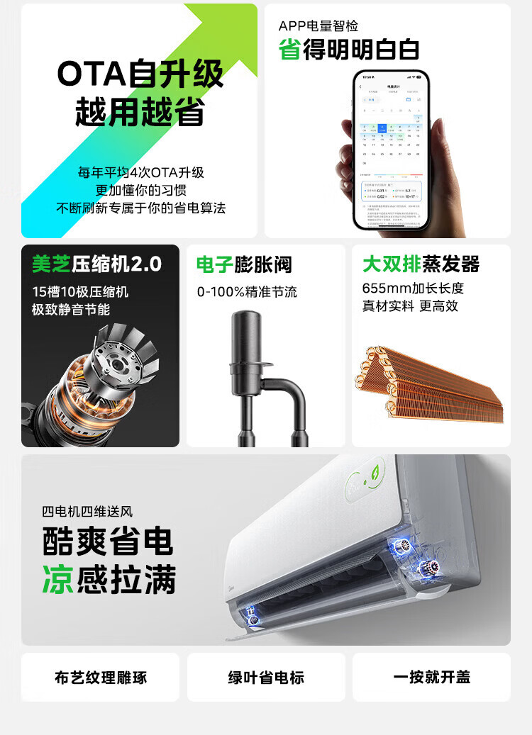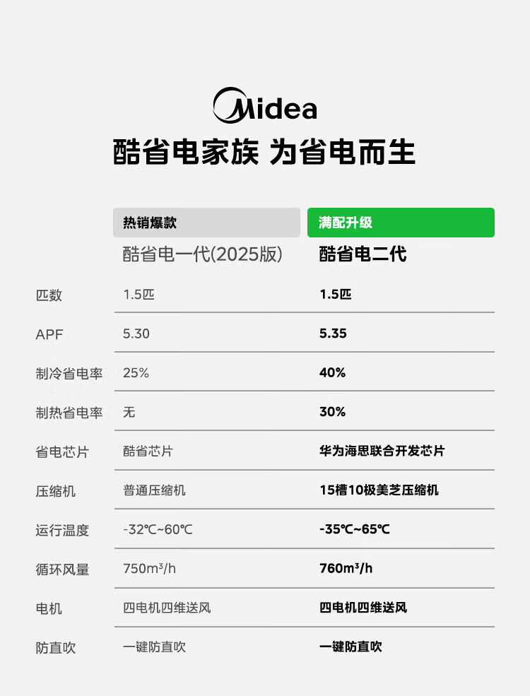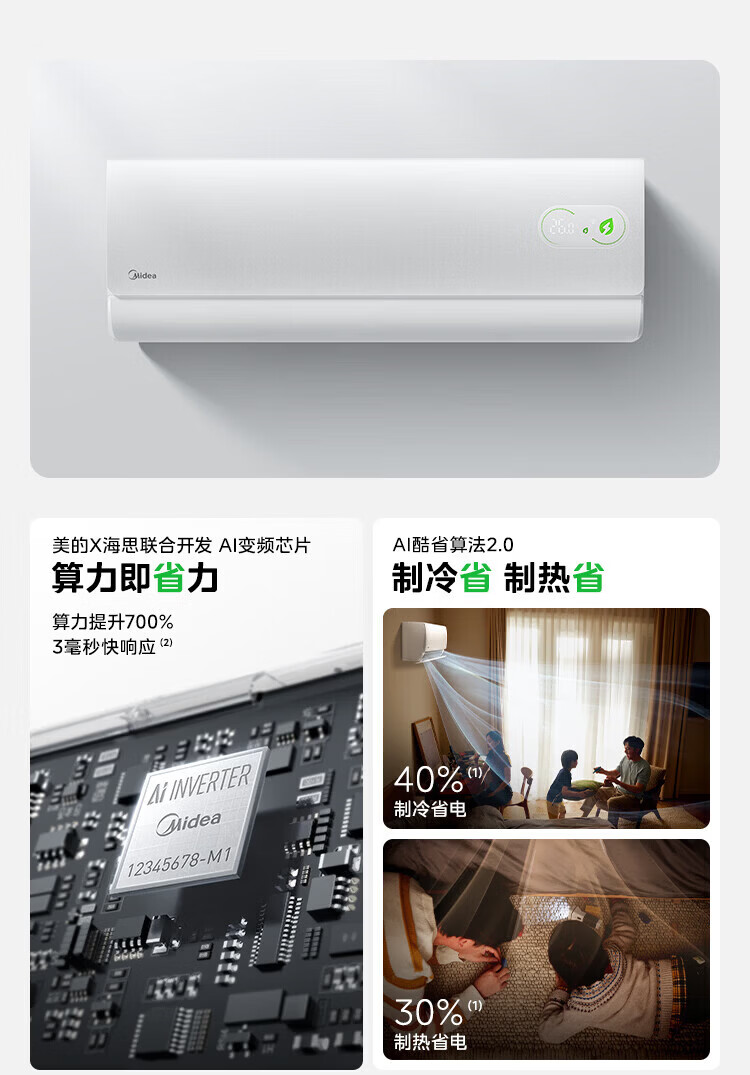 美的空调挂机 新品酷省电二代 大1.5匹新一级能效变频节能 除湿壁挂式 一键防直吹 双排纯铜管补贴 酷省电二代 大1匹 【纯铜管-节能40%】一级能效