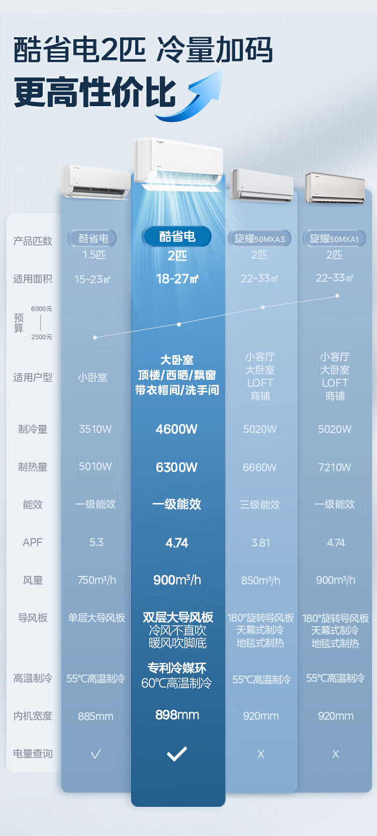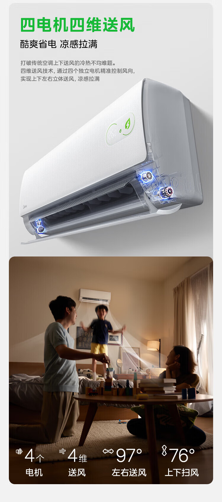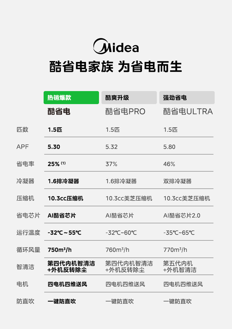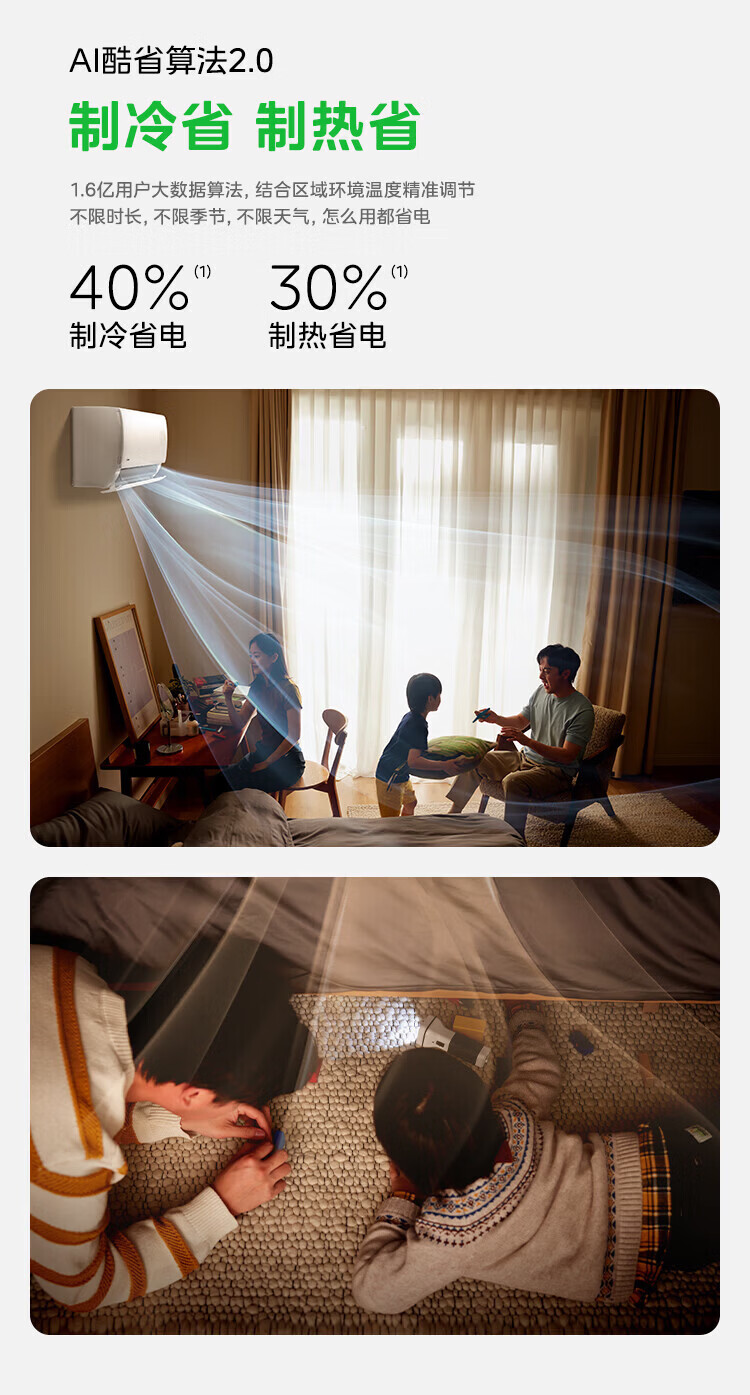 美的空调挂机 新品酷省电二代 大1.5匹新一级能效变频节能 除湿壁挂式 一键防直吹 双排纯铜管补贴 酷省电二代 大1匹 【纯铜管-节能40%】一级能效